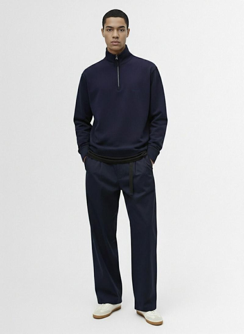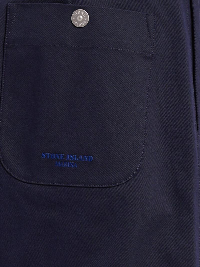 弹力华达呢裤子 - 海军蓝 - 男士 - Stone Island - 正面隐藏式拉链开合.