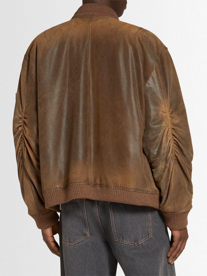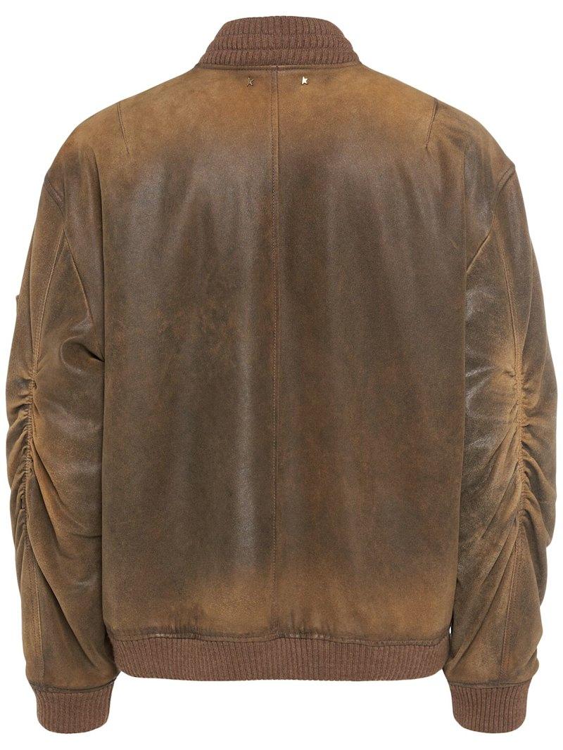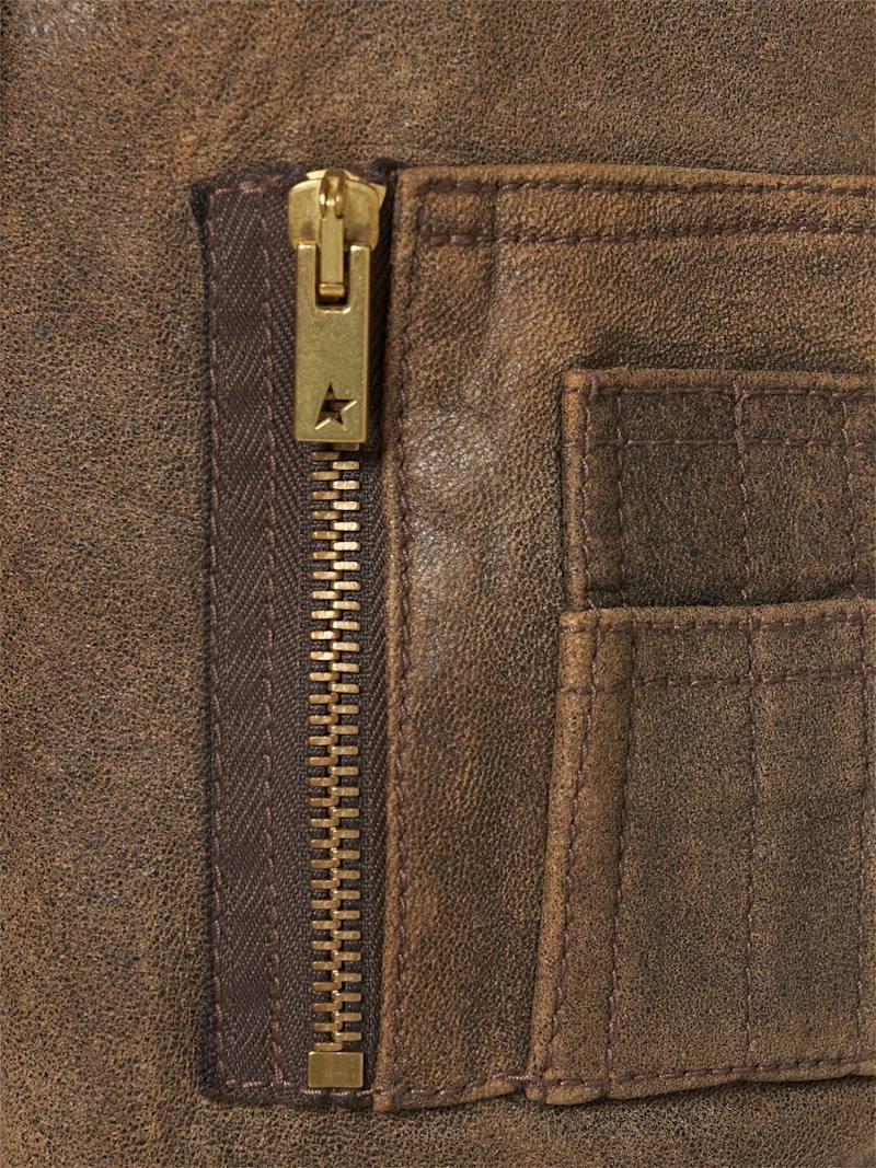 Journey拉链开合填充皮革夹克 - French Roast - 男士 - Golden Goose - 正面拉链开合.