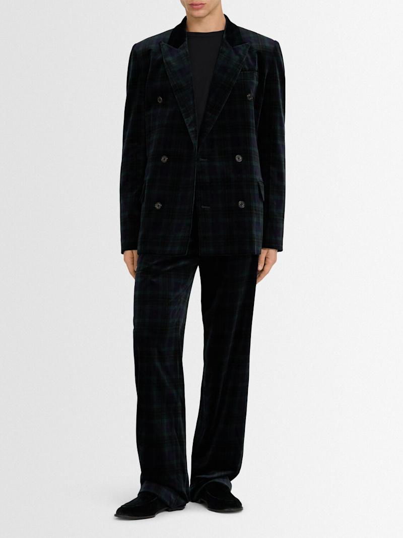 棉质天鹅绒直筒裤 - 海军蓝 - 男士 - Eenk - 隐藏式正面粘扣开合.