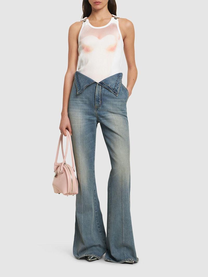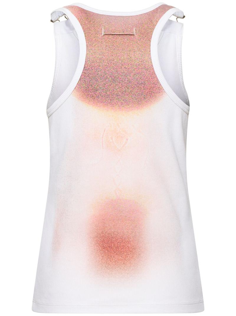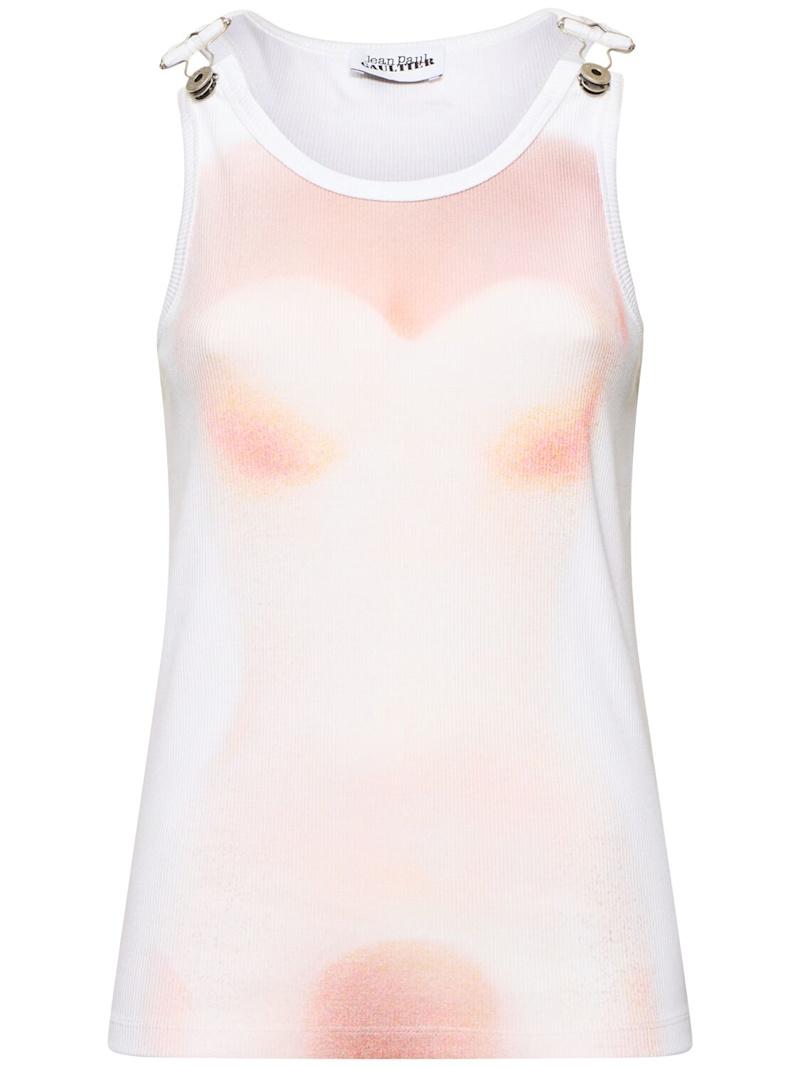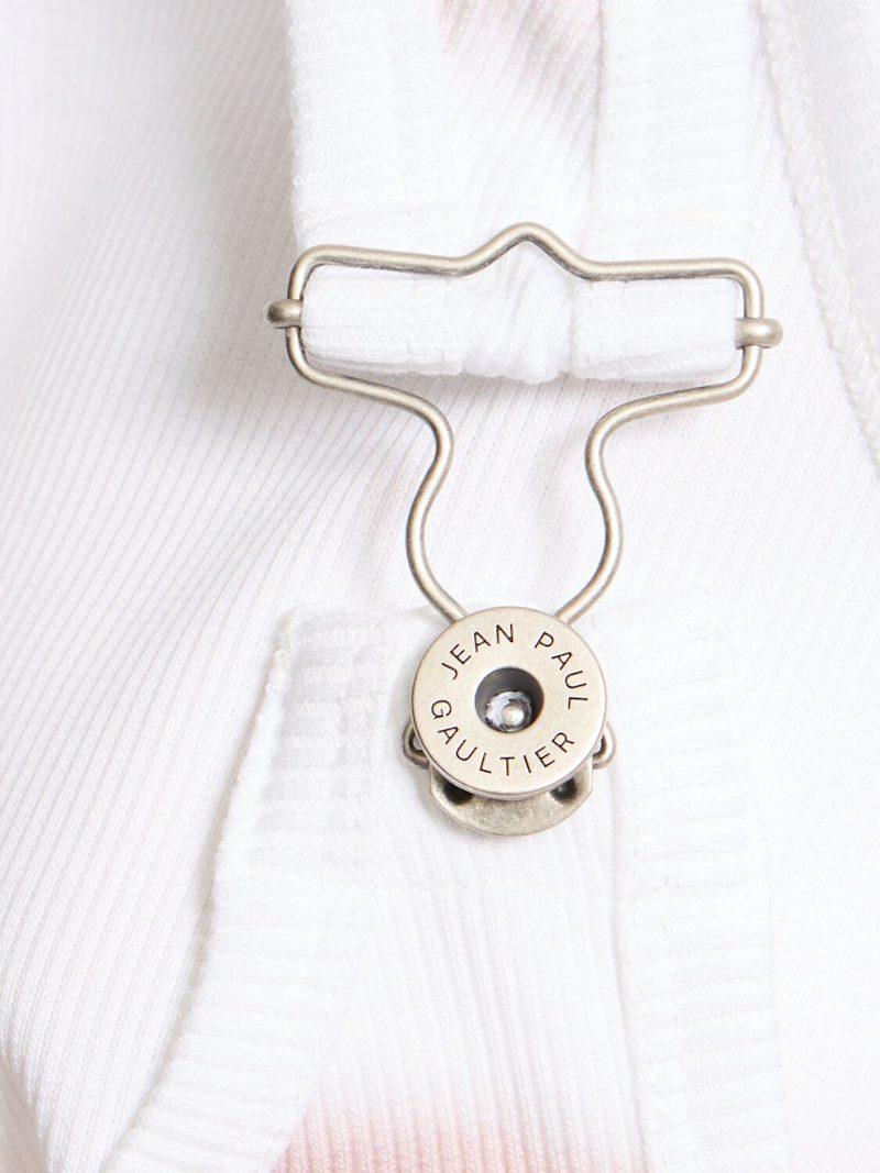 Le Classique印花罗纹棉质背心 - 粉色/白色 - 女士 - Jean Paul Gaultier - 肩膀金属夹子配有纽扣开合.