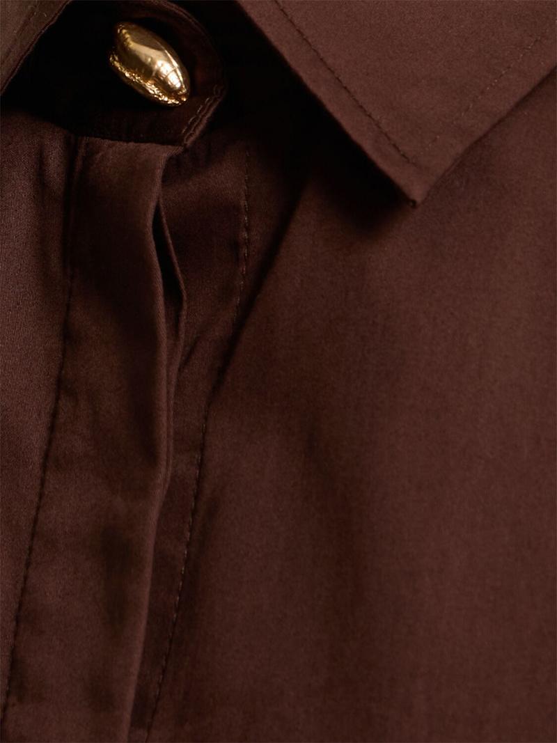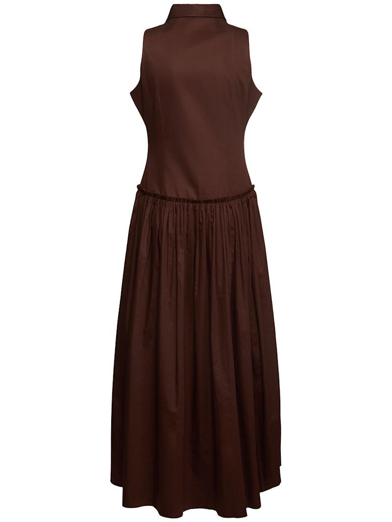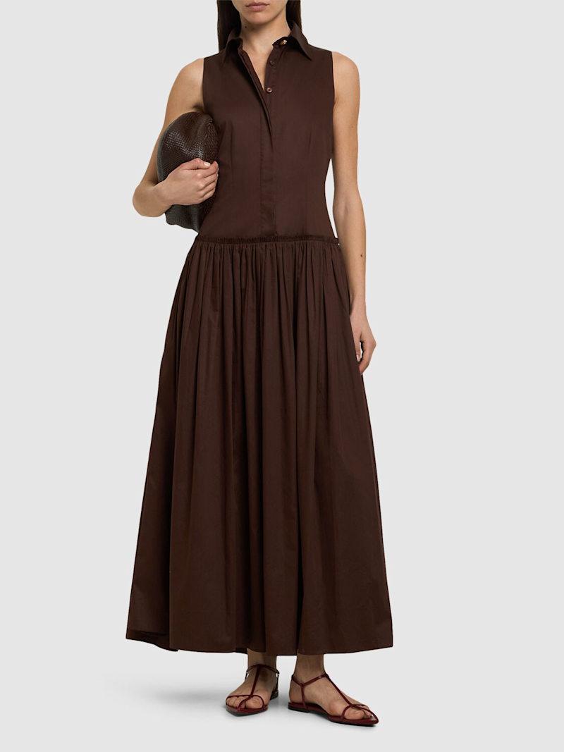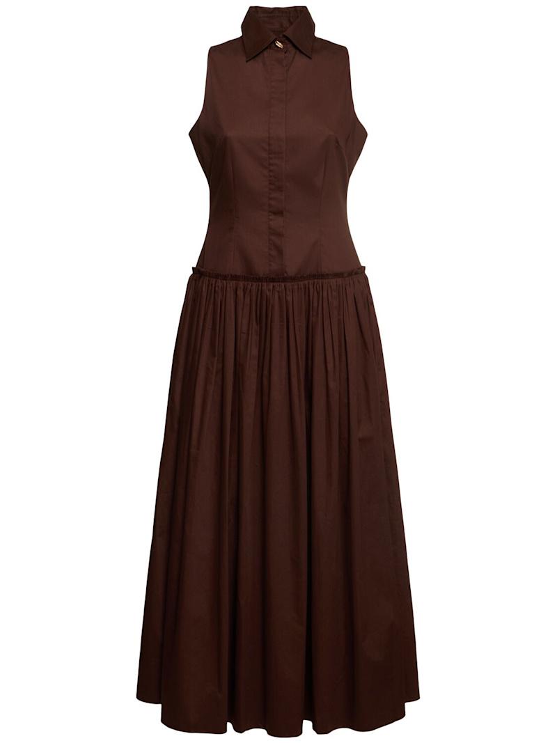 Sama棉质府绸长款衬衫裙 - 棕色 - 女士 - Abadia - 正面隐藏式纽扣开合.