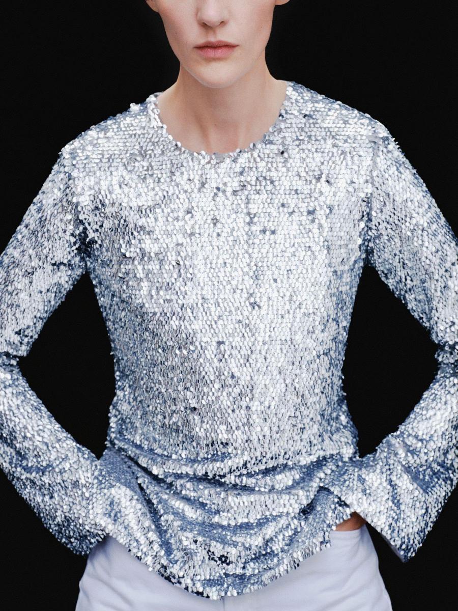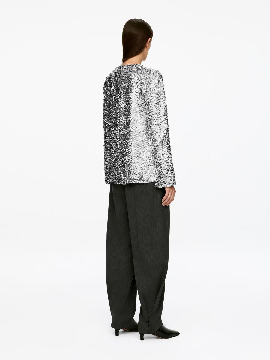 Long-sleeved top embellished with all-over sequins and structured shoulder pads. Fastens with a zip at the centre back.ARKET/Women's clothes/Women's shirts and blouses/Women's blouses