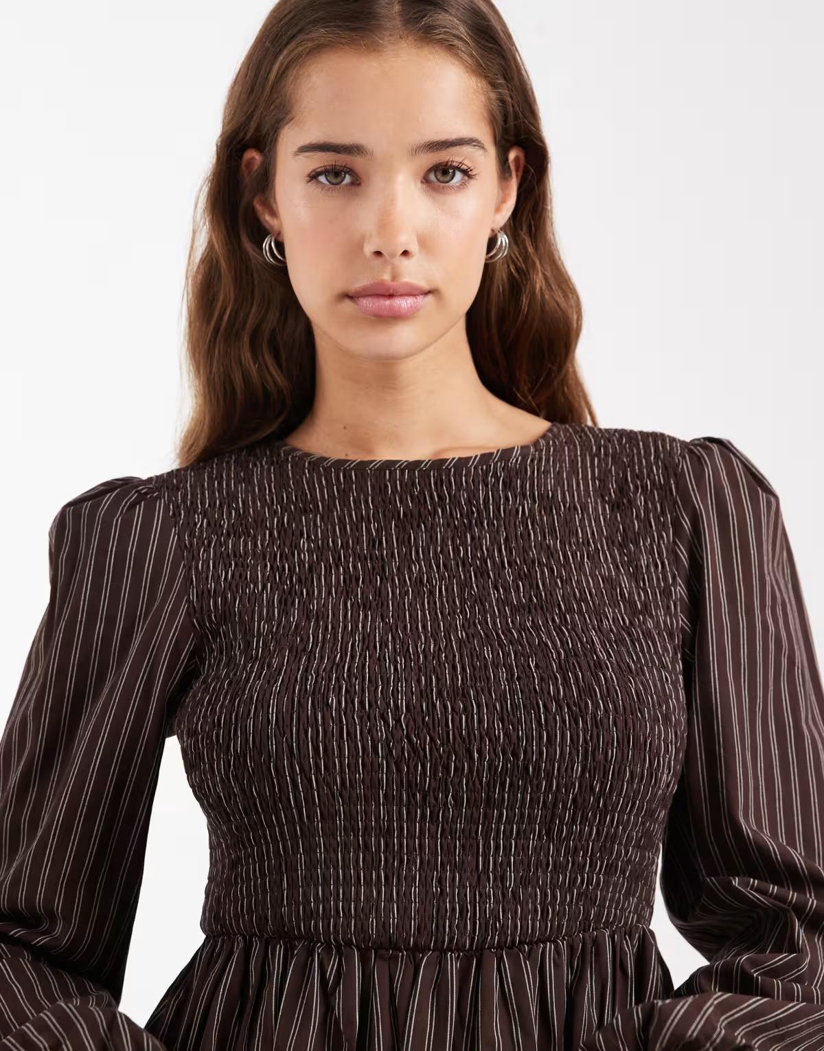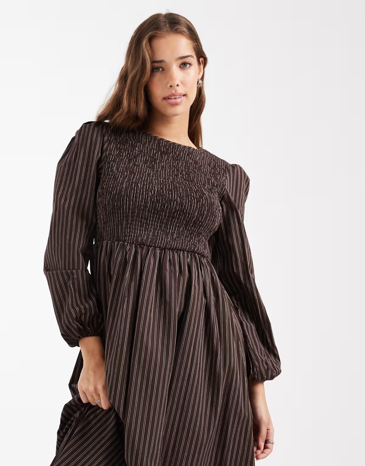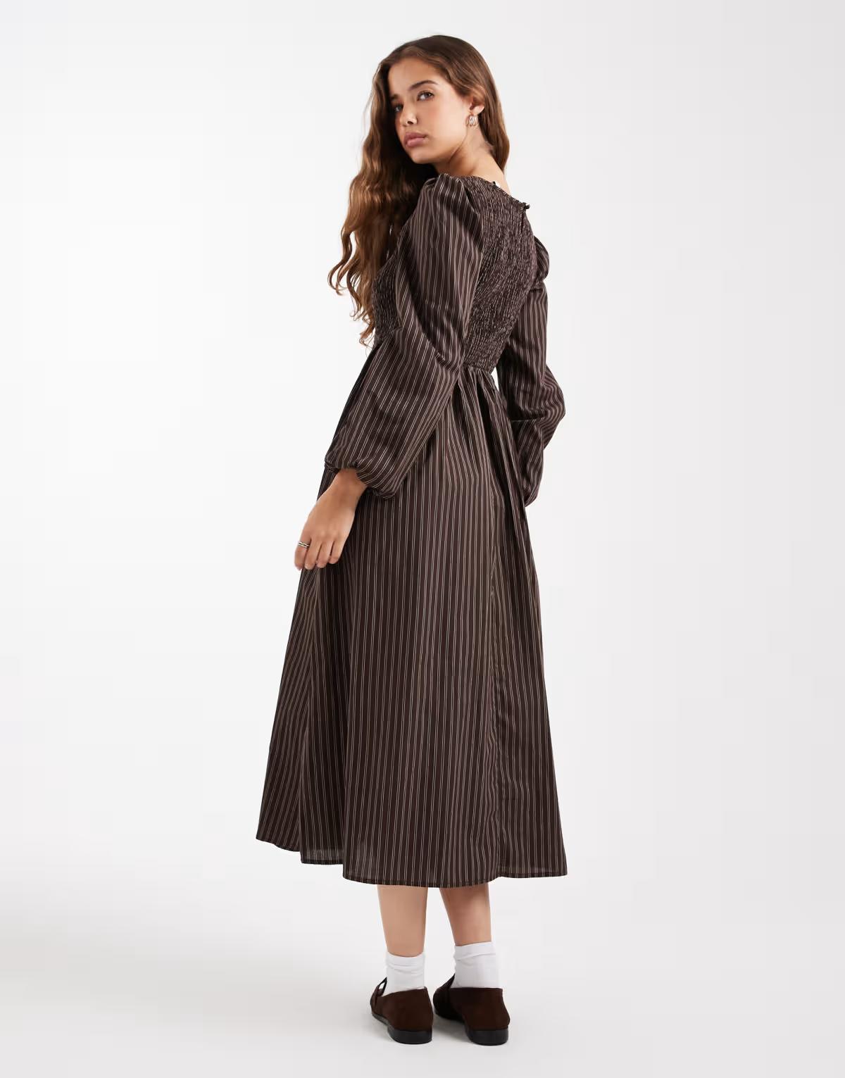 Daisy Street volume sleeve midaxi dress in brown stripe