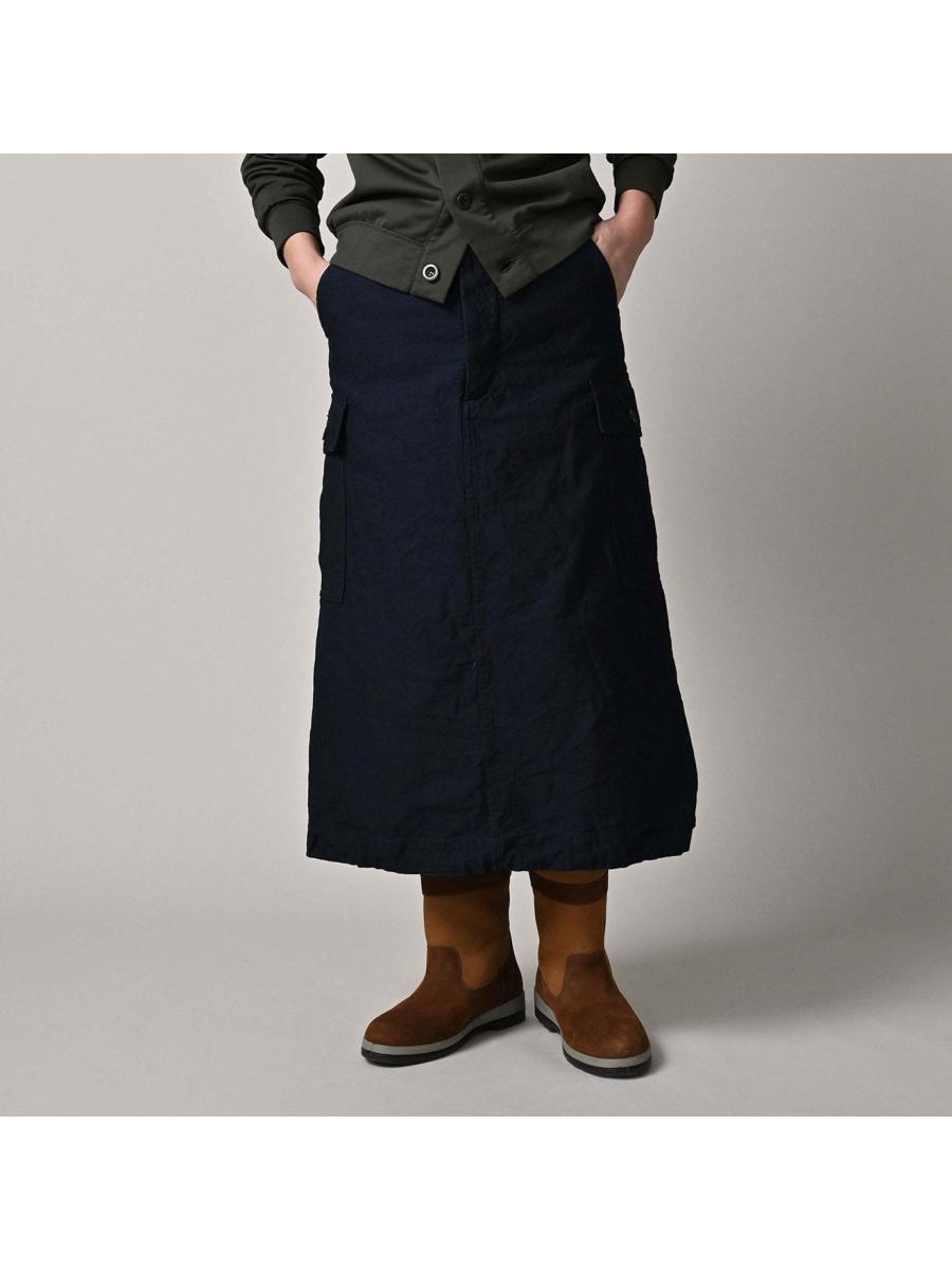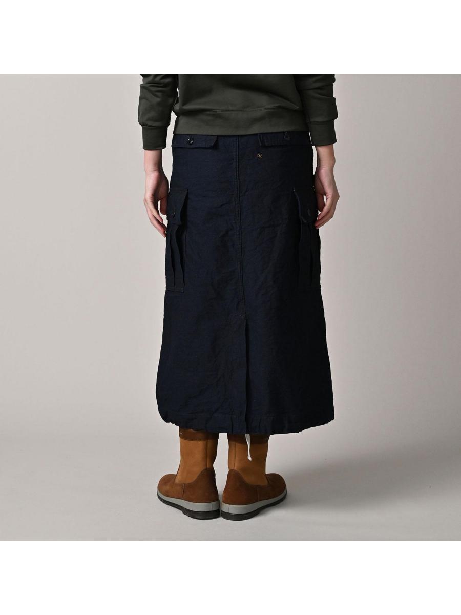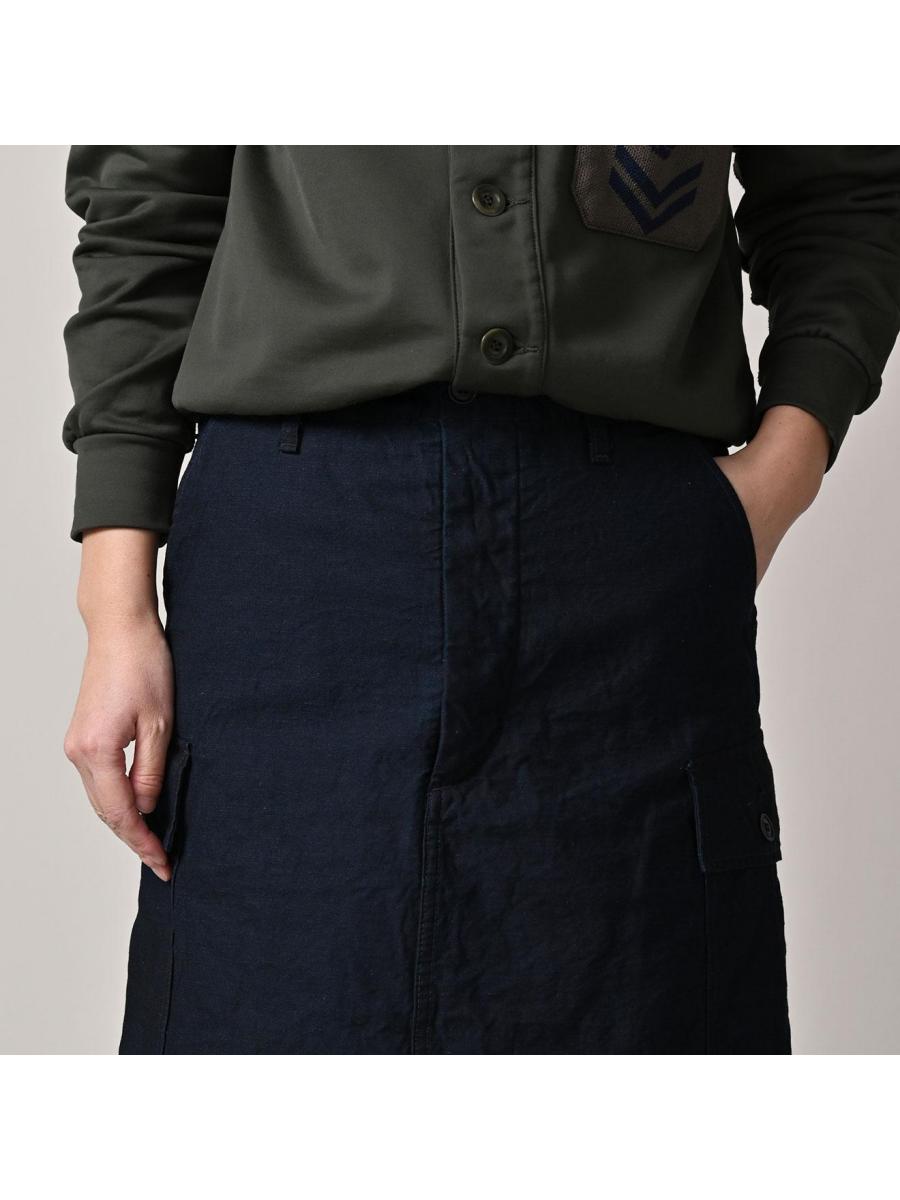 バックサテンのカーゴスカート(インディゴ)