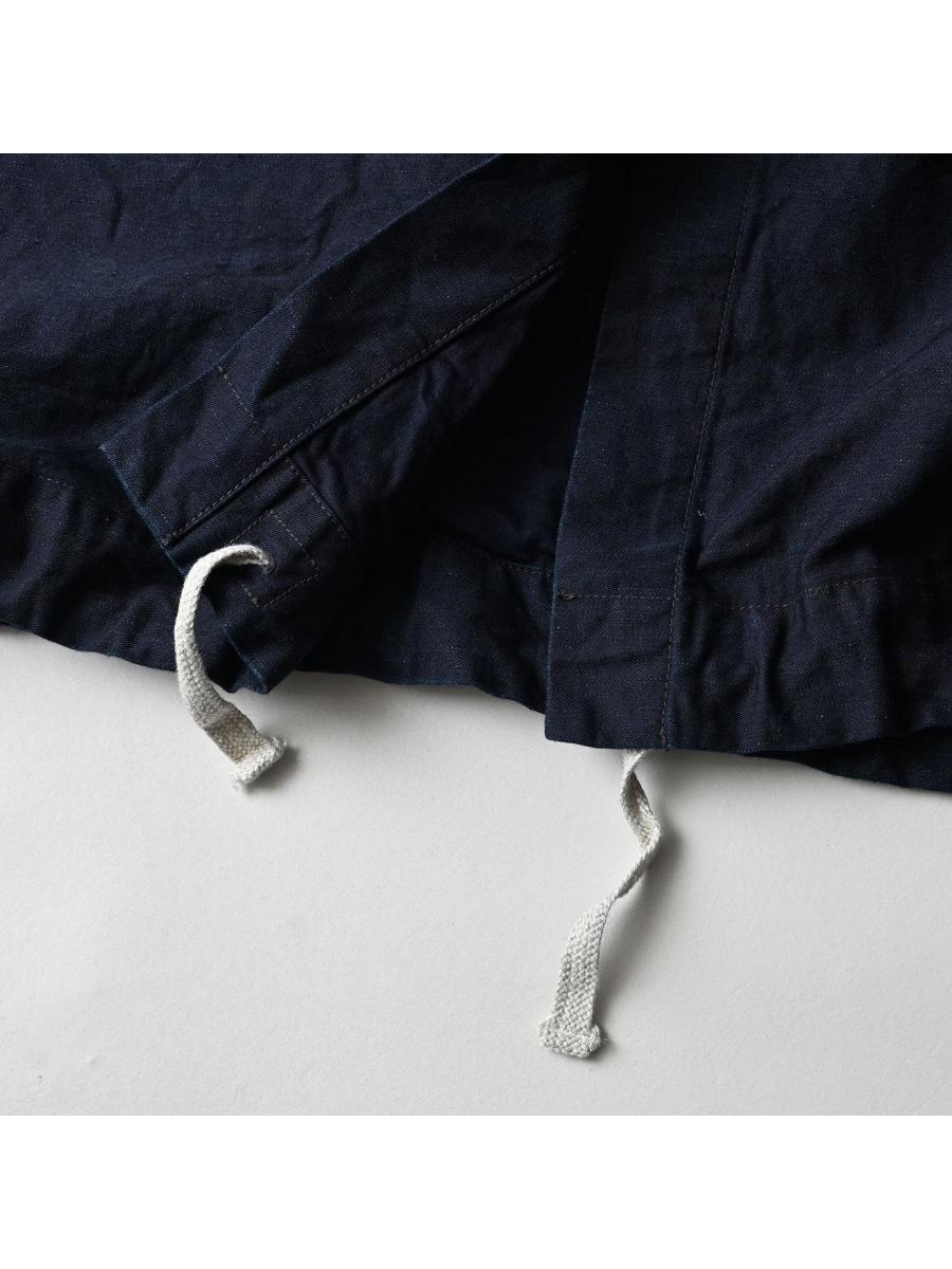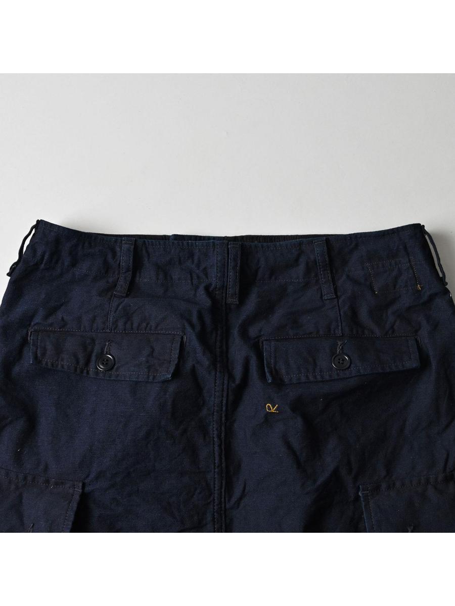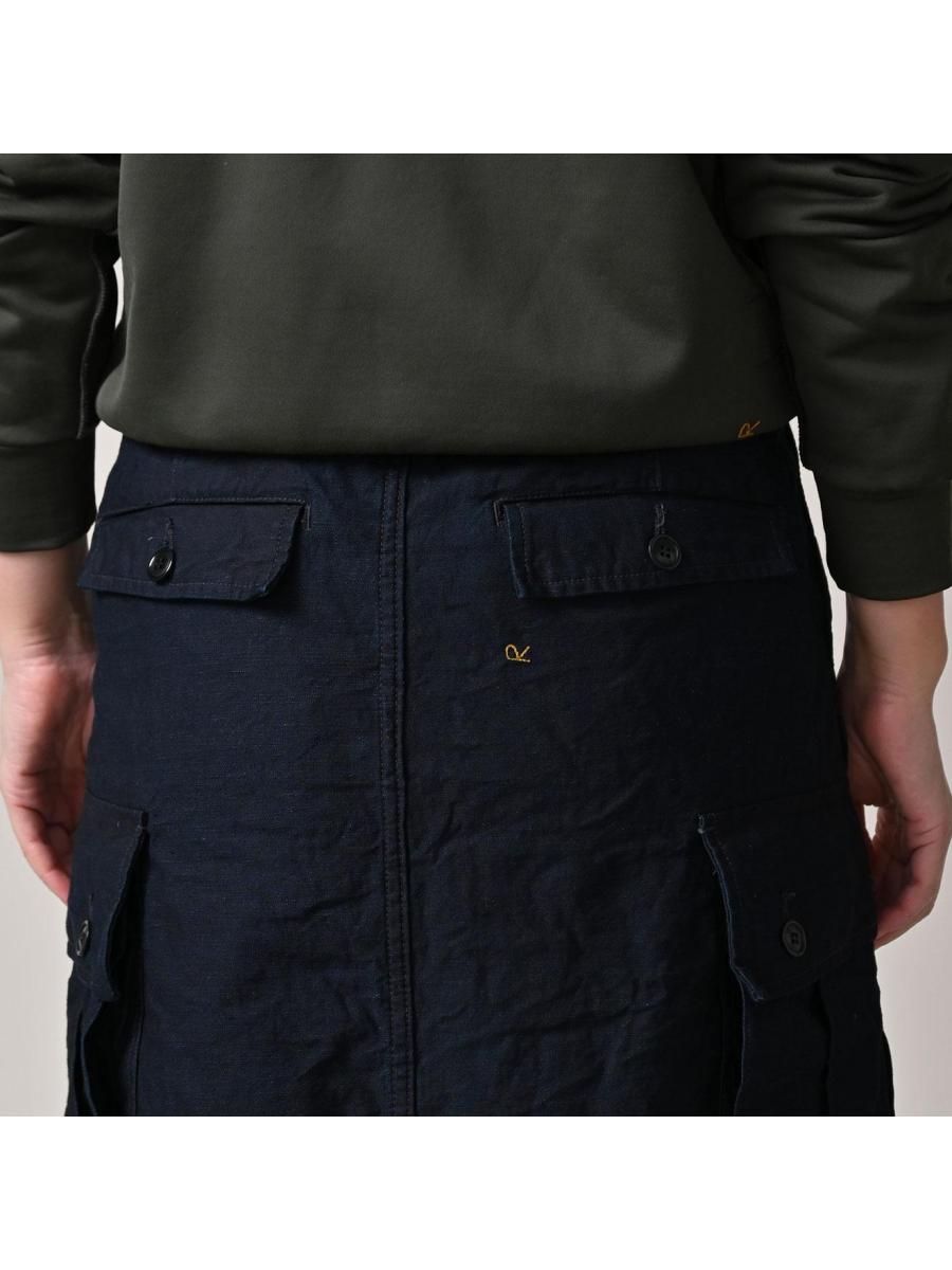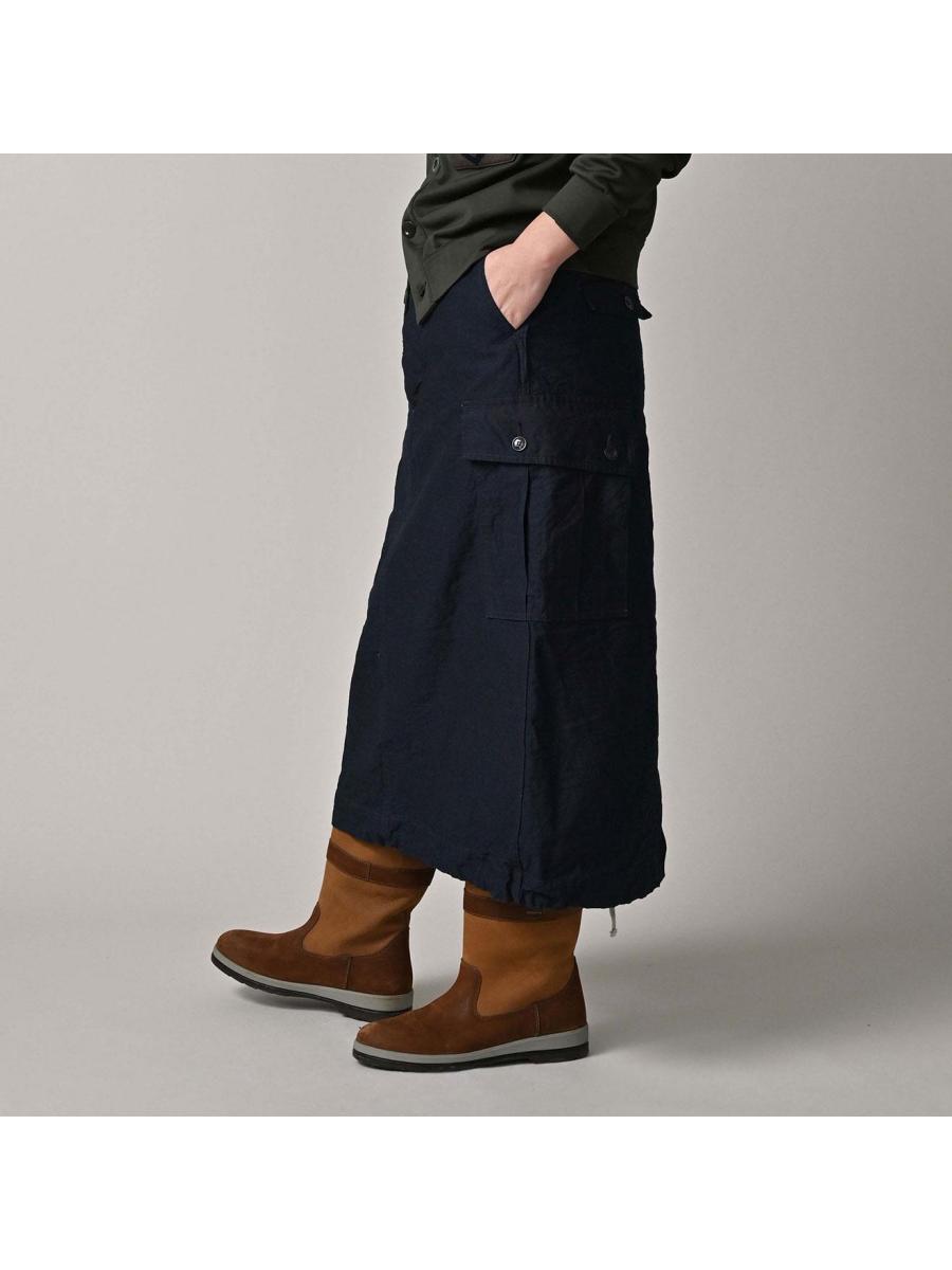 バックサテンのカーゴスカート(インディゴ)