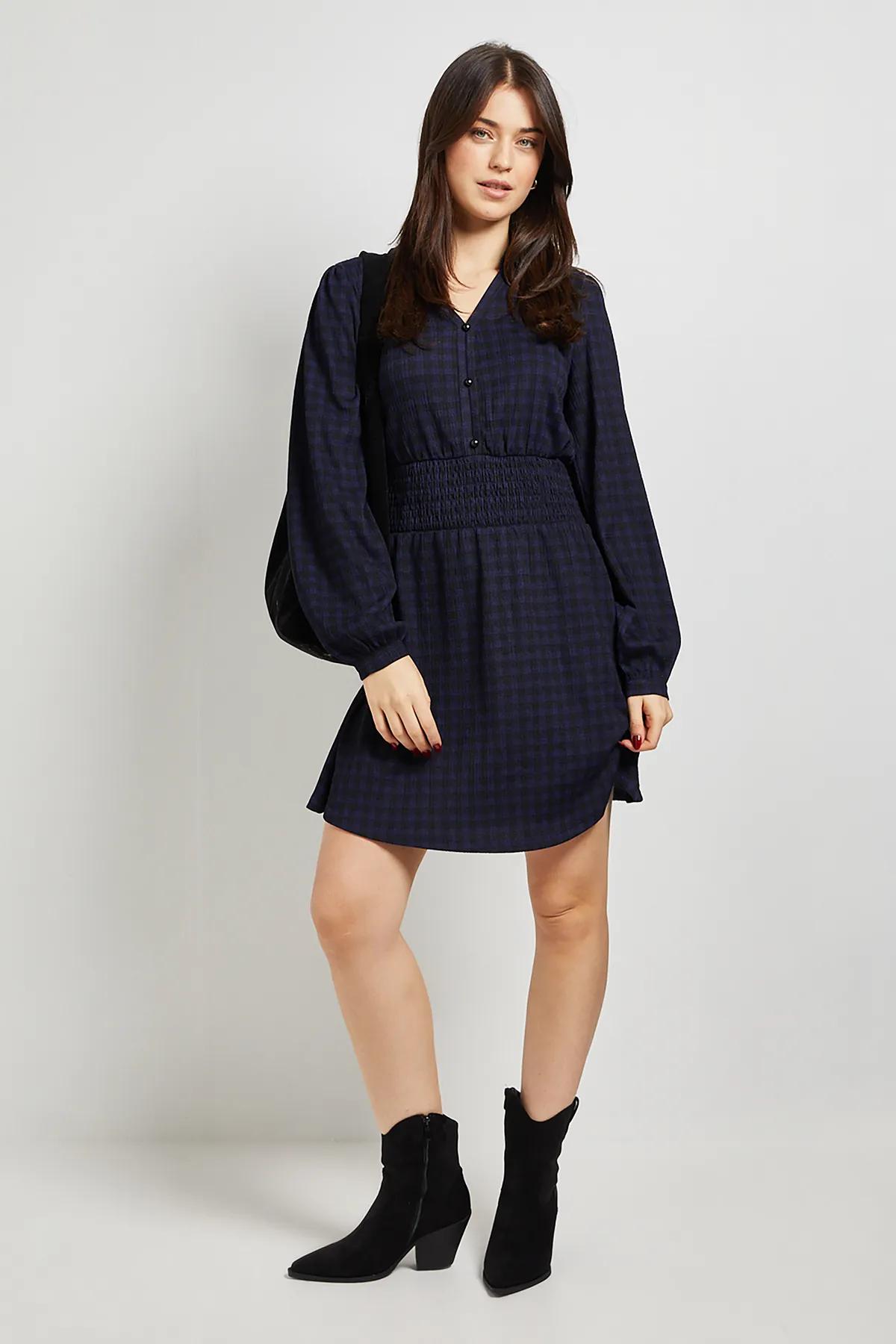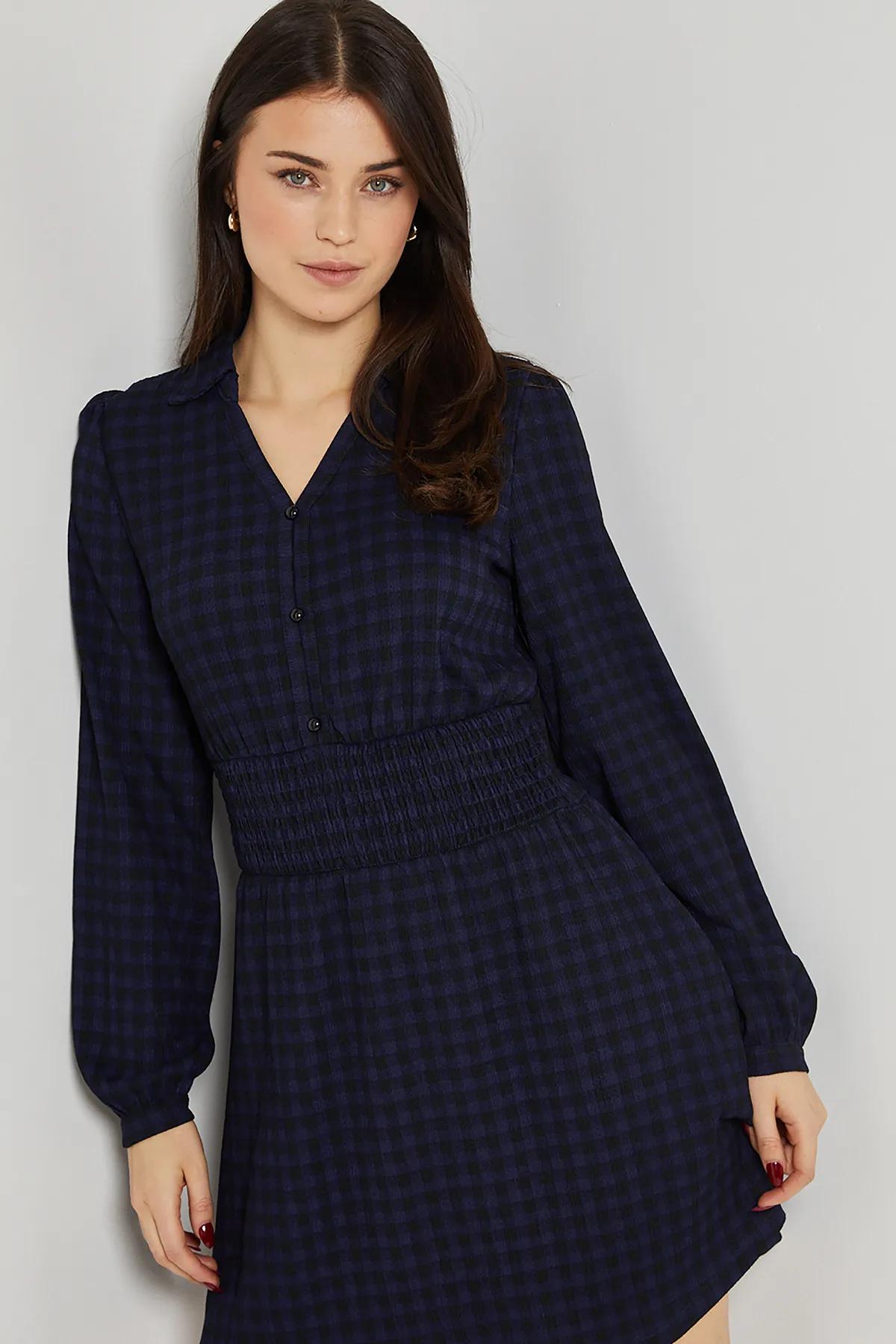 Dresses | Gingham Shirred Waist Collar Detail Jersey Mini Dress | Dorothy Perkins