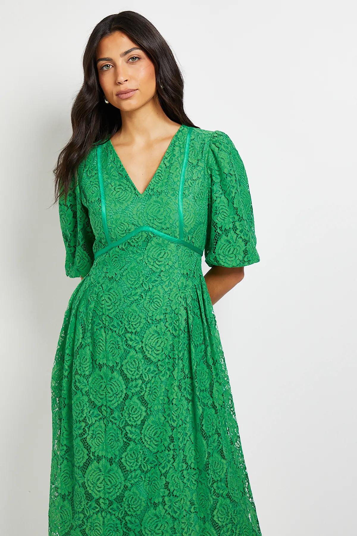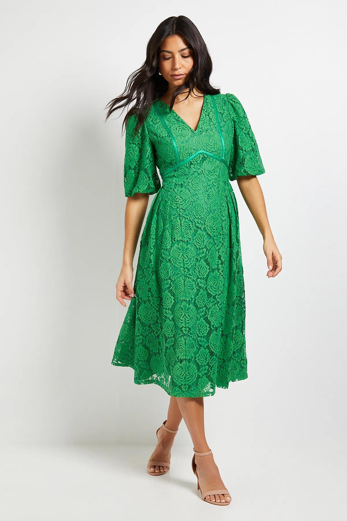 Dresses | Lace Puff Sleeve Midi Dress | Wallis