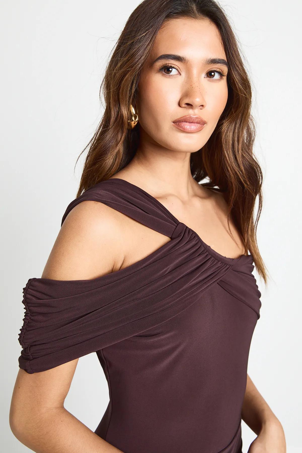Discover Twist Bardot Ruched Maxi Dress available to buy online at boohoo.com. Available with quick delivery and easy return options. Shop now!