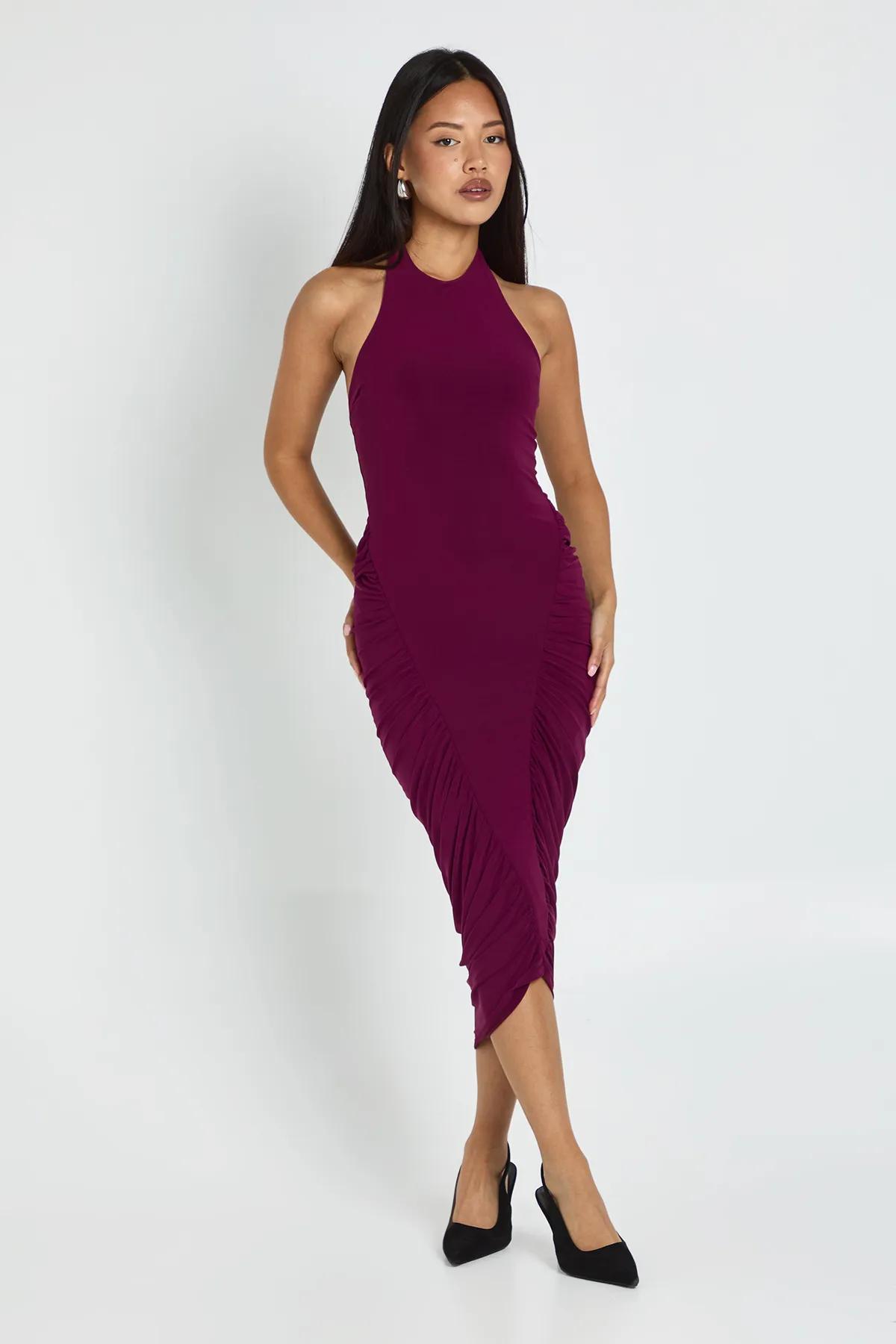 Dresses | Petite Ruched Panel Halterneck Midaxi Dress | boohoo