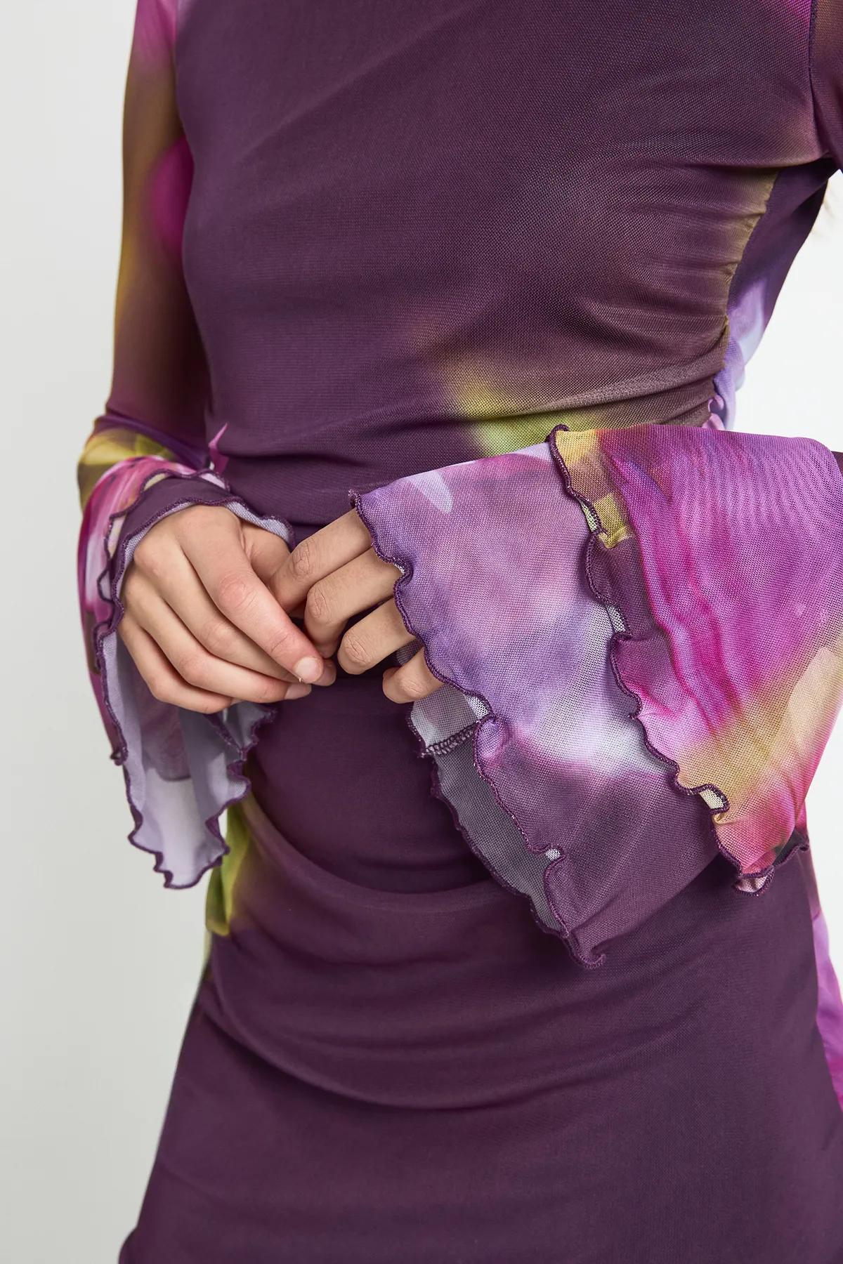 Dresses | Slash Neck Mixed Floral Flare Sleeve Mini Dress | boohoo
