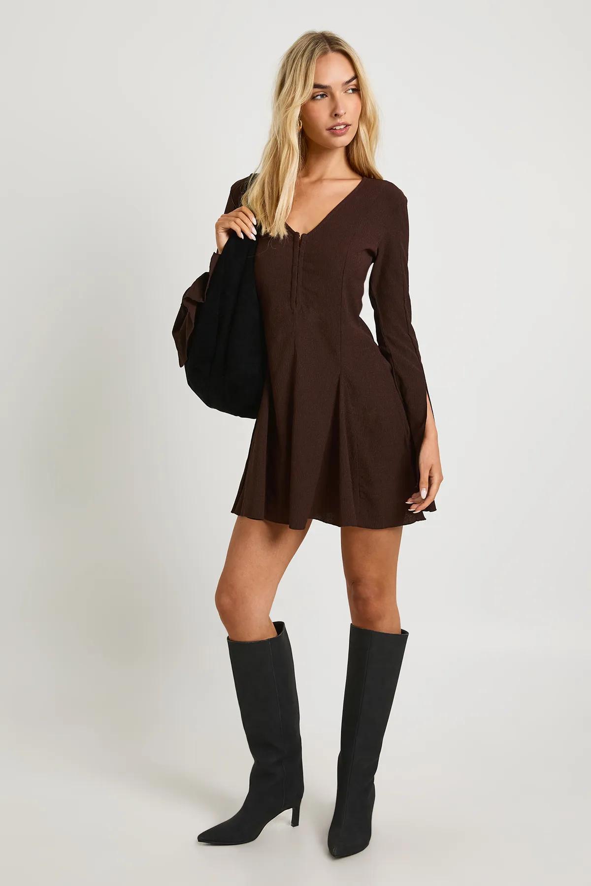 Discover Textured Flared Cuff & Hem Shift Dress available to buy online at boohoo.com. Available with quick delivery and easy return options. Shop now!