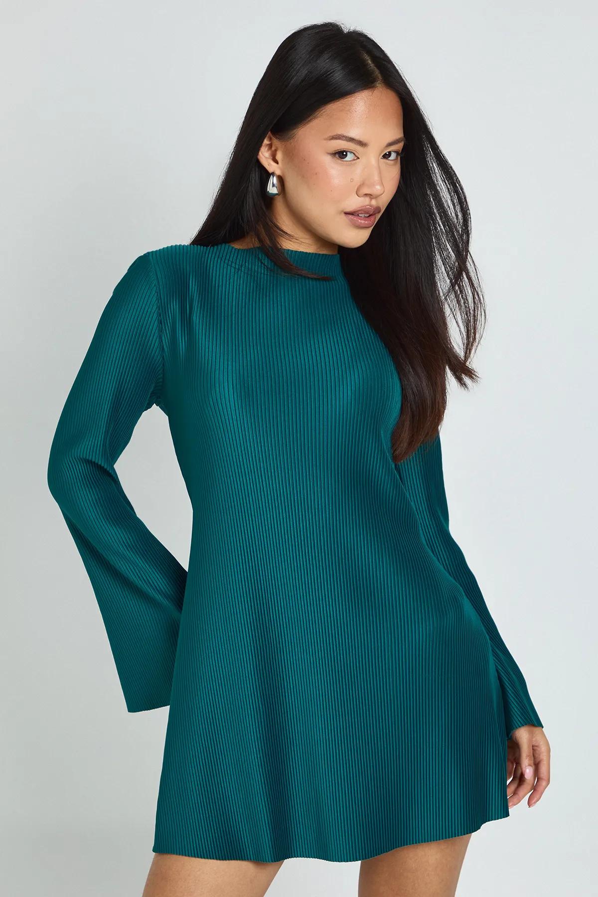 Discover Petite Plisse Flared Sleeve Mini Dress available to buy online at boohoo.com. Available with quick delivery and easy return options. Shop now!