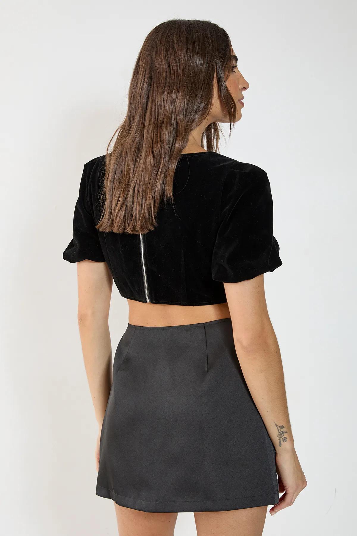 Dresses | Velvet Satin Mix Puff Sleeve Cut Out Mini Dress | NastyGal