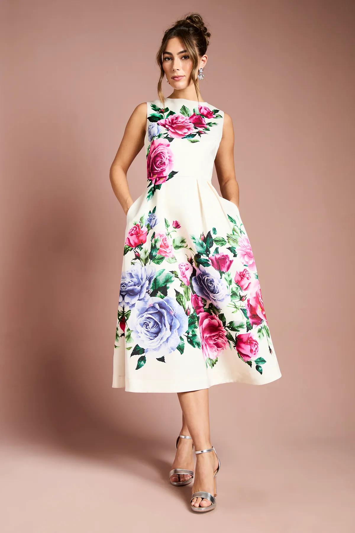 Dresses | Pocket Structured Satin Placement Print Midi Dress | Coast