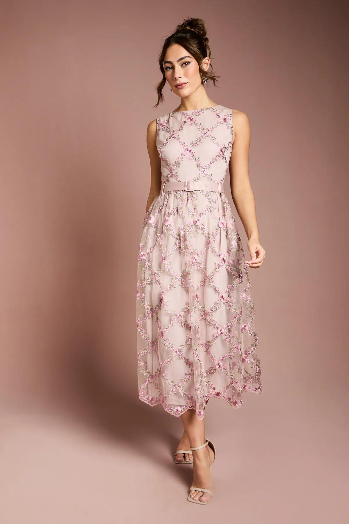 Dresses | Metallic Floral Embroidered Mesh Midi Dress | Coast
