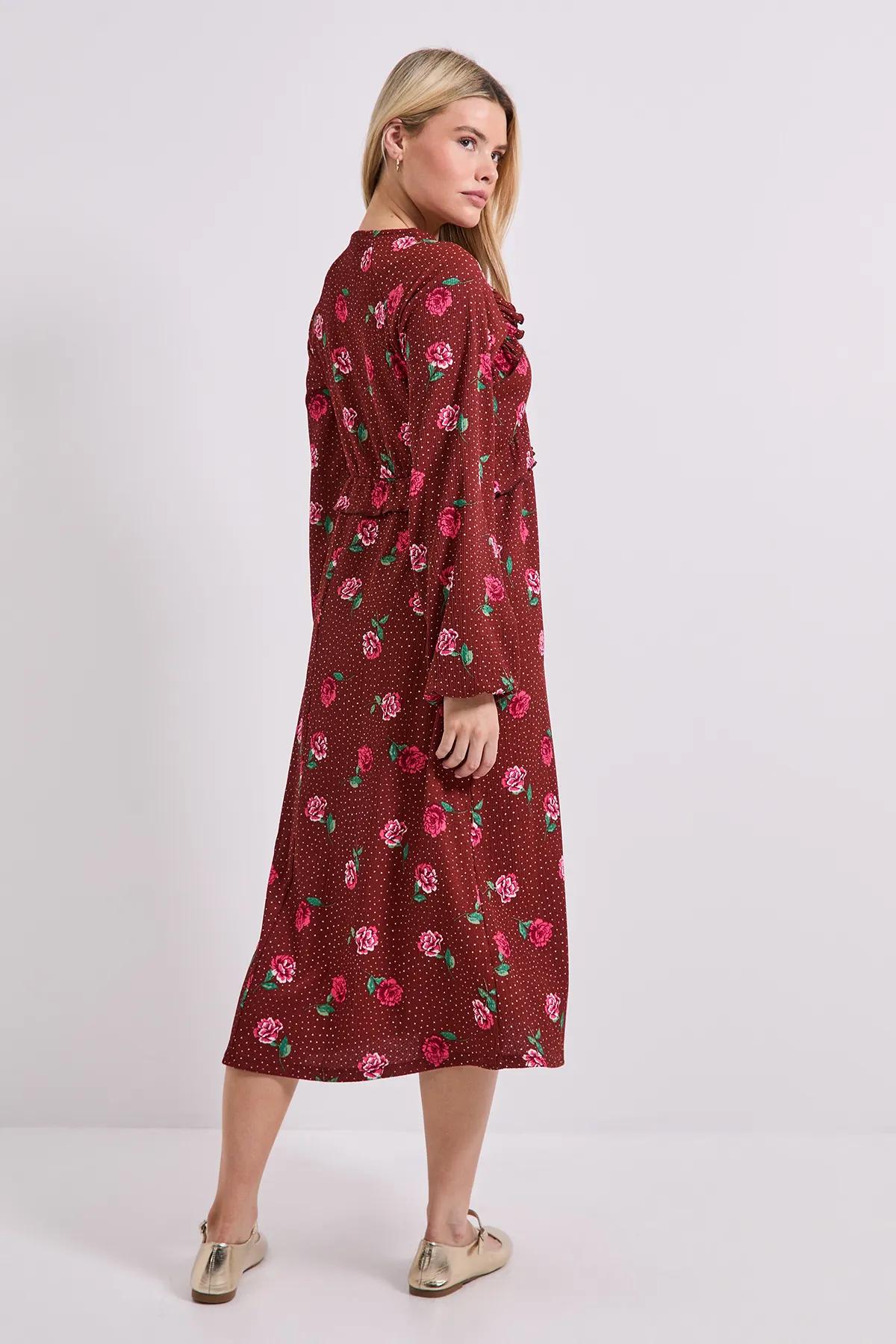 Discover Floral Empire Seam Frill Detail Jersey Midi Dress available to buy online at boohoo.com. Available with quick delivery and easy return options. Shop now!