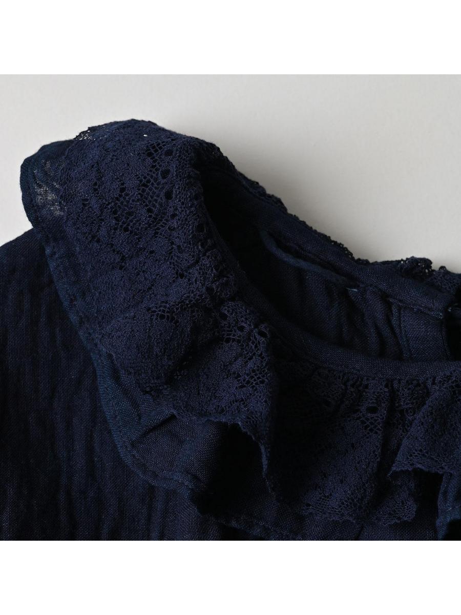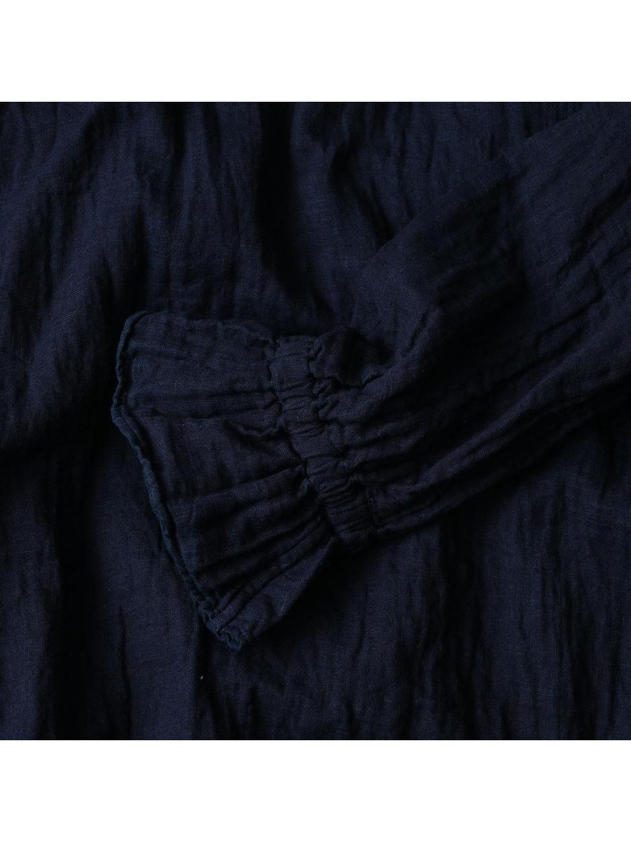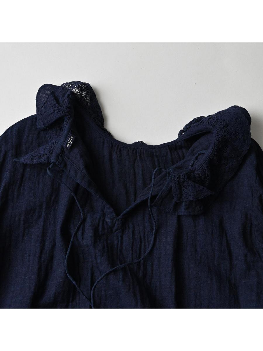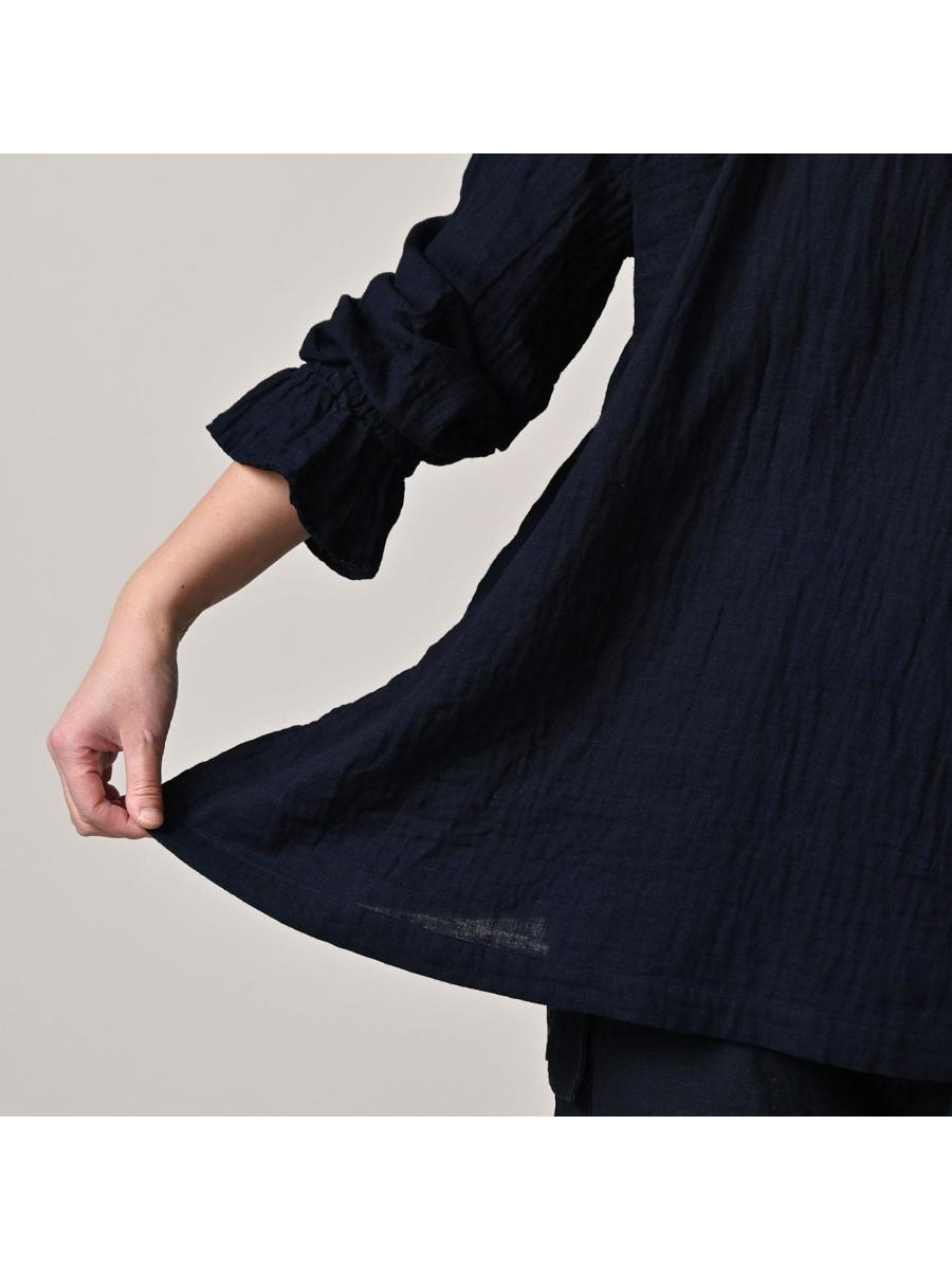 ガーゼ二重織のフリルカラーブラウス(インディゴ)