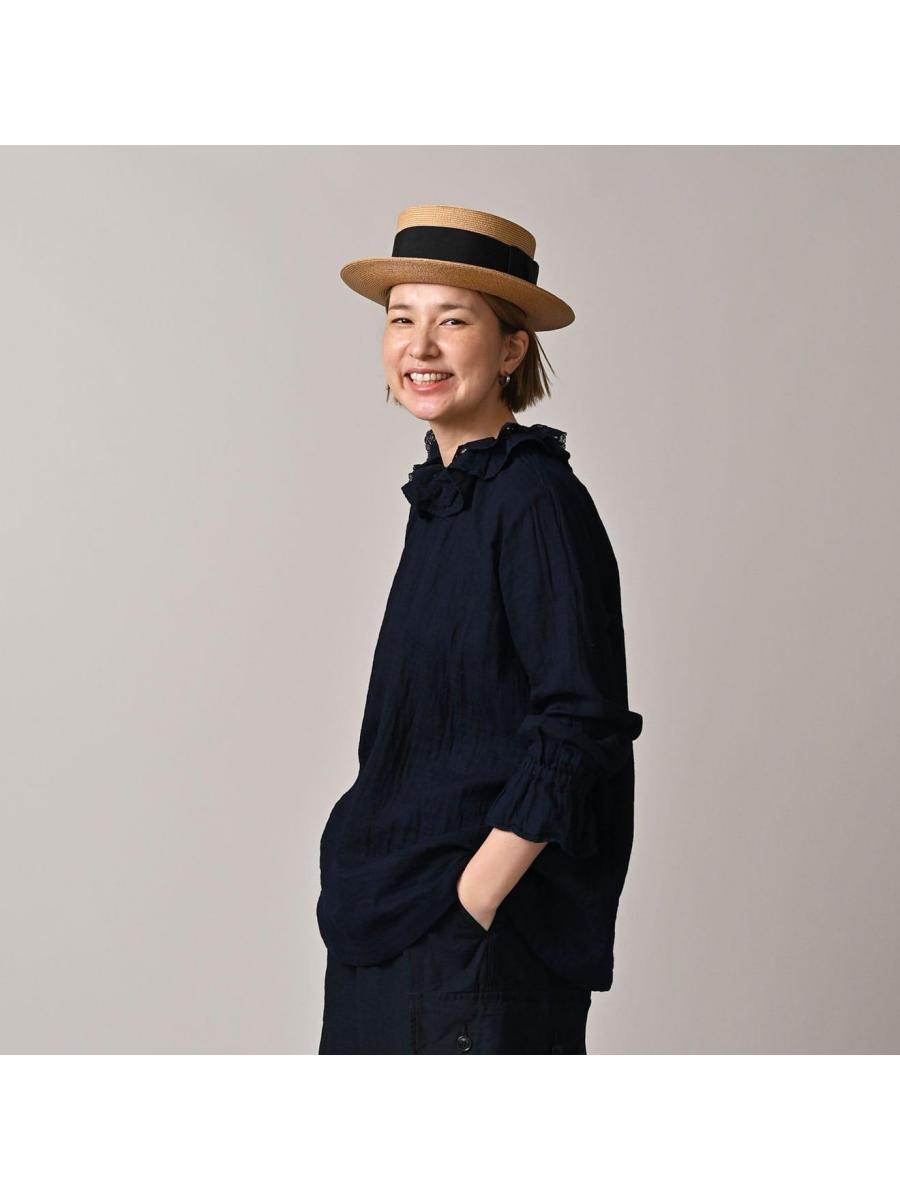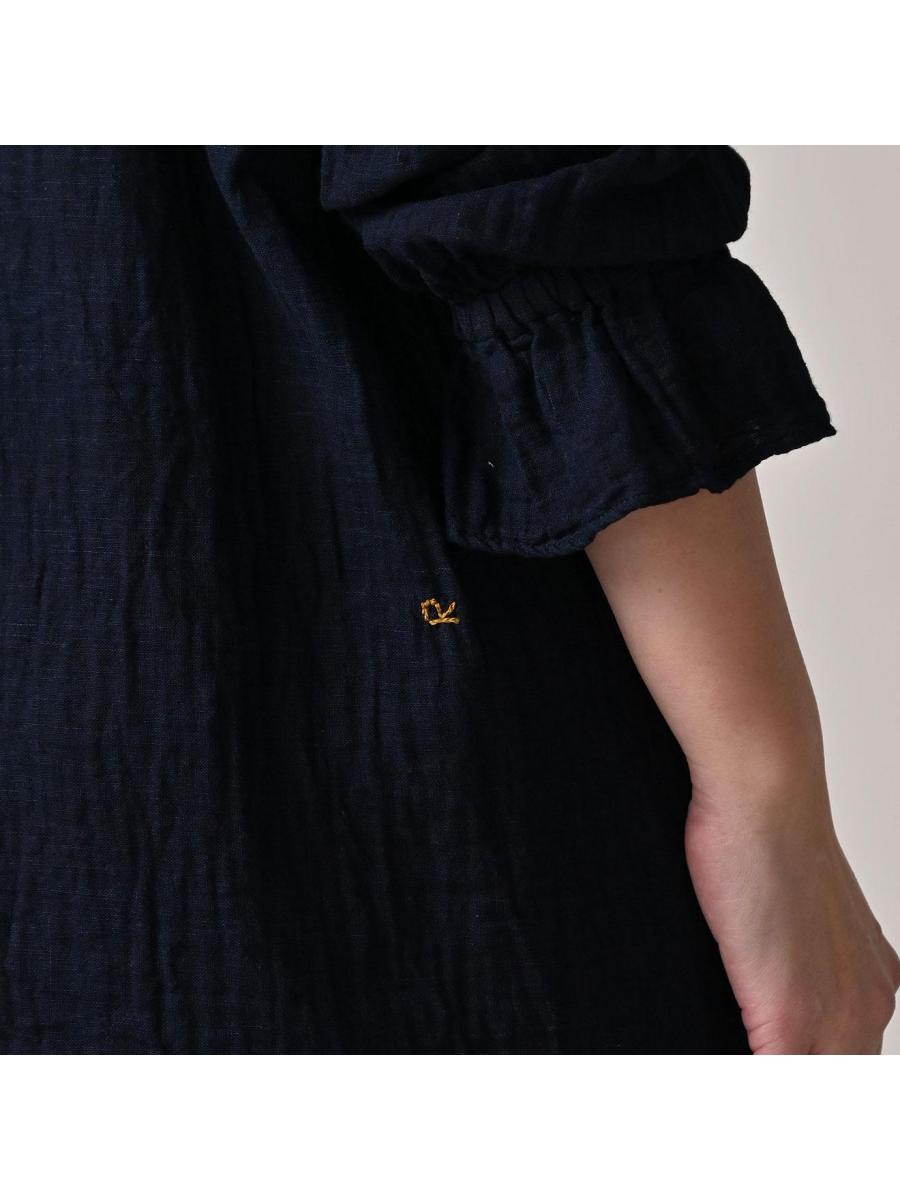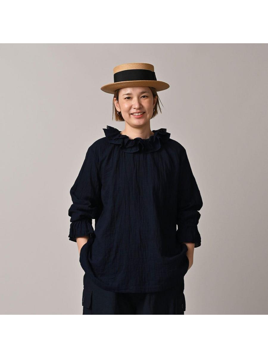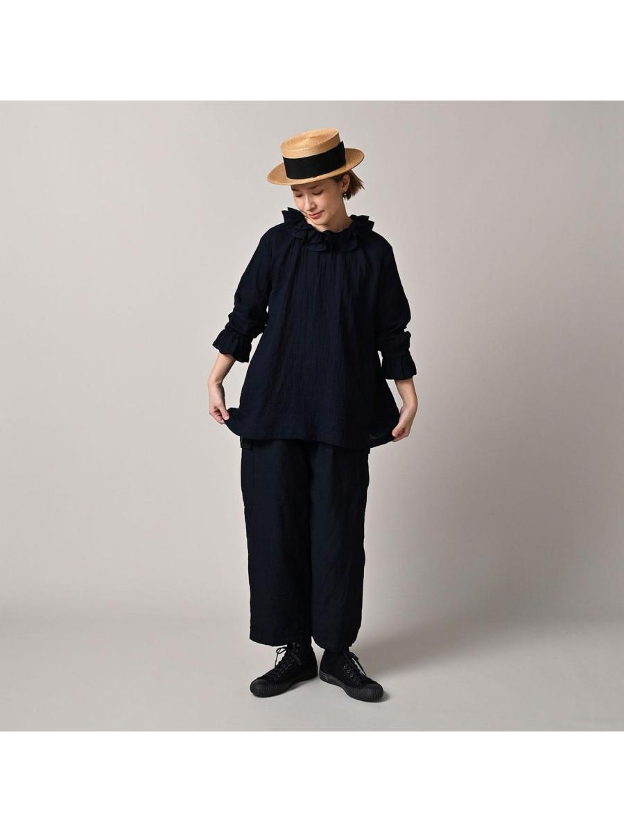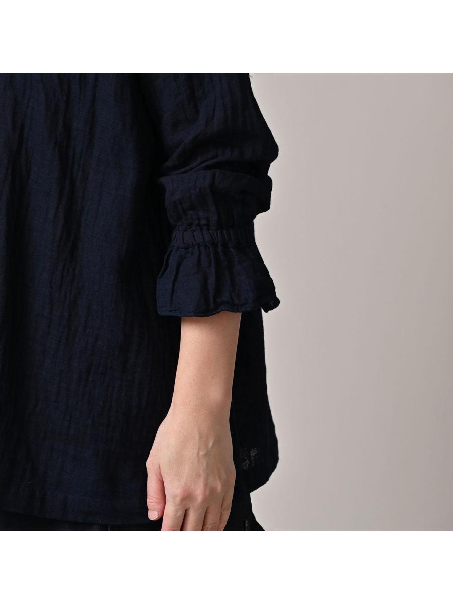 ガーゼ二重織のフリルカラーブラウス(インディゴ)
