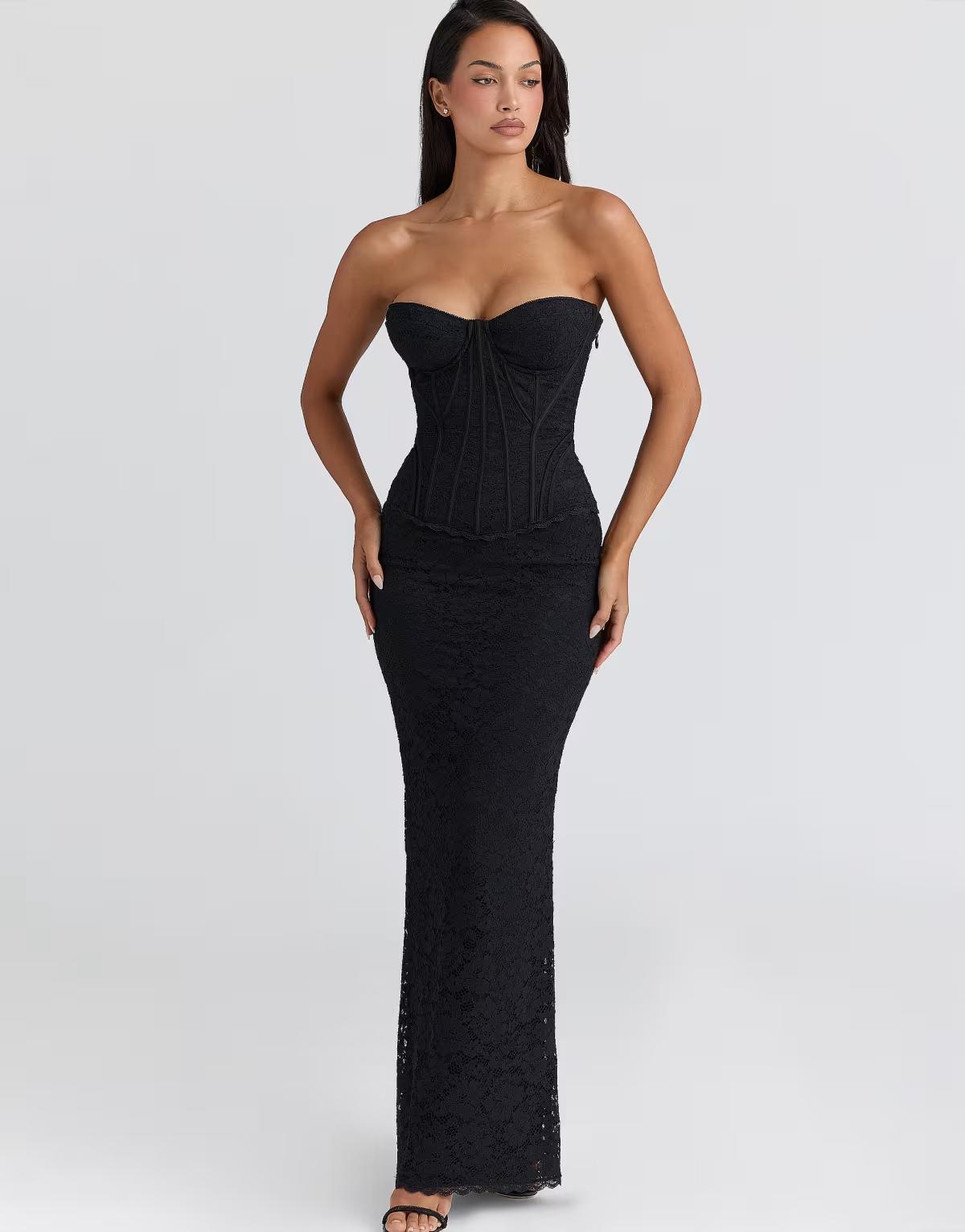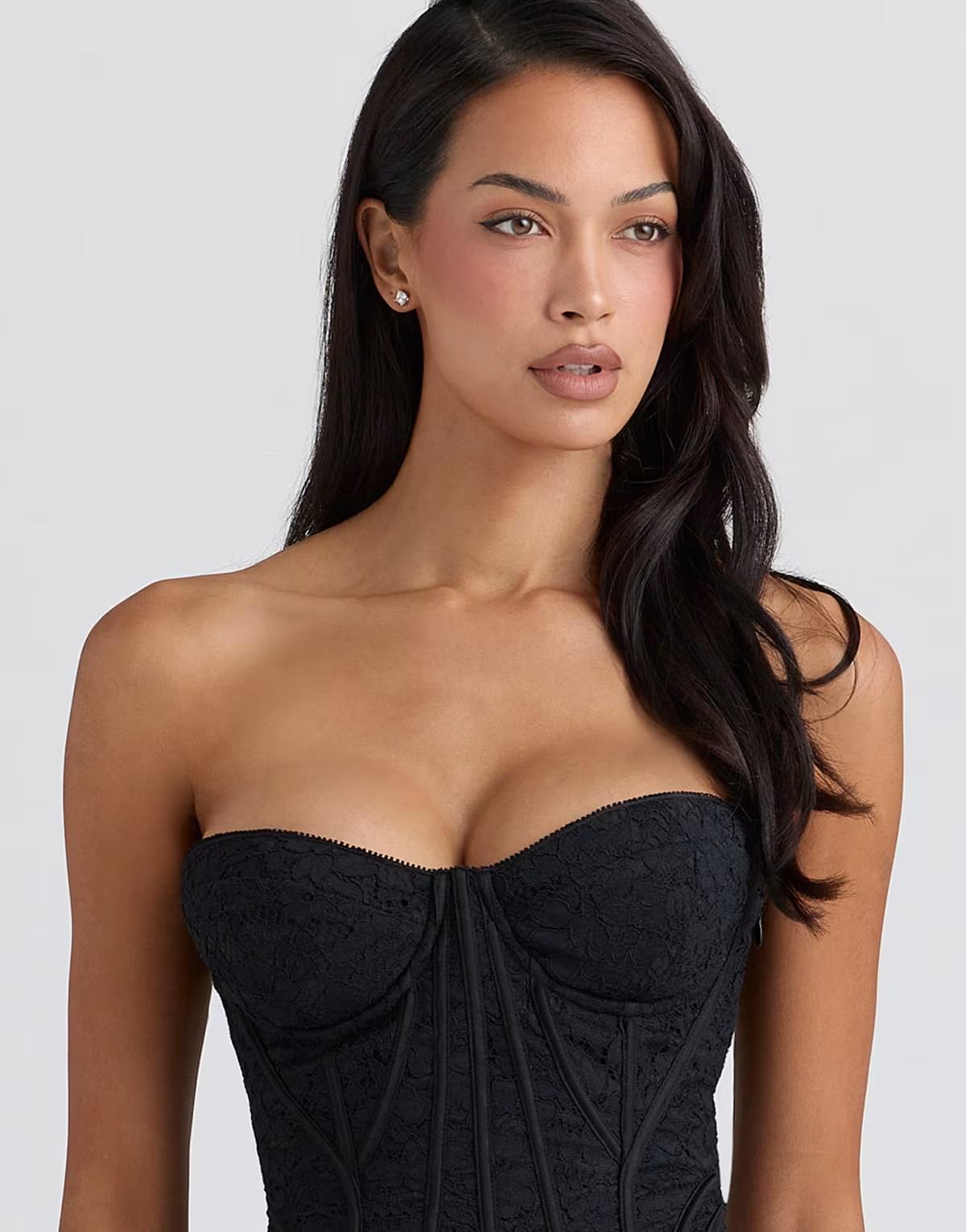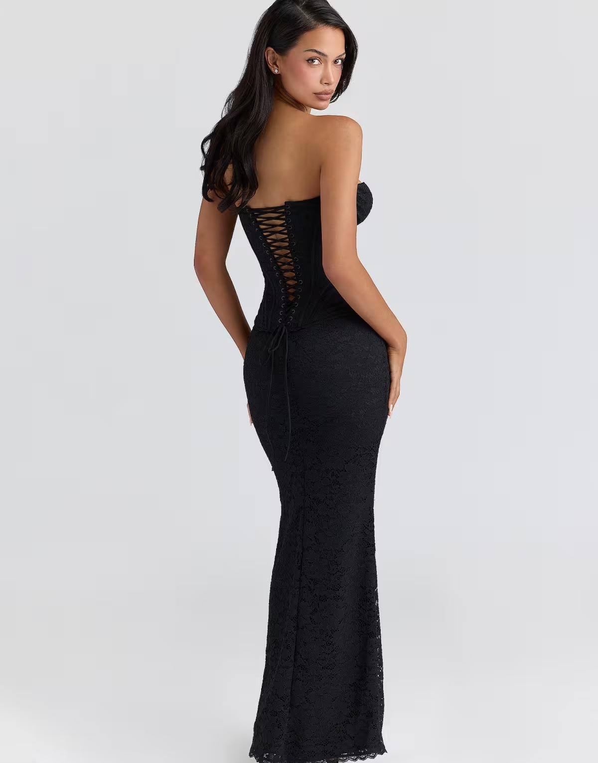 House of CB Solaine lace corset maxi dress in black - BLACK