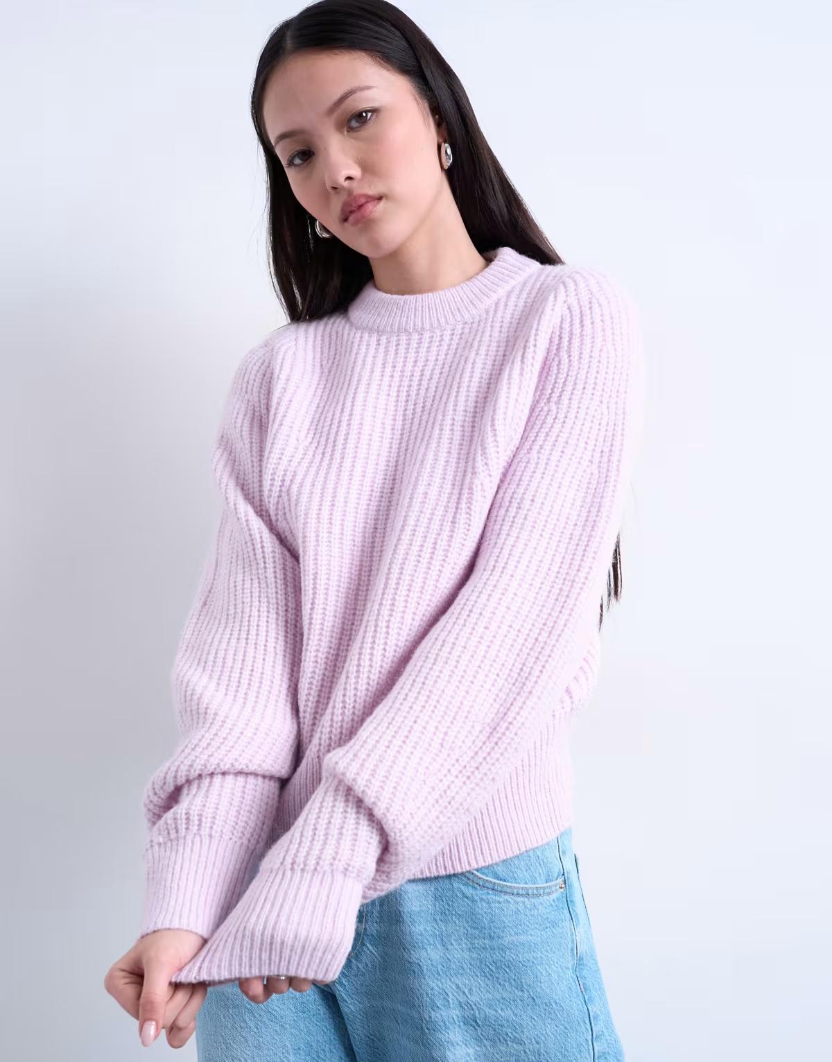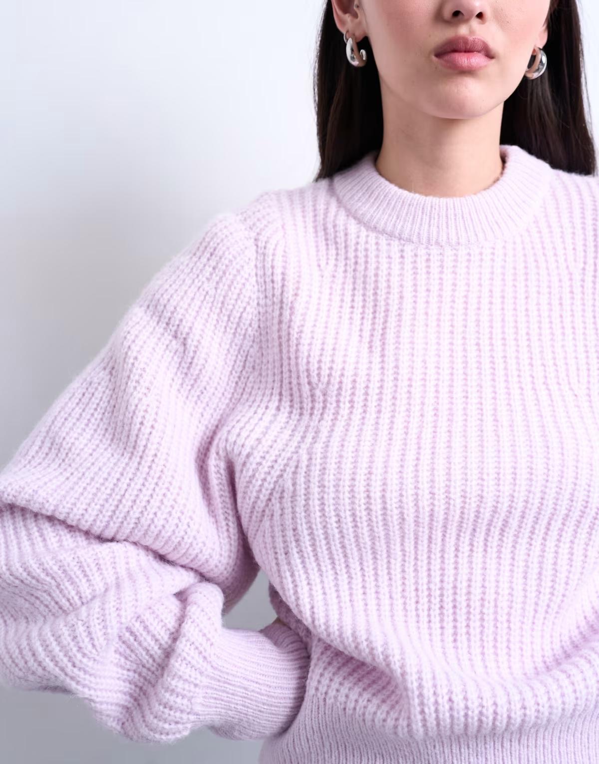 This jumper is crafted from a chunky knit and features a versatile plain design. It has a crew neck, balloon sleeves and ribbed trims.