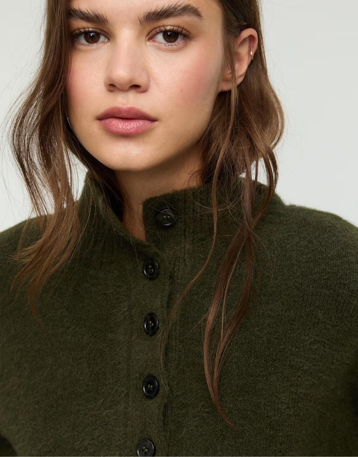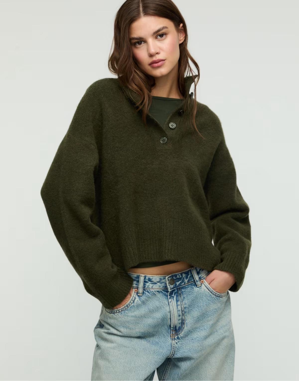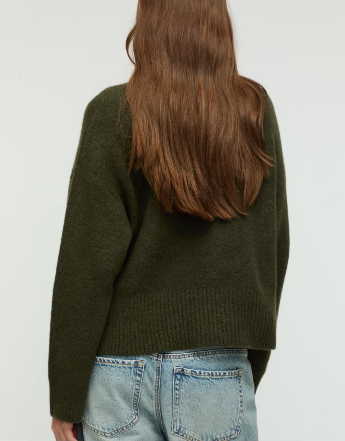 Stradivarius Knit jumper with buttons in green