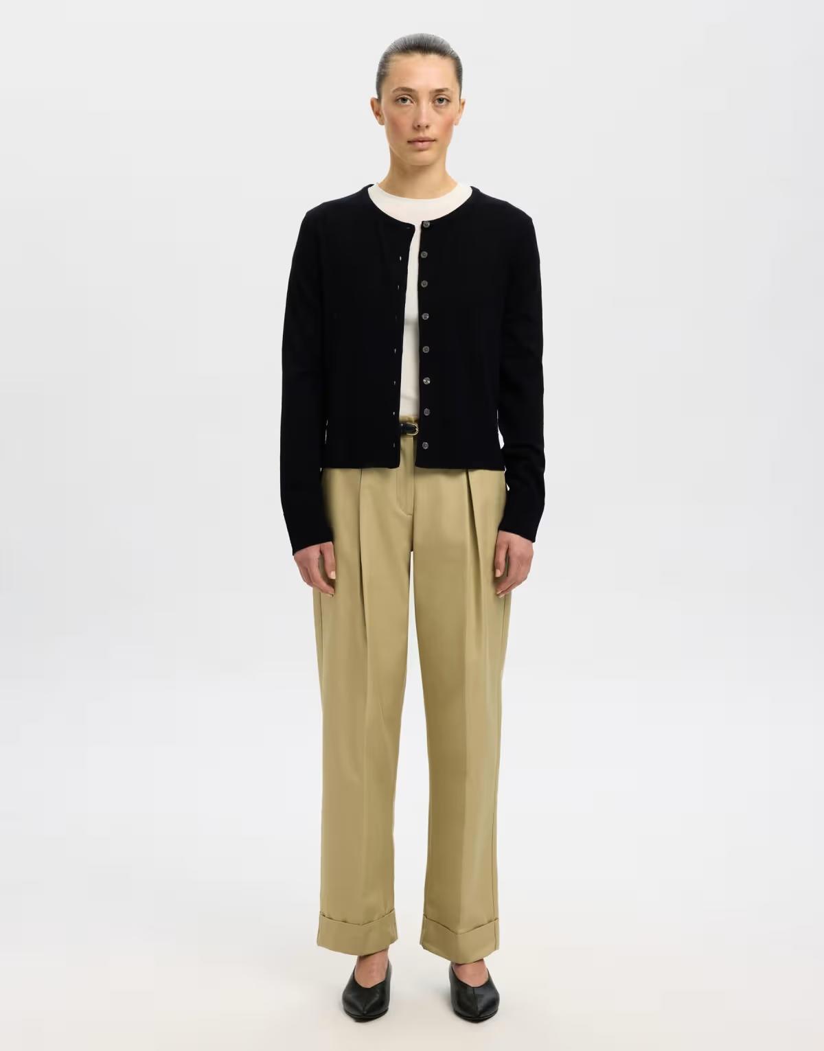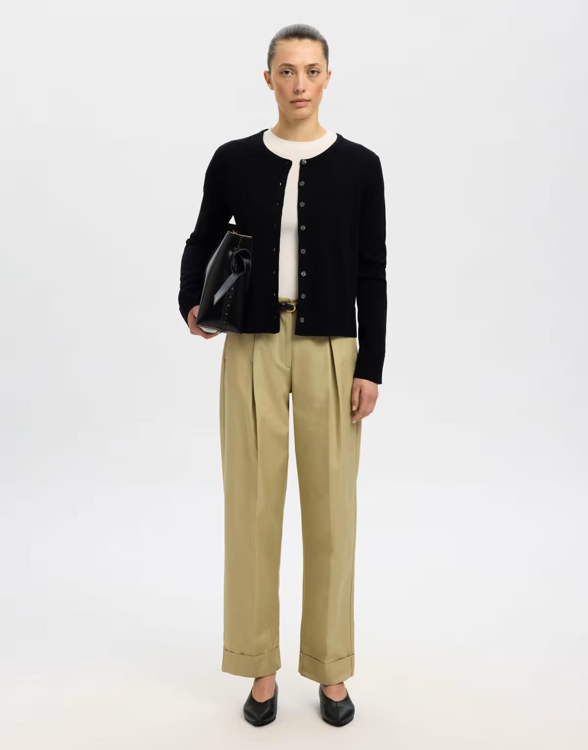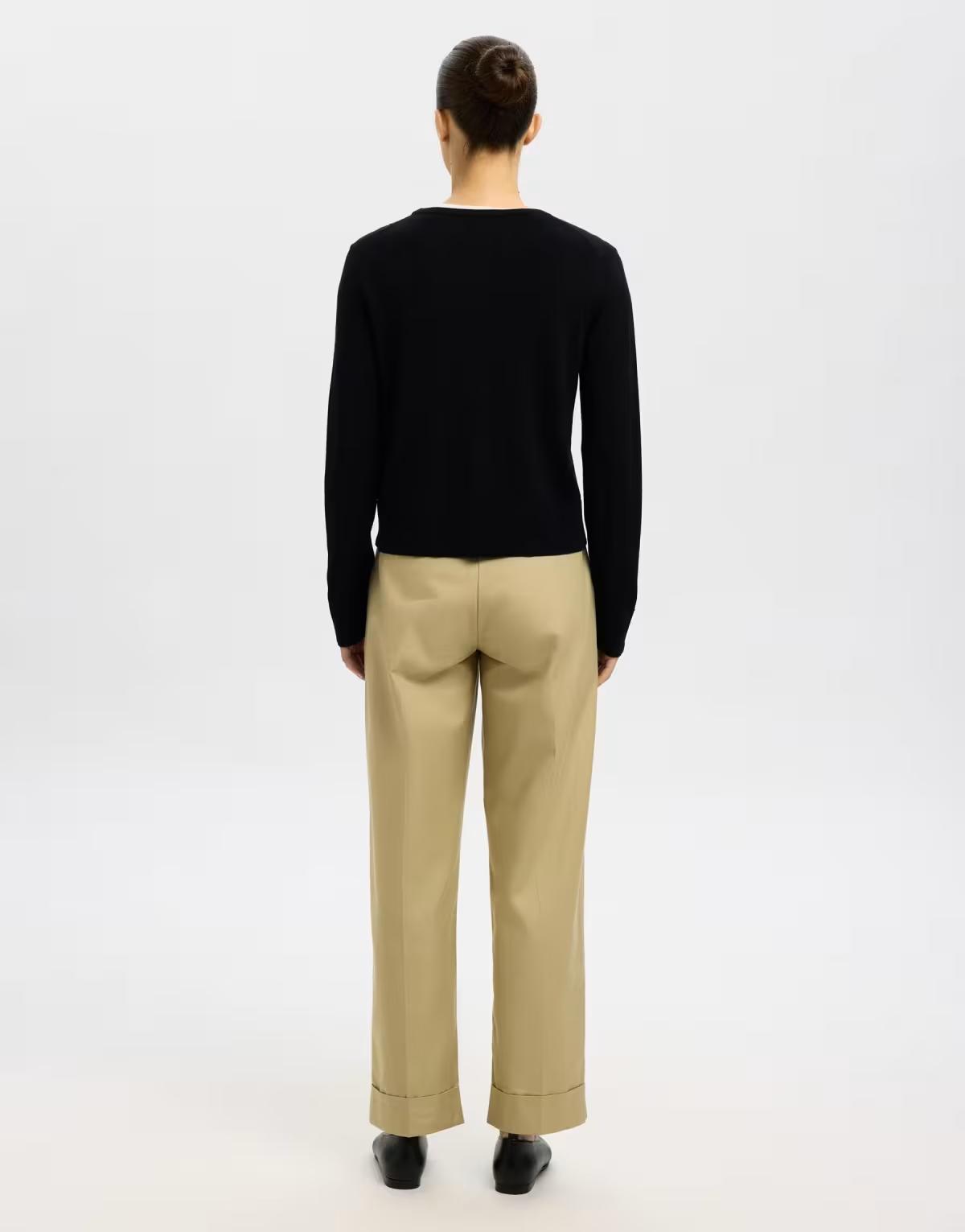 Main: 100% Merino wool.Embracing freedom, identity and style, Selected Femme offers a collection of understated elegance and timeless cool. Focusing on clean, contemporary lines with its tailoring, Selected Femme creates a subtle, sophisticated vibe with slouchy knitwear, oversized blazers and premium jersey basics. It's all about the details too, with quality finishes, luxurious leather pieces and sequin-embellished dresses.