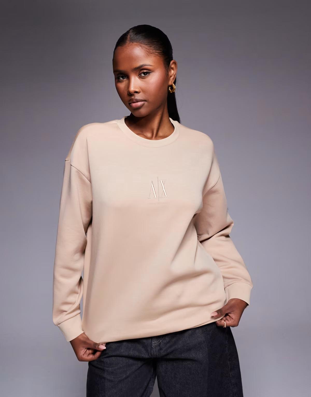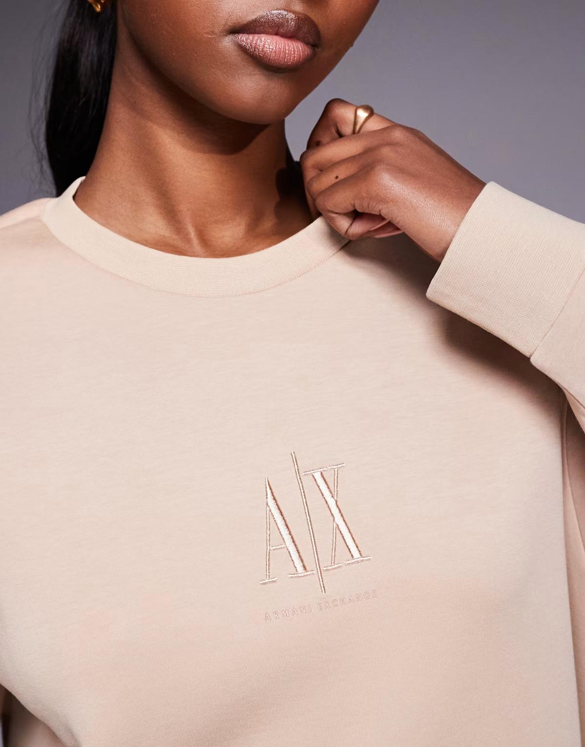 Armani Exchange embroidery logo and text on chest