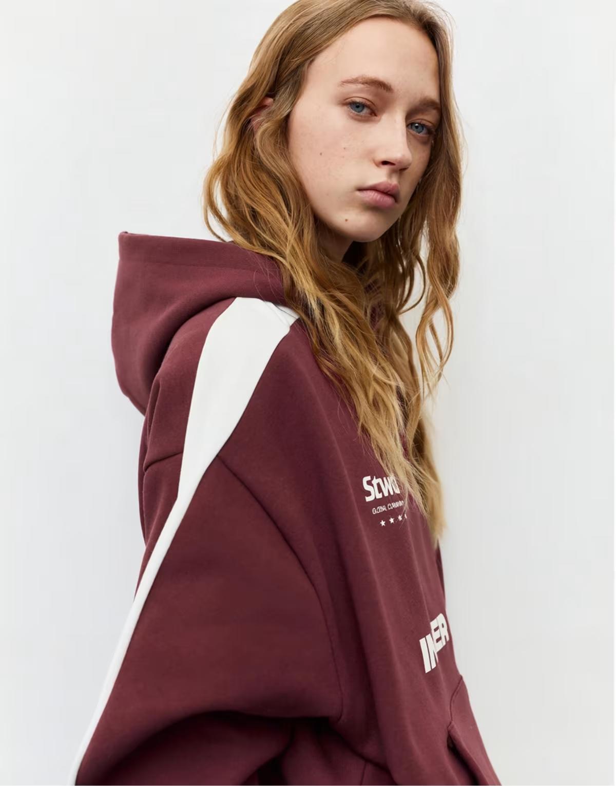 Pull&Bear Stwd inner city hoodie in maroon