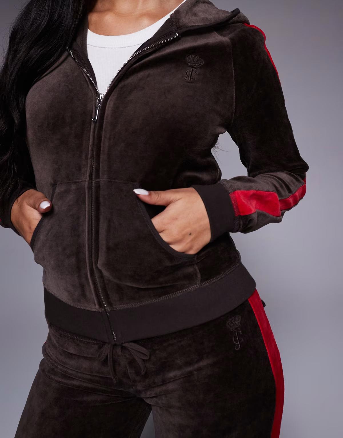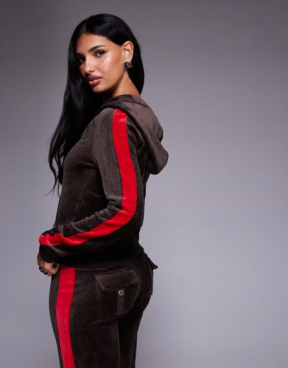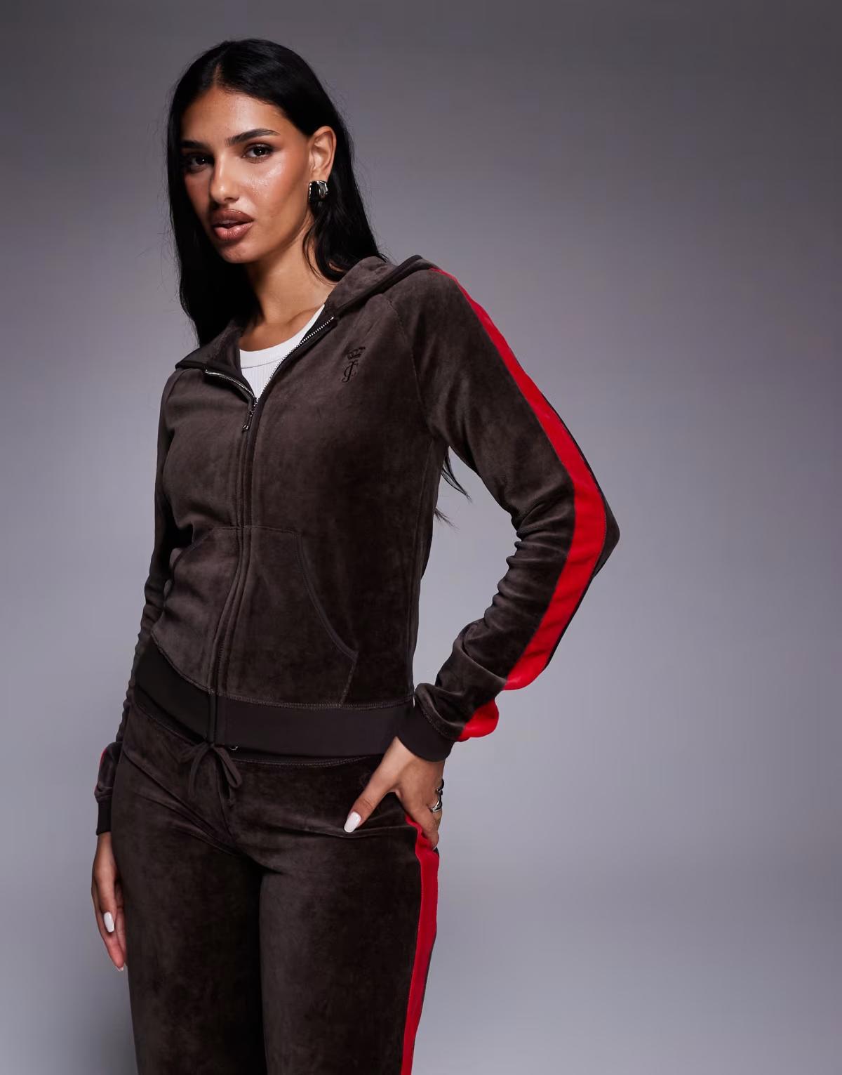 Juicy Couture co-ord zip through stripe logo hoodie in brown/red