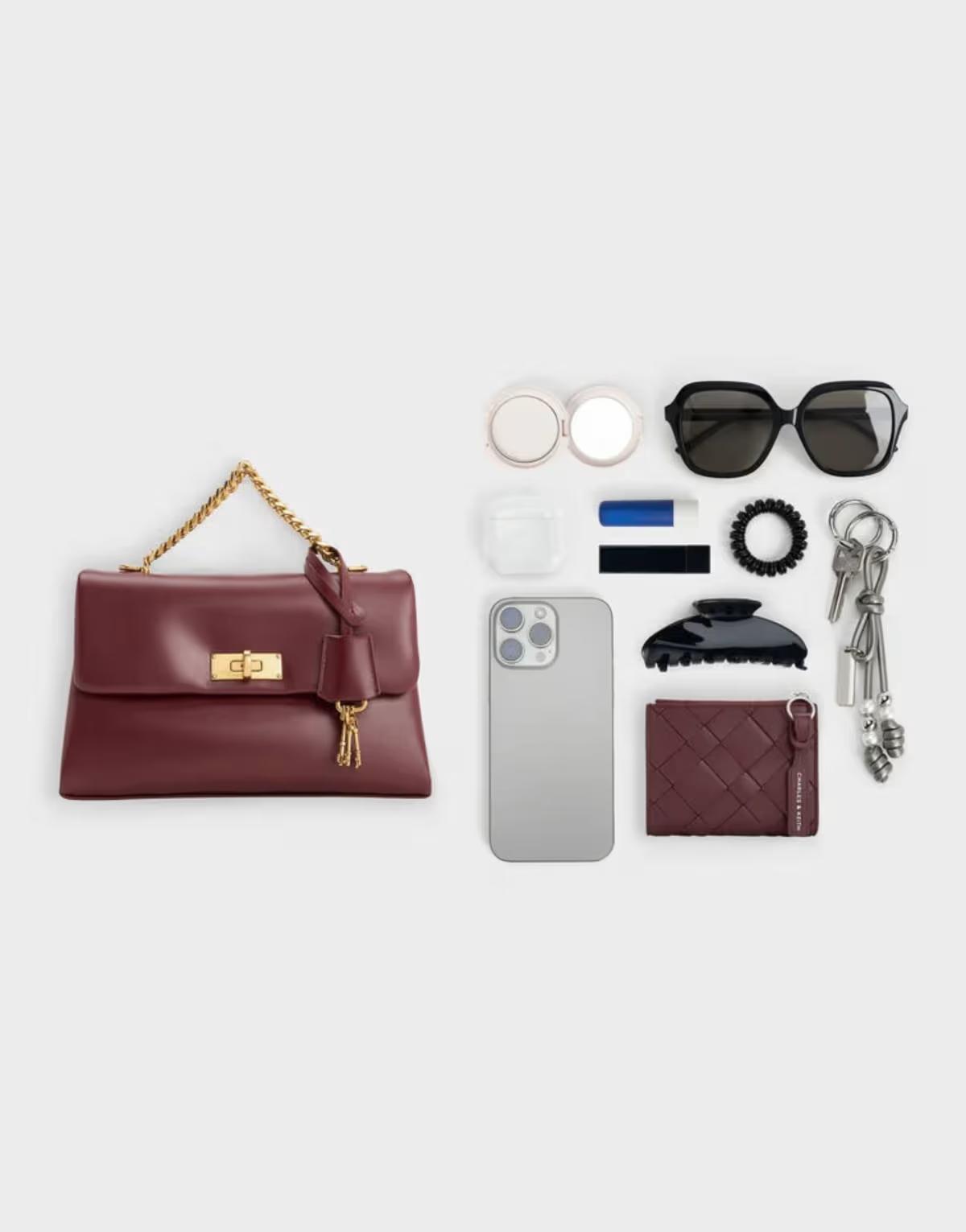 Charles & Keith Kerry chain-handle crossbody bag in mulberry plum