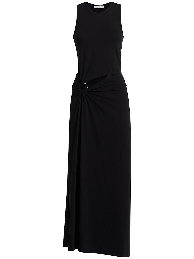 平纹针织长款连衣裙 - 黑色 - 女士 - Rabanne - 圆领设计.