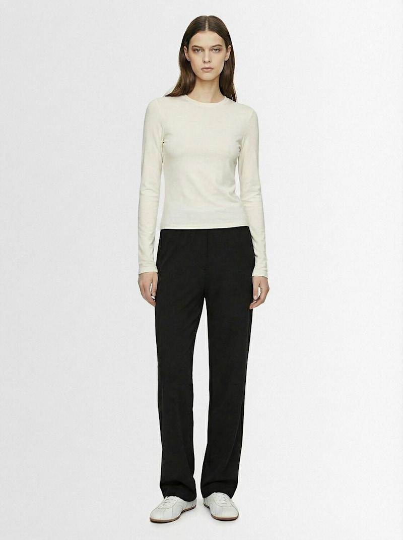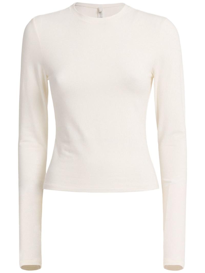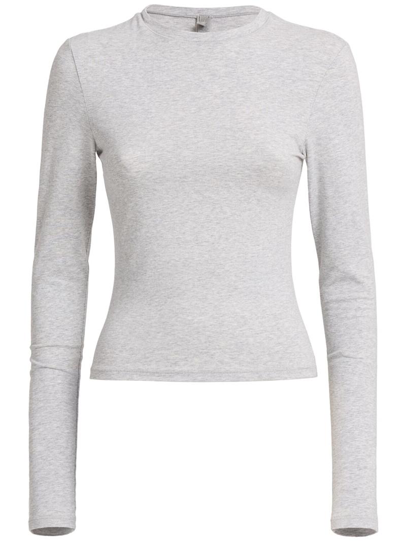 棉质平纹针织长袖T恤 - 黑色 - 女士 - Skims - 圆领设计.