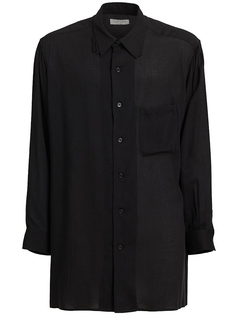 3层领口缩褶袖子衬衫 - 黑色 - 男士 - Yohji Yamamoto - 层叠领子细节.