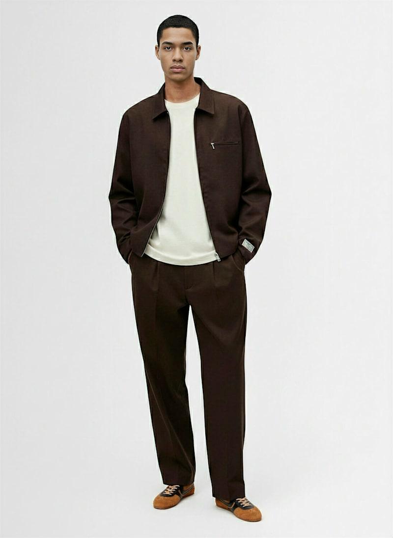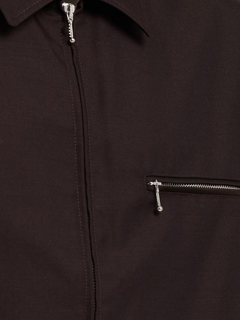 Marzotto羊毛衬衫 - 棕色 - 男士 - Lc23 - 正面拉链开合.