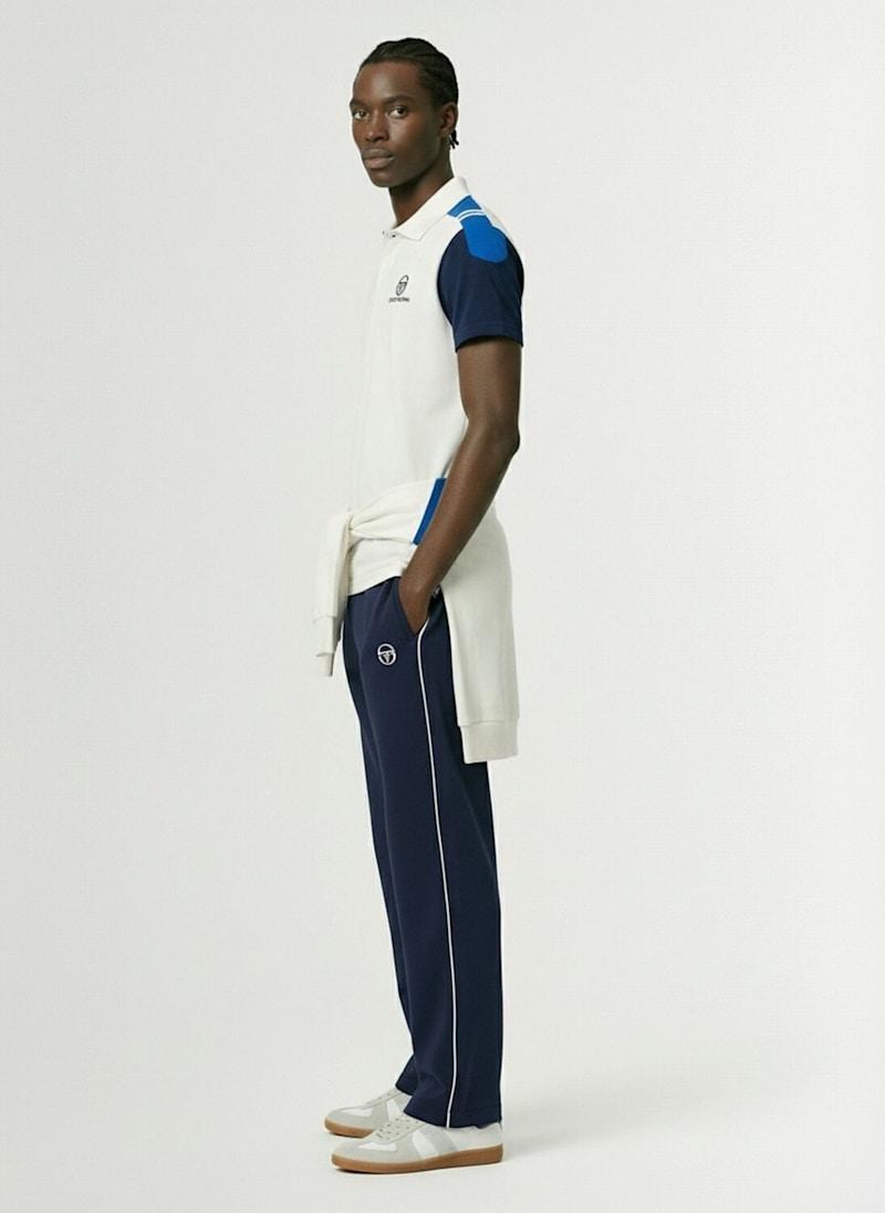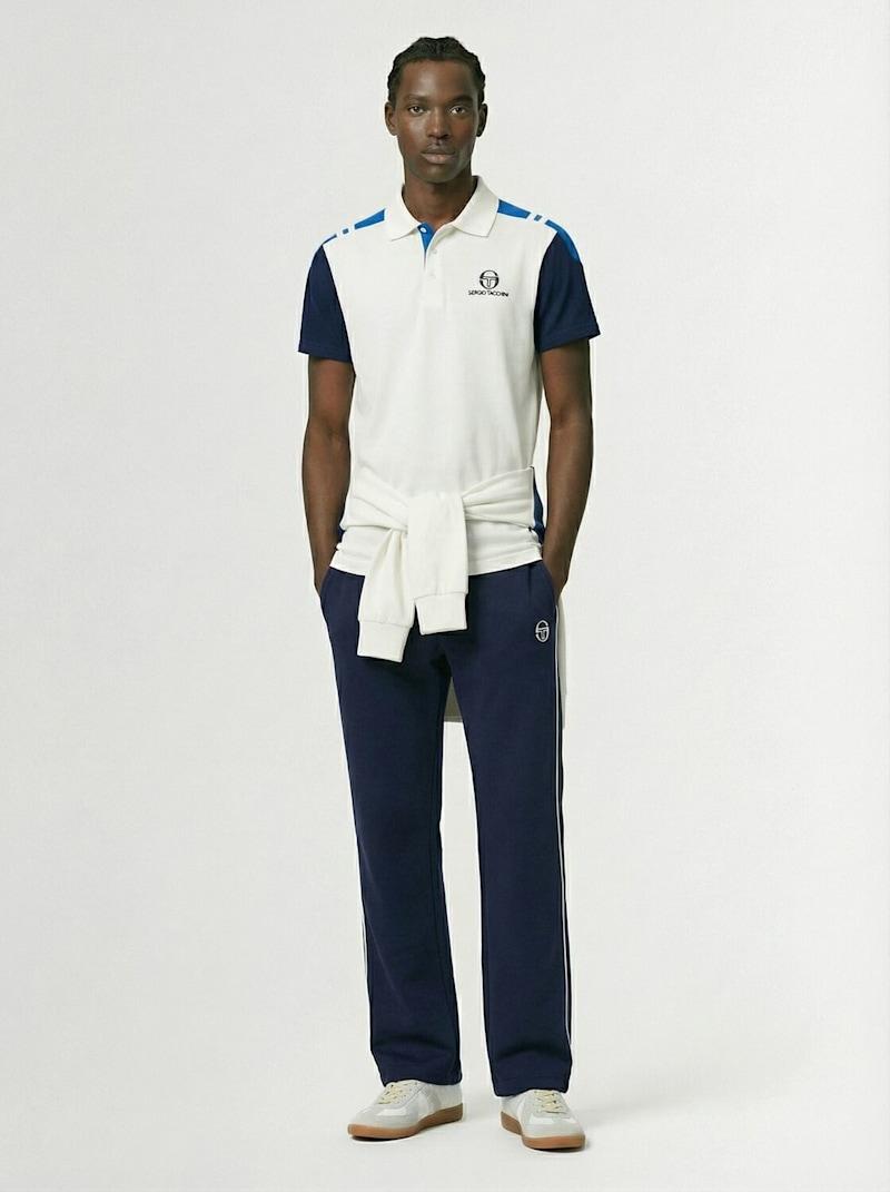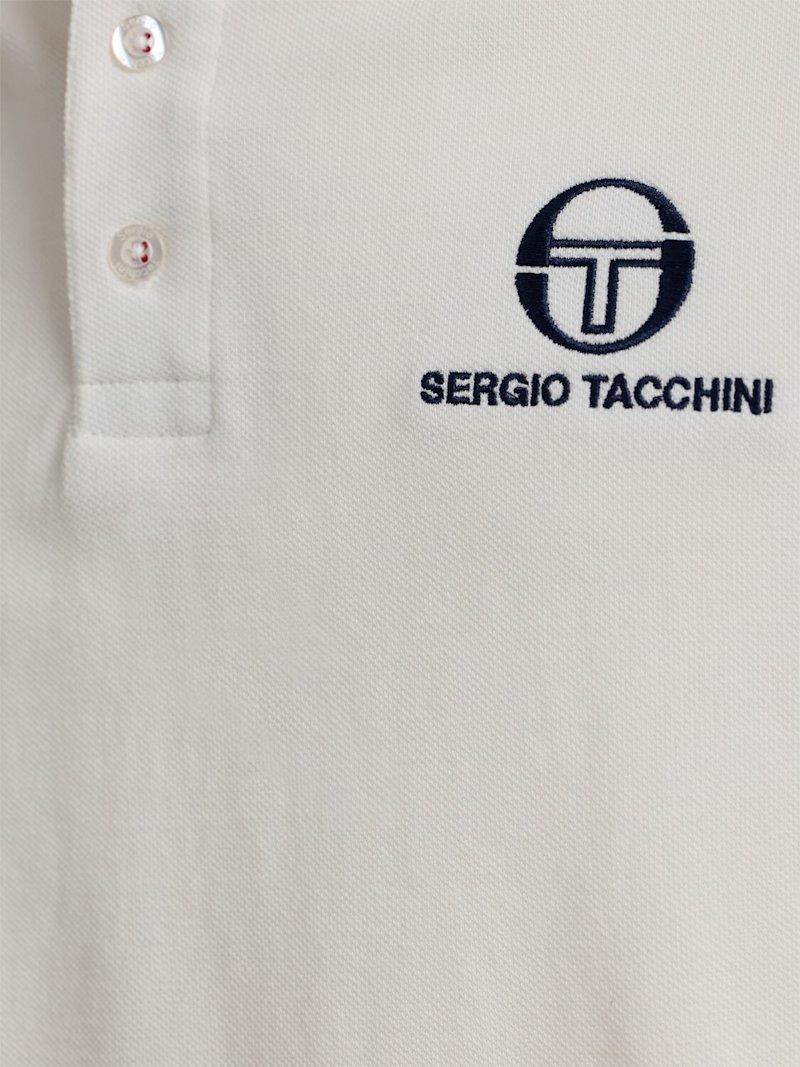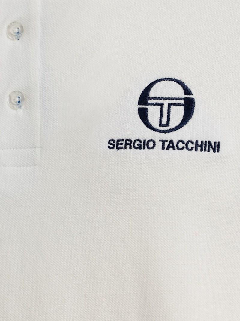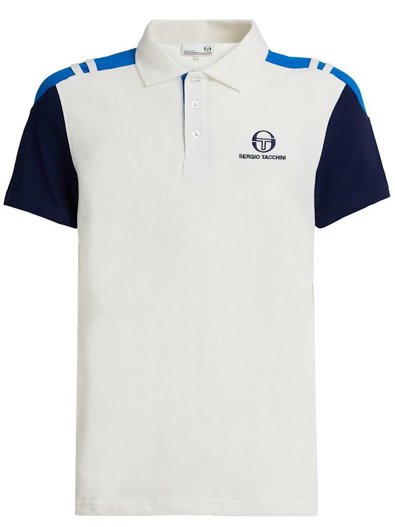 Drive logo棉质POLO衫 - 白色/蓝色 - 男士 - Sergio Tacchini - 正面半开襟纽扣.