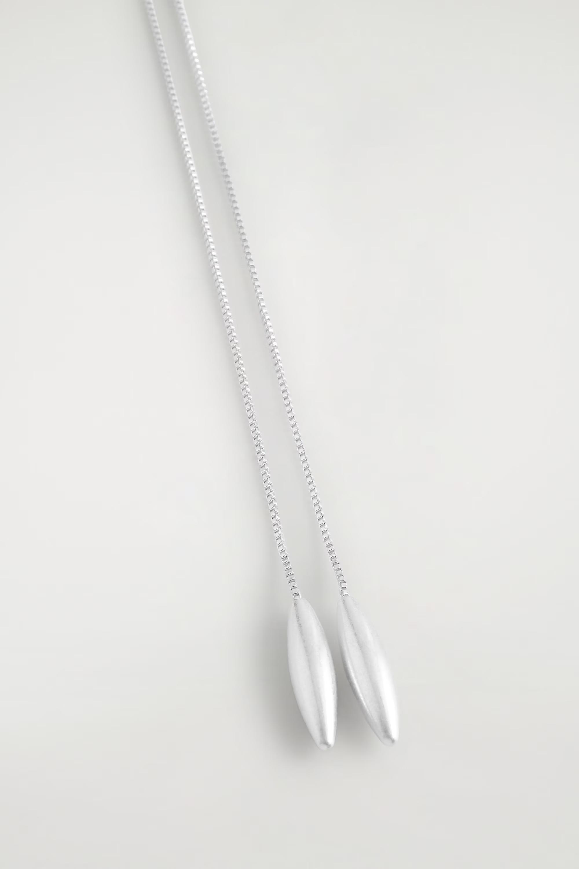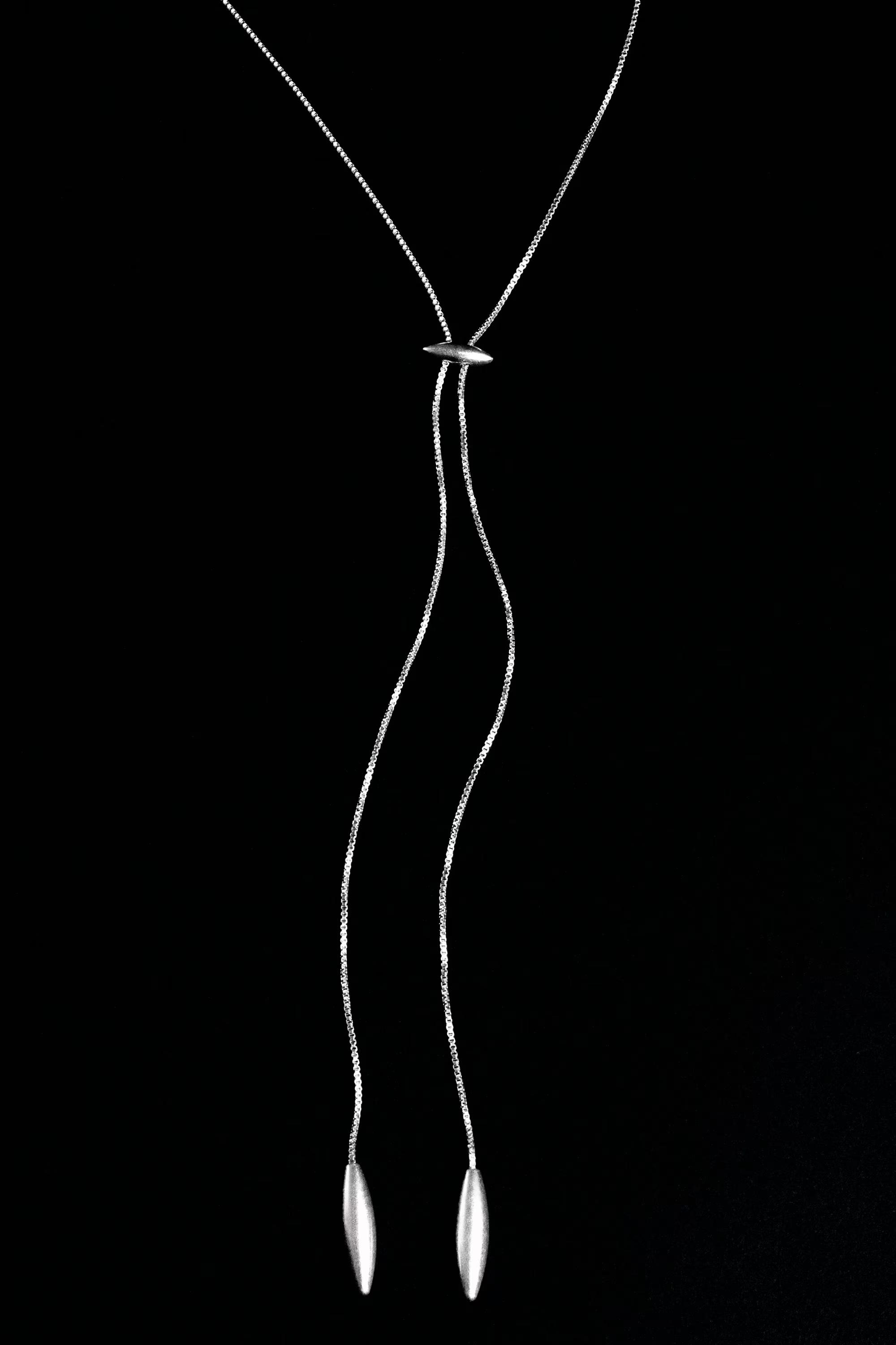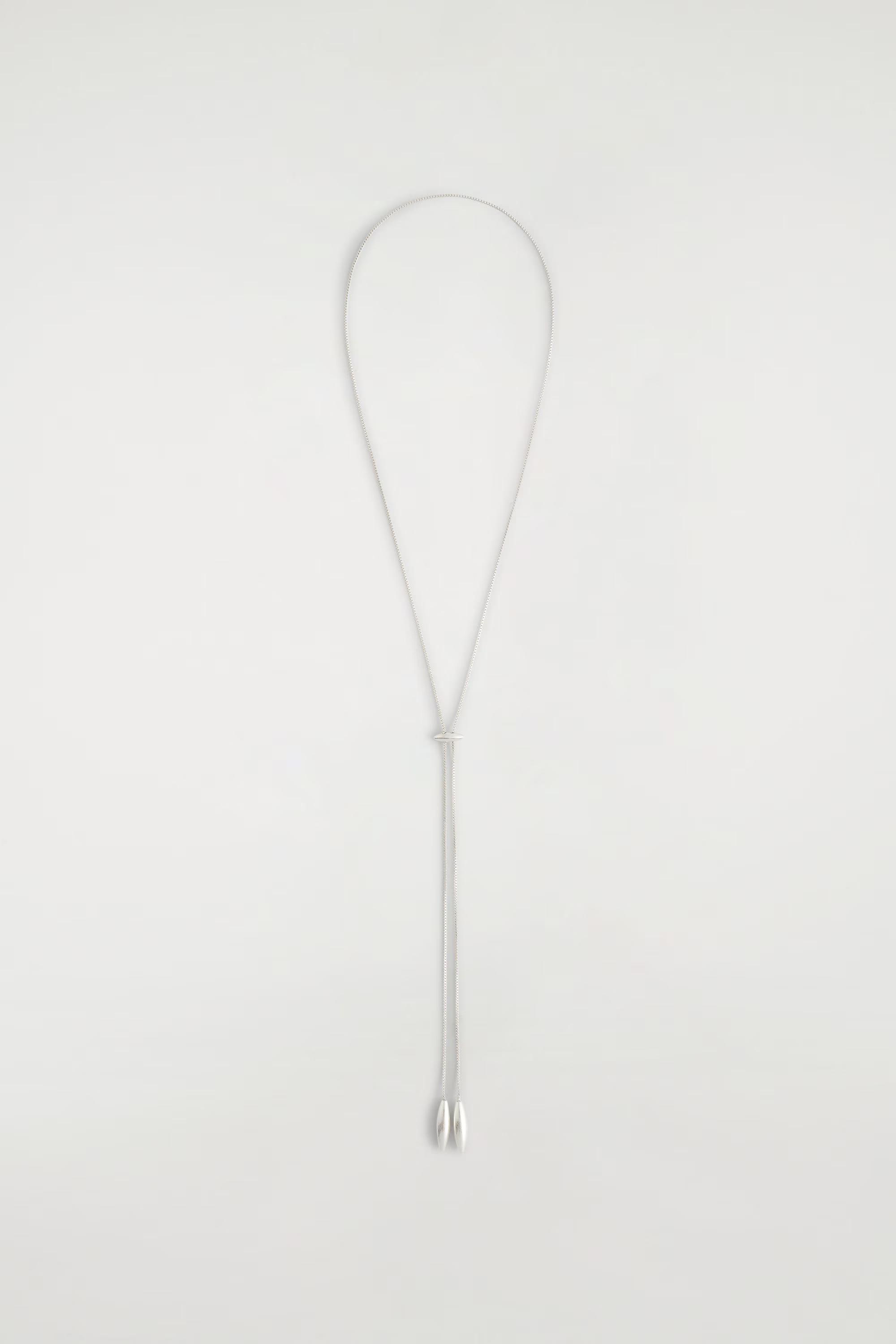 This refined necklace is simple yet impactful. It's crafted from recycled brass that's plated with silver for a polished shine and designed with an adjustable chain that's tipped with two elongated charms. Style it with mixed metals for a modern take on layering.\u0026nbsp;\u0026nbsp;Sliding closureBrass is a versatile material that can be recycled numerous times without losing any of its properties\u0026nbsp;Shell: 100% Post-consumer recycled brass. Plating: 100% Silver. Excluding trimsv