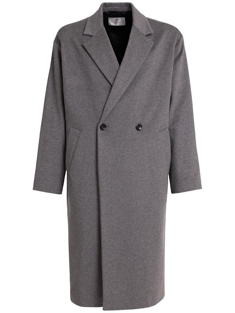 羊毛长款大衣 - 灰色 - 男士 - Seven Gauge - 正面纽扣开合.