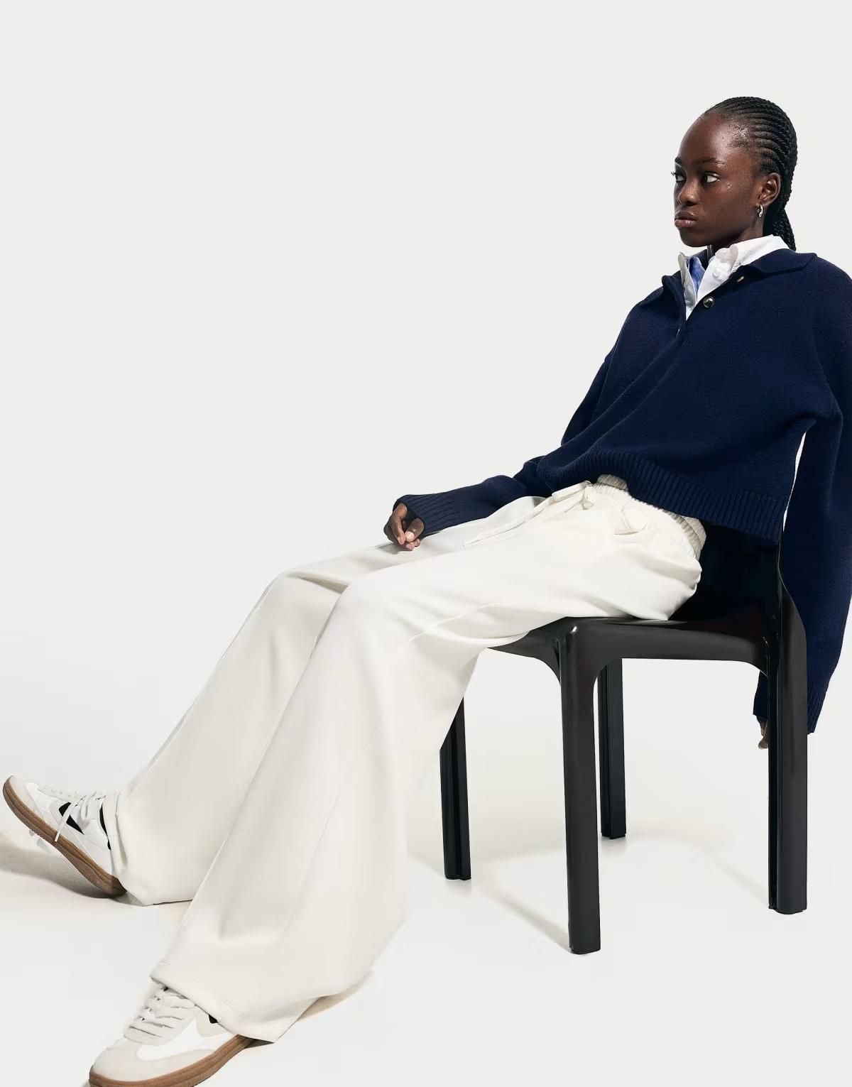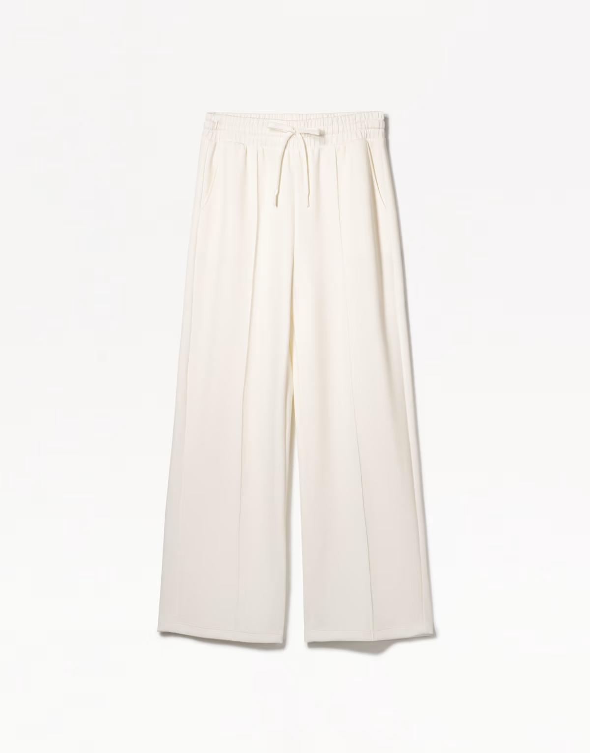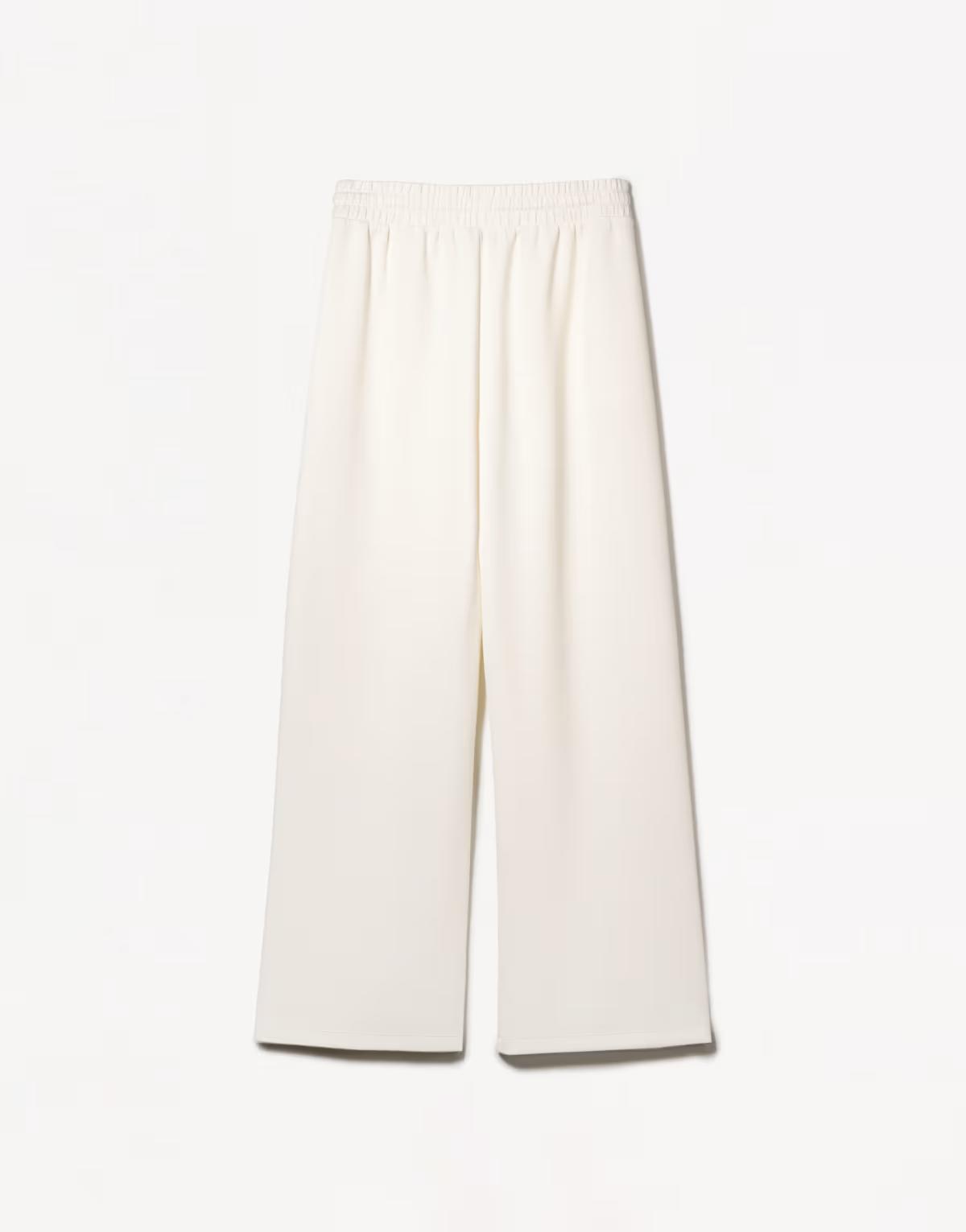 Bershka soft touch wide leg trousers in white