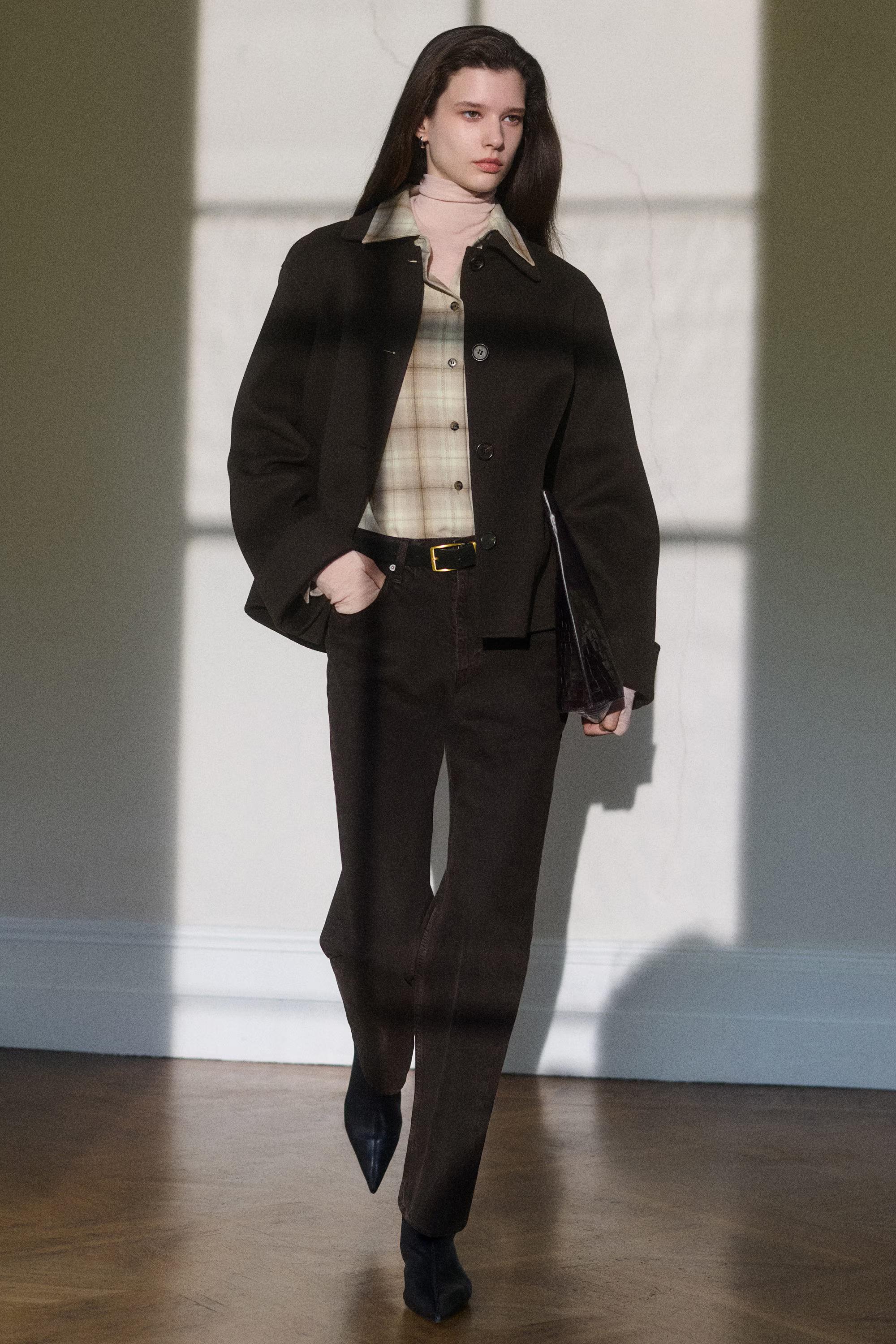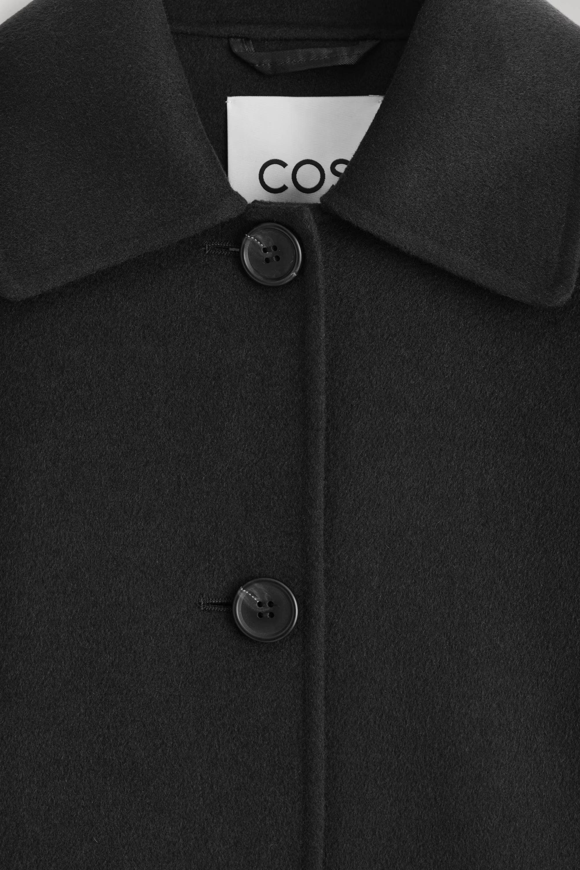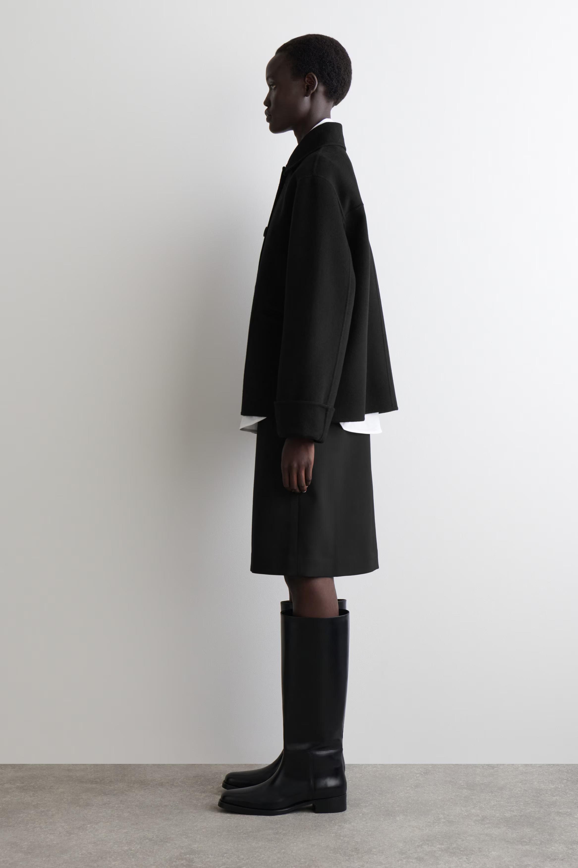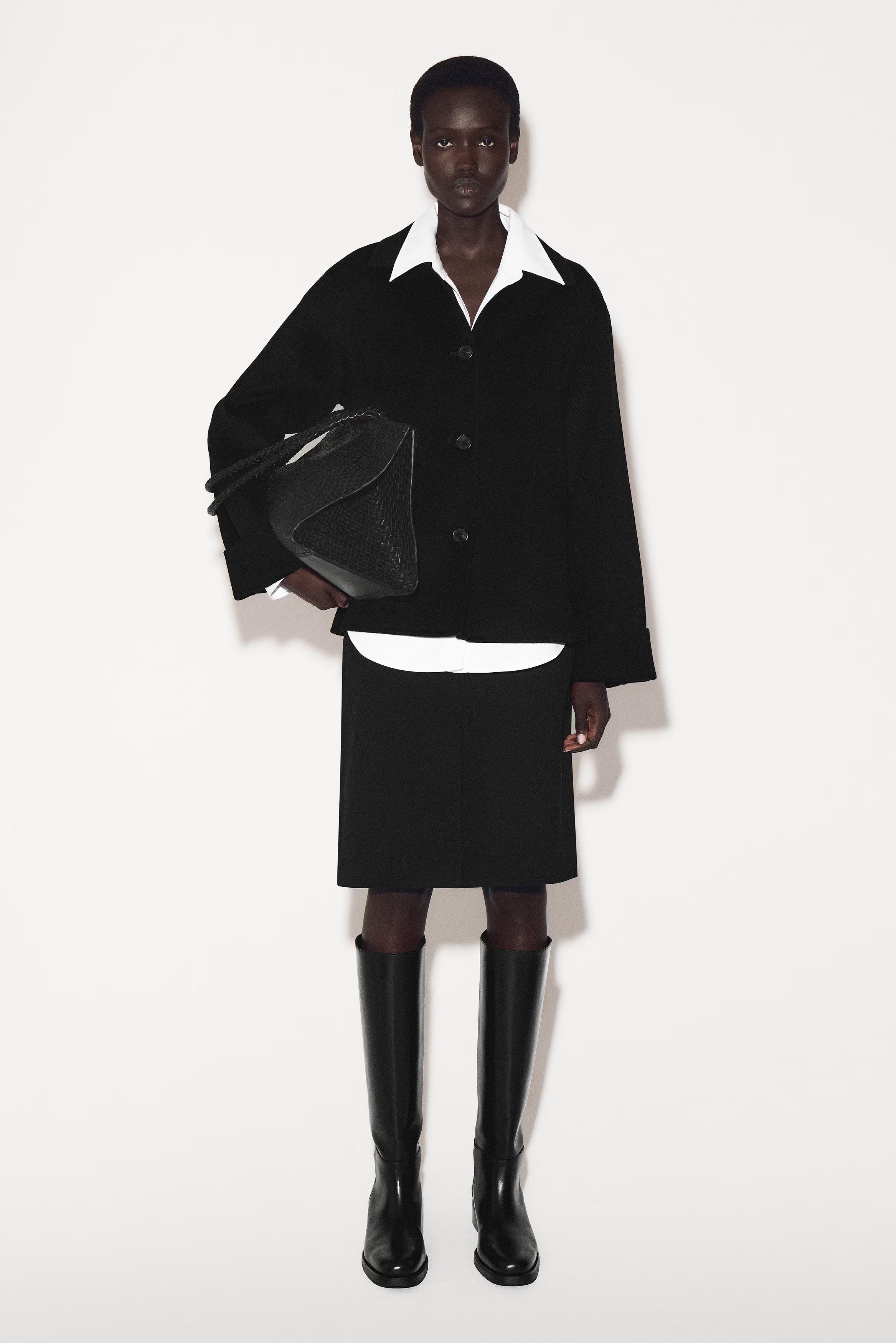 The classic wool jacket is a pillar of the COS wardrobe. Rendered in a rich espresso tone, this piece is crafted from RWS wool and TENCEL\u0026trade; Lyocell that's double-faced for a premium finish and features a pointed collar and front welt pockets.\u0026nbsp;Relaxed fitButton closureThis item runs large to size, we recommend taking a size downThis product contains Responsible Wool Standard TE-00047206 (RWS) wool fibre from farms certified to animal welfare and land-management requirements\u0026nbsp;Shell: 60% RWS Wool, 40% TENCEL\u0026trade; Lyocell. Excluding trims / Dry clean\u0026nbsp;Back length of size S is 64.3cm / Model wears a size S