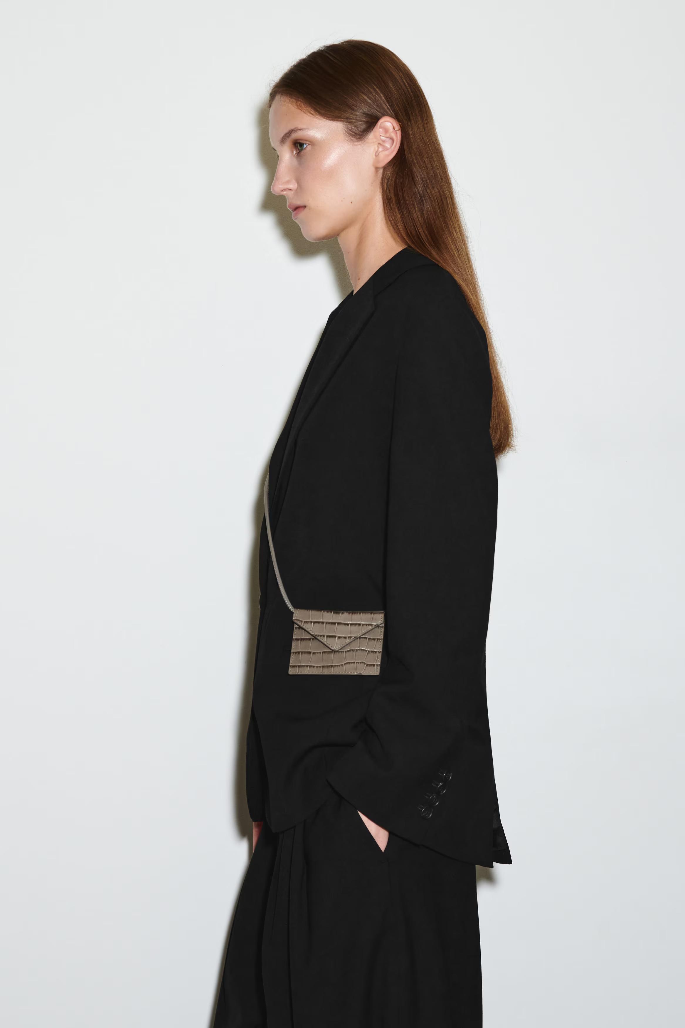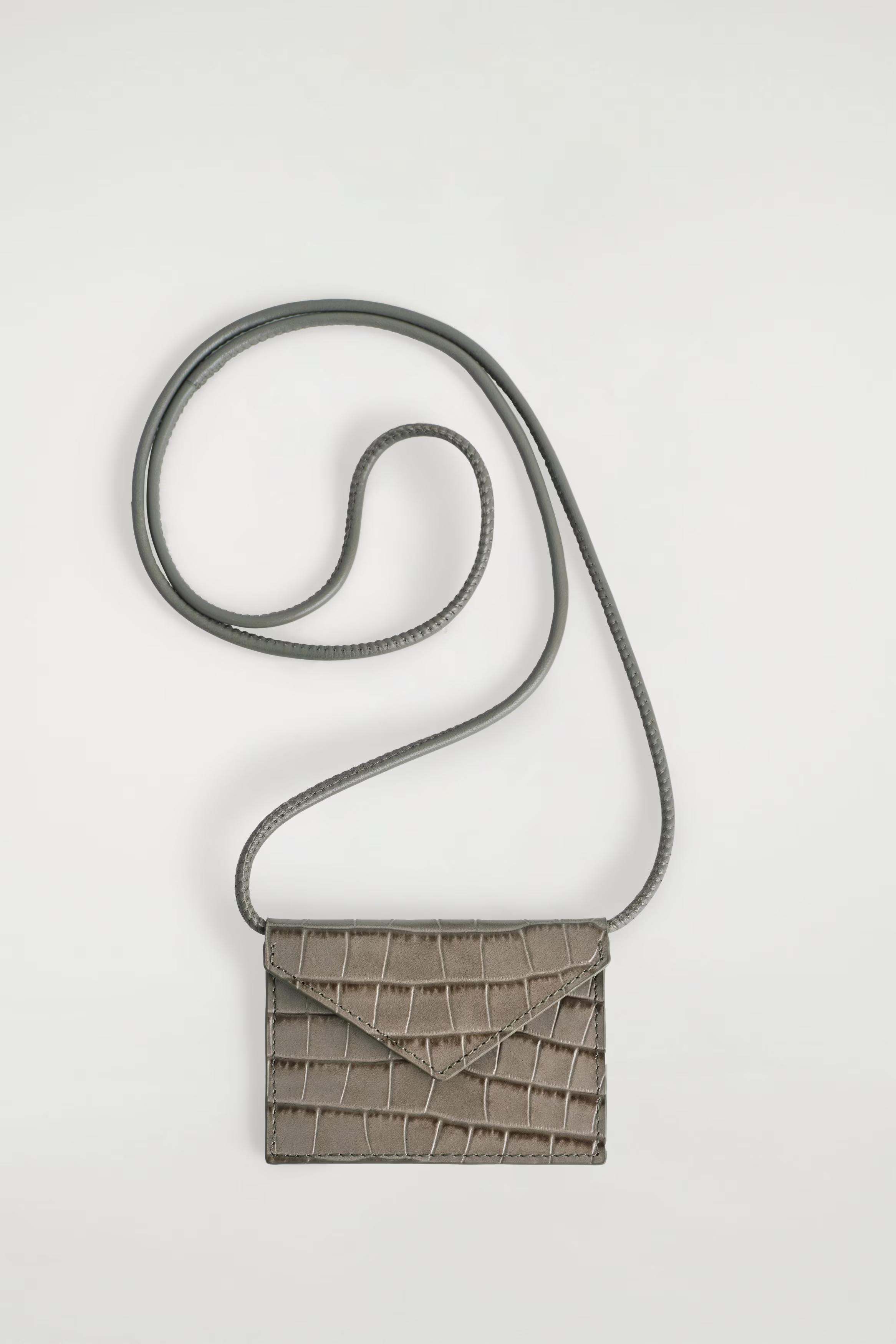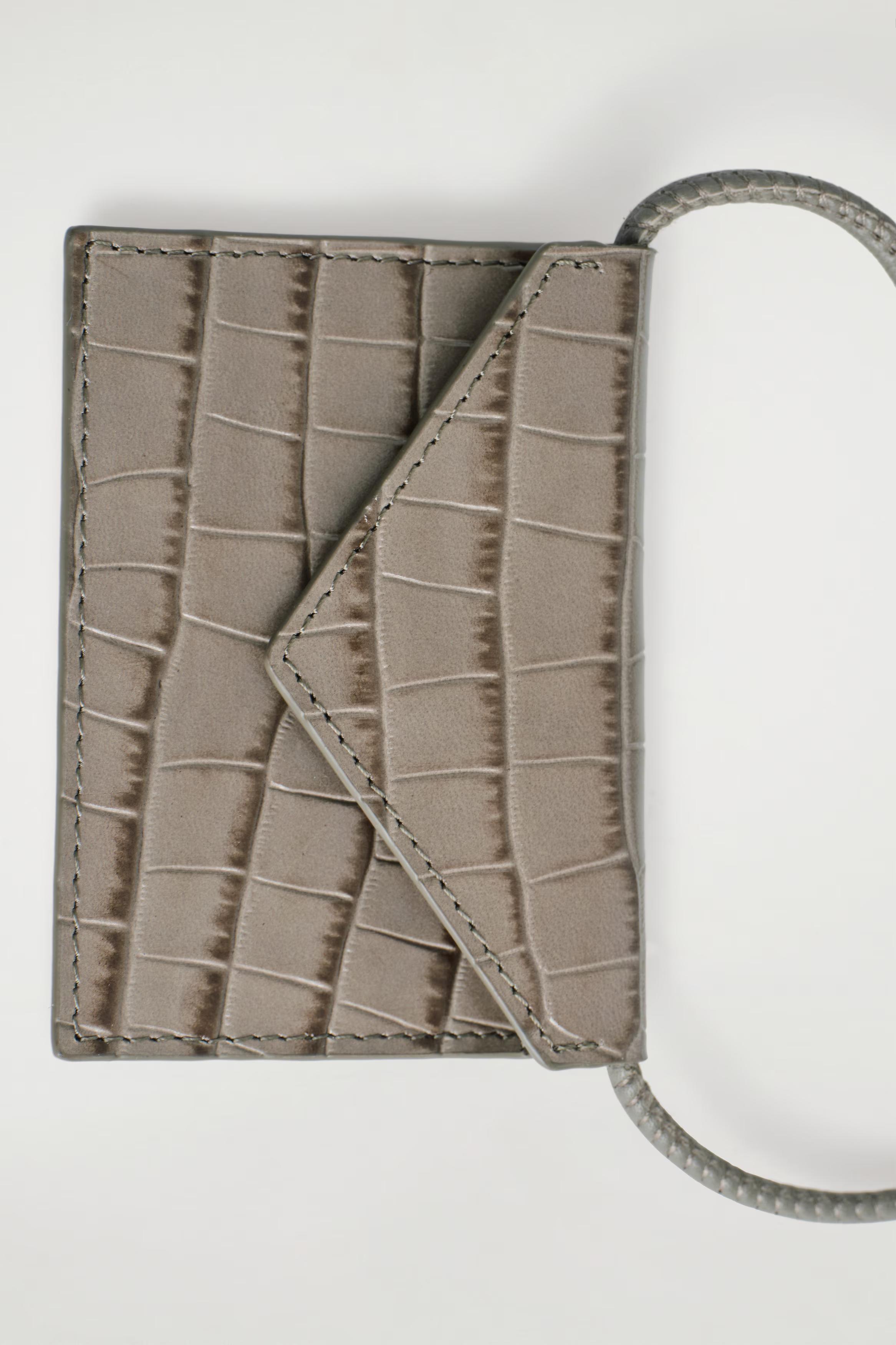 This beige cardholder offers a dynamic way of adding texture to your looks. It's crafted from premium crocodile-effect leather and designed with a secure press-stud closure and an extended strap so you can style it across the body.\u0026nbsp;Press-stud closureCOS supports responsible manufacturing via the Leather Working Group\u0026nbsp;Shell: 100% Leather. Excluding trims