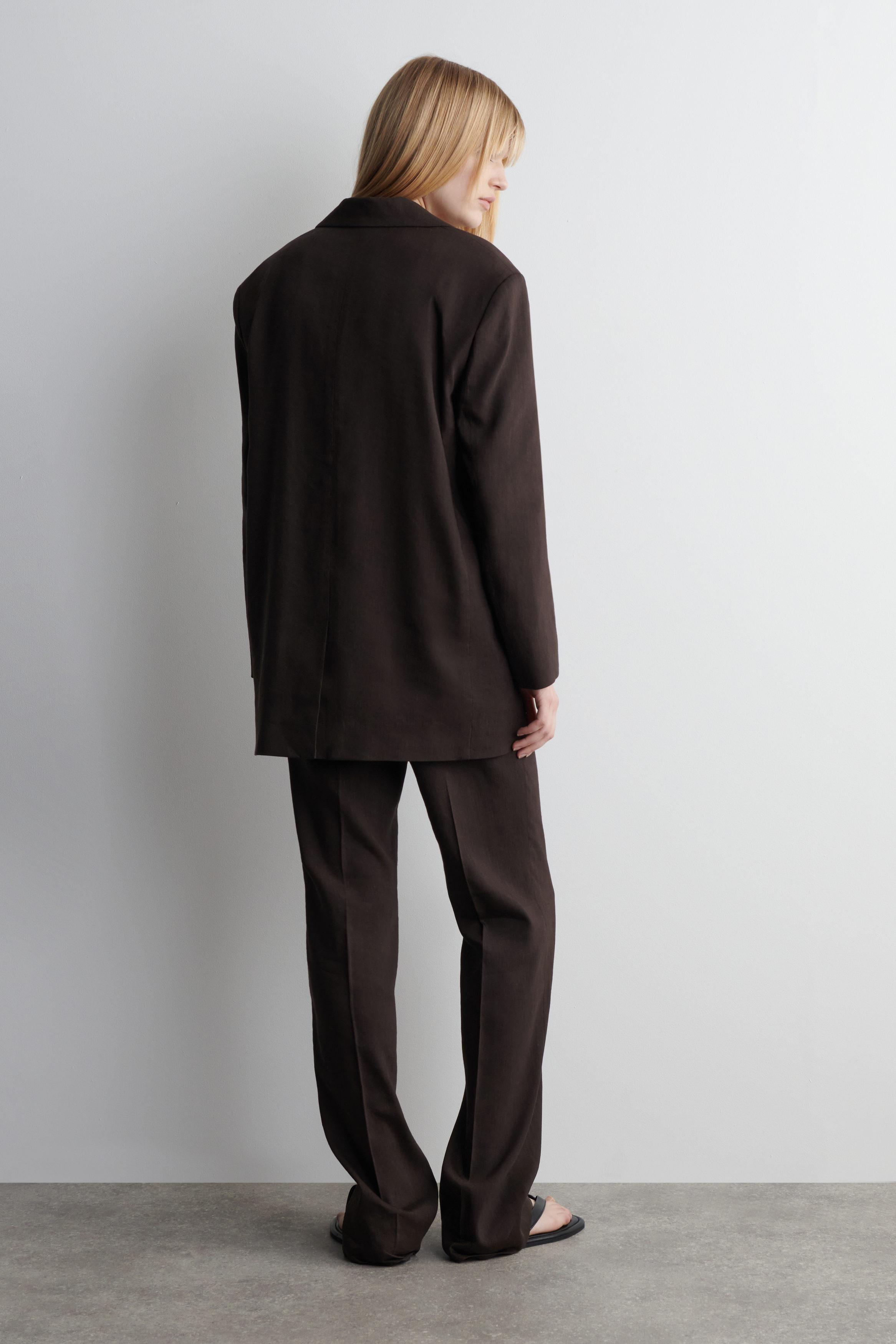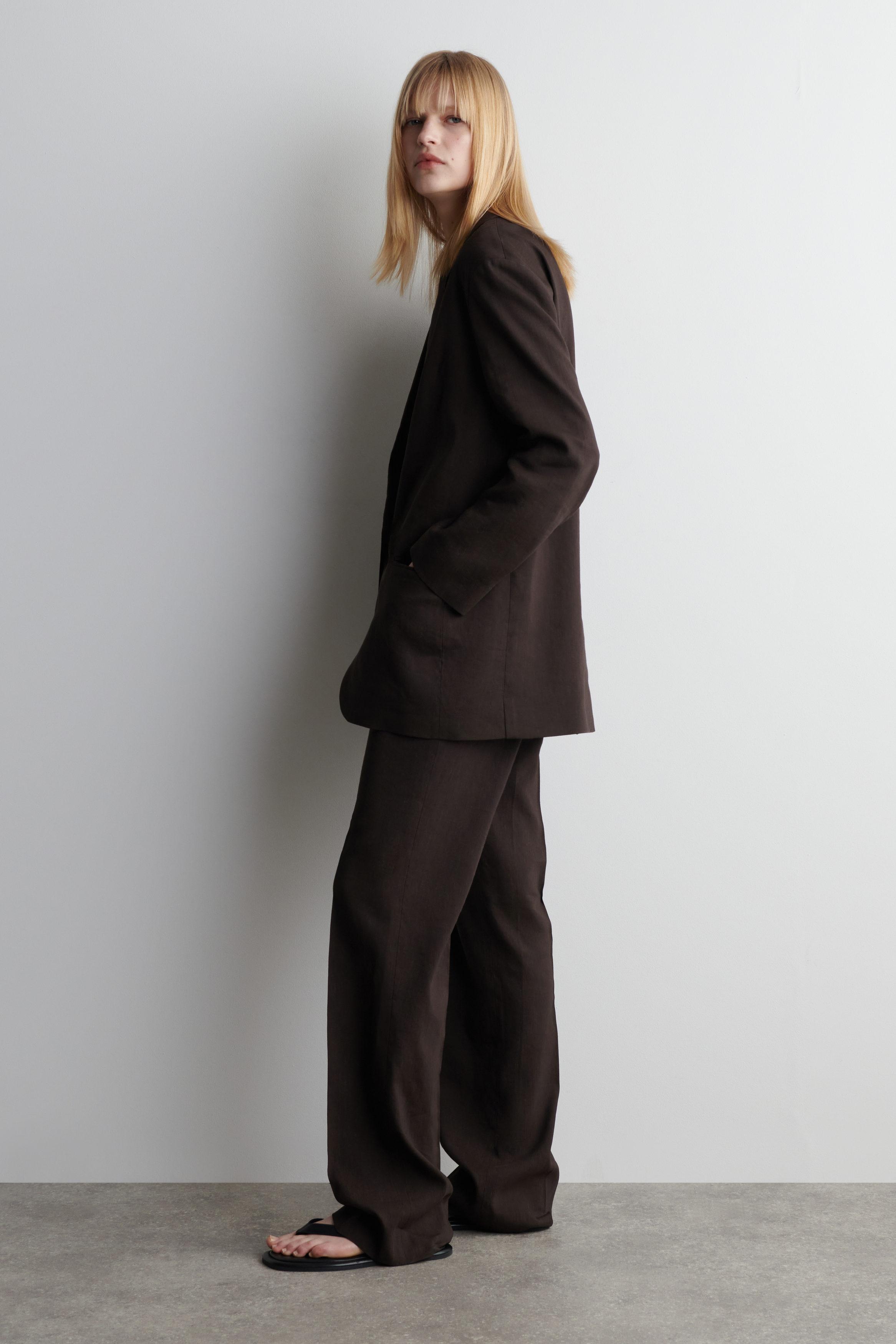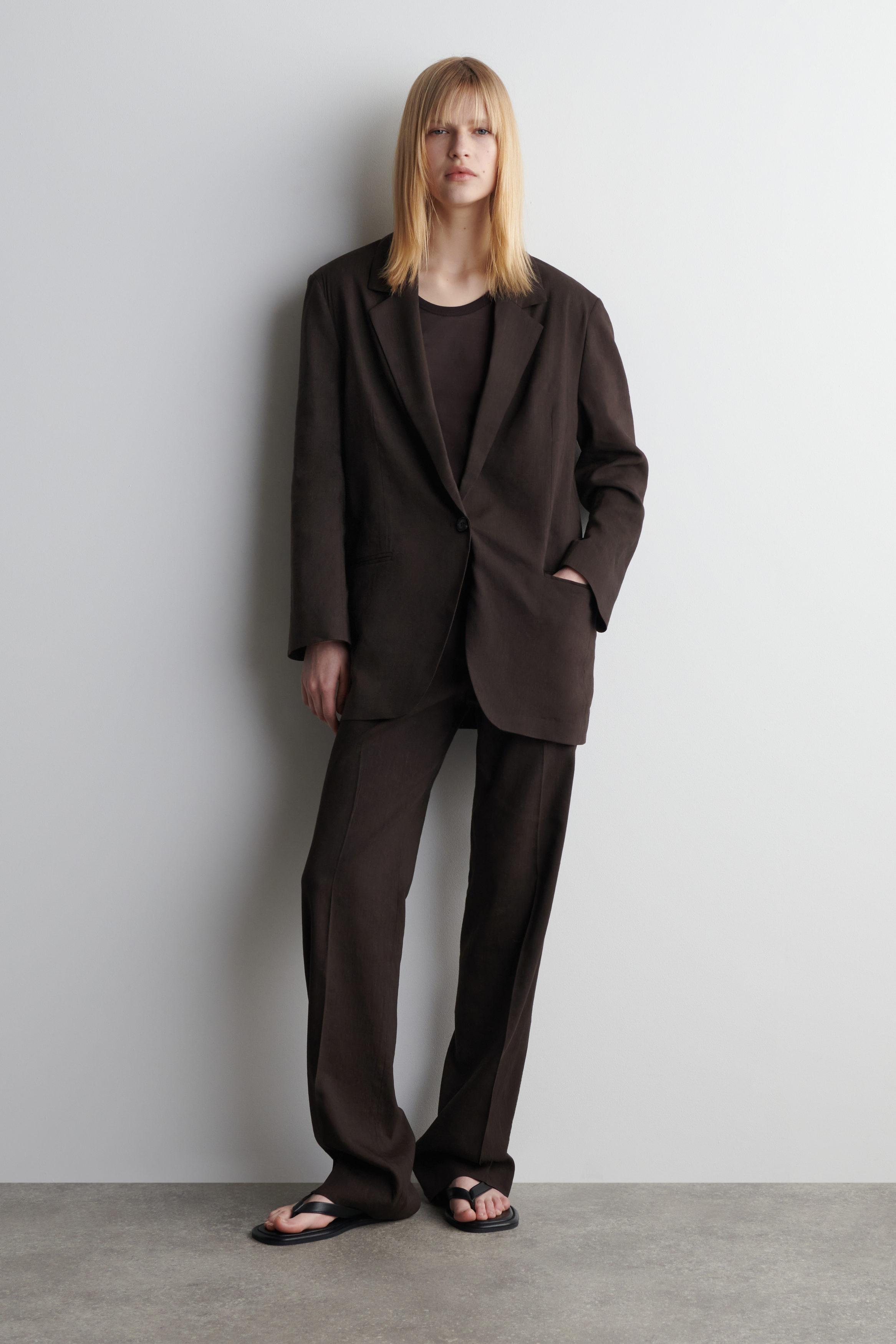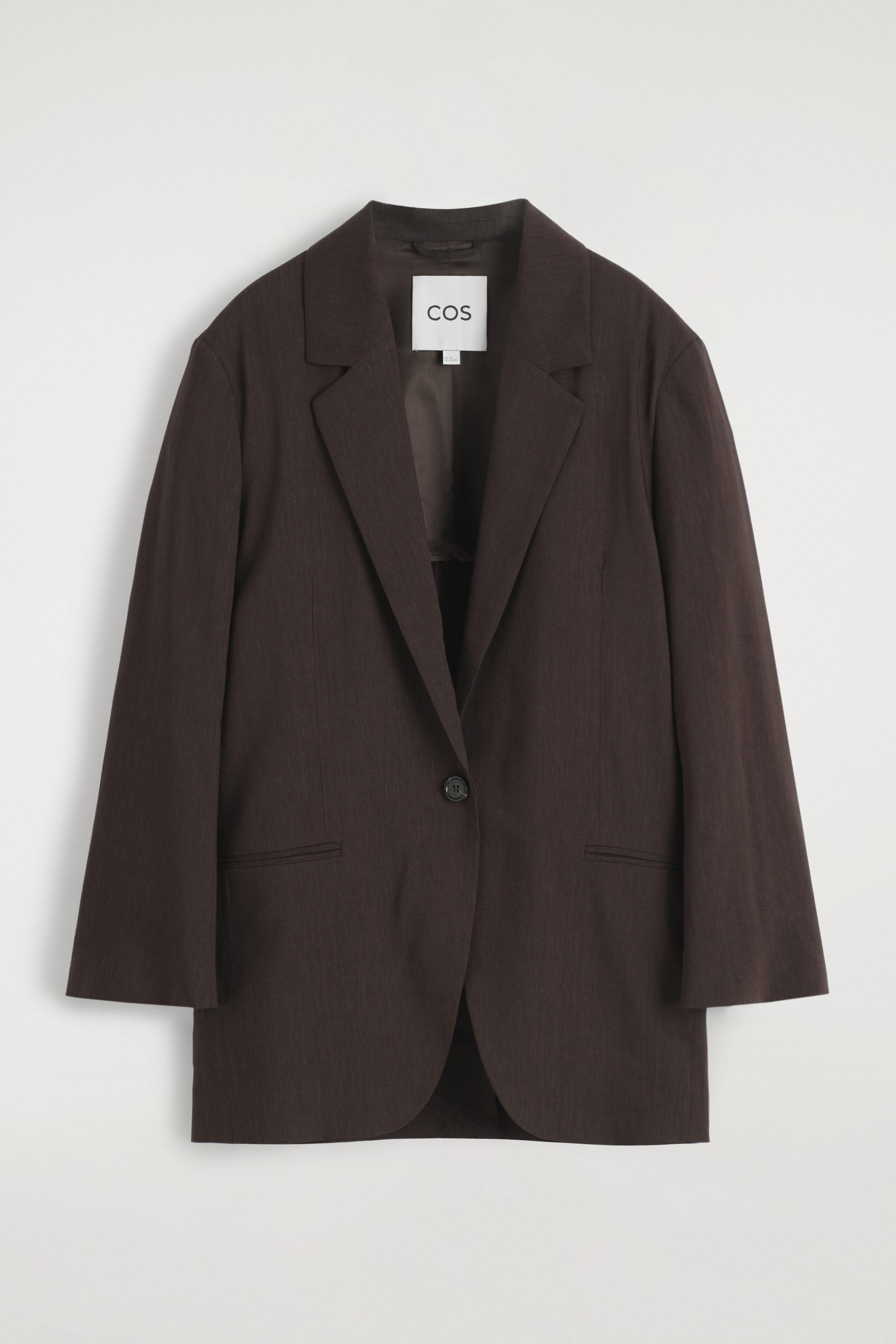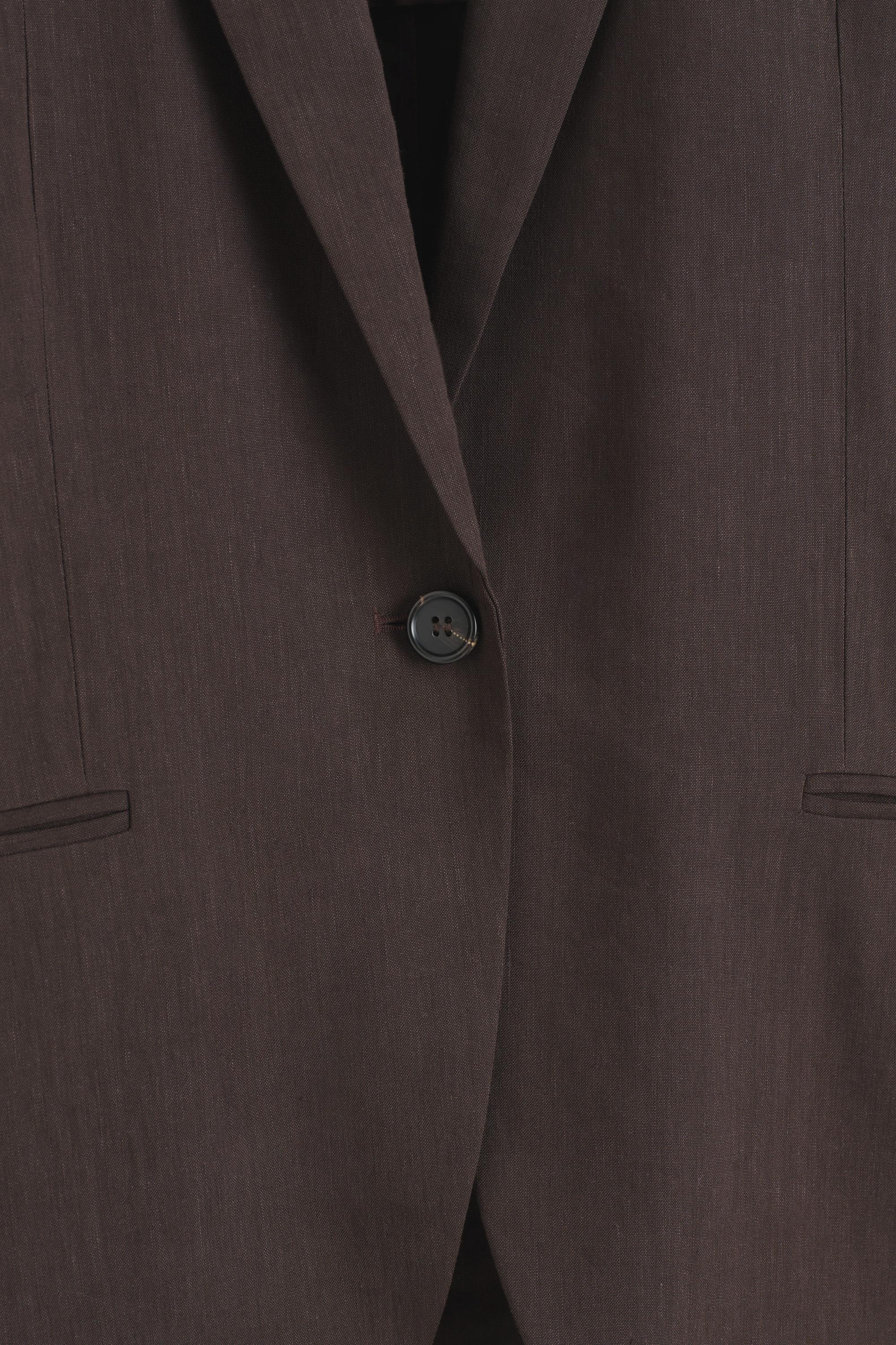 For Spring Summer 2025, the tailoring collection is designed with a focus on exquisite cuts rendered in premium linen. This single-breasted blazer has an unstructured appeal, with lowered shoulders and a single button fastening that lends it to effortlessly styling over a tank top or T-shirt.\u0026nbsp;Regular fitButton closure\u0026nbsp;Shell: 50% Linen, 47% Viscose, 3% Elastane. Pocket lining: 100% Cotton. Lining: 100% Viscose. Excluding trims / Dry clean\u0026nbsp;Back length of size EU 36 is 74.6cm / Model wears a size EU 36