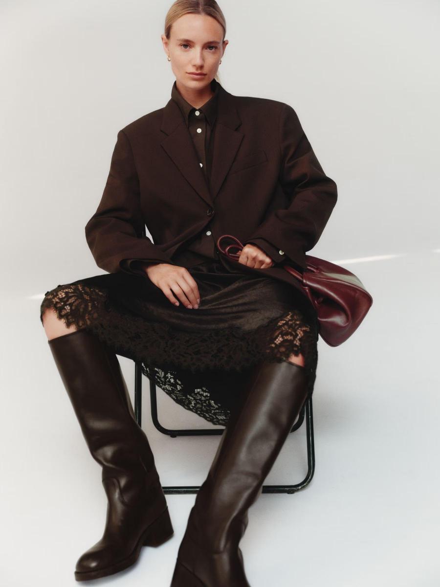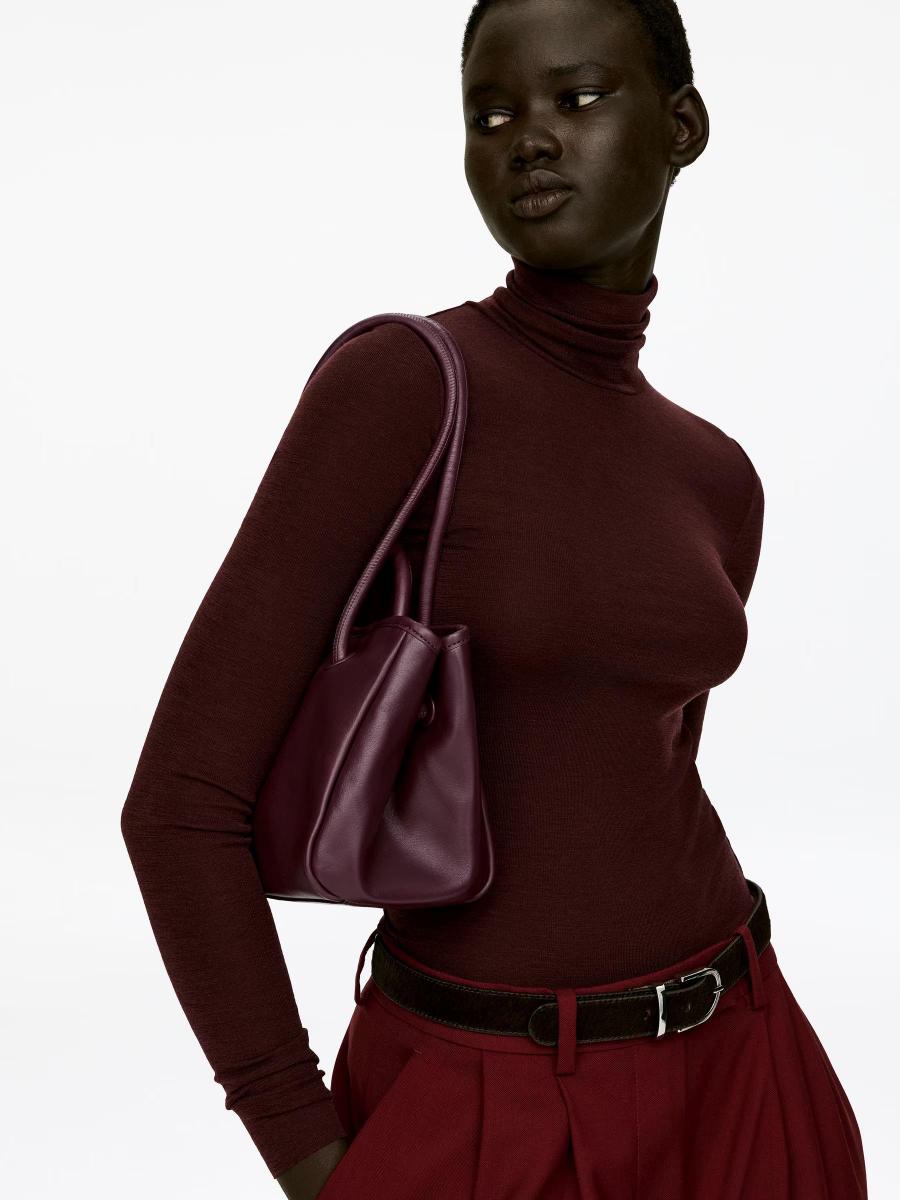 Crossbody bag crafted from leather, featuring top handles and tubular shoulder straps that slide through eyelets. Includes an internal zip pocket and a magnetic closure.ARKET/Women's clothes/Women's bags