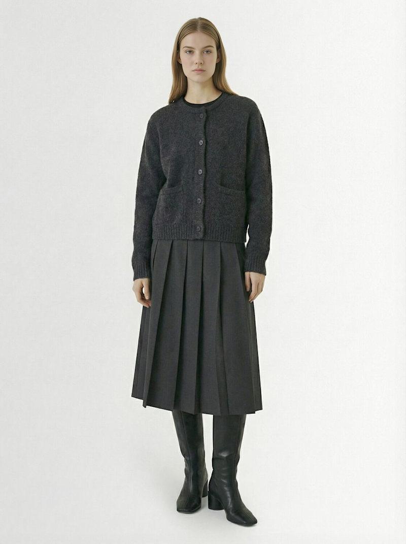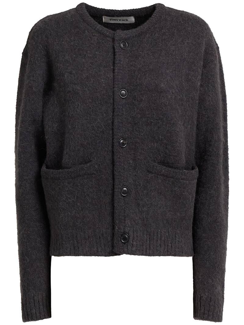 提花针织腈纶混纺夹克 - 灰色 - 女士 - Tonywack - 正面纽扣开合.