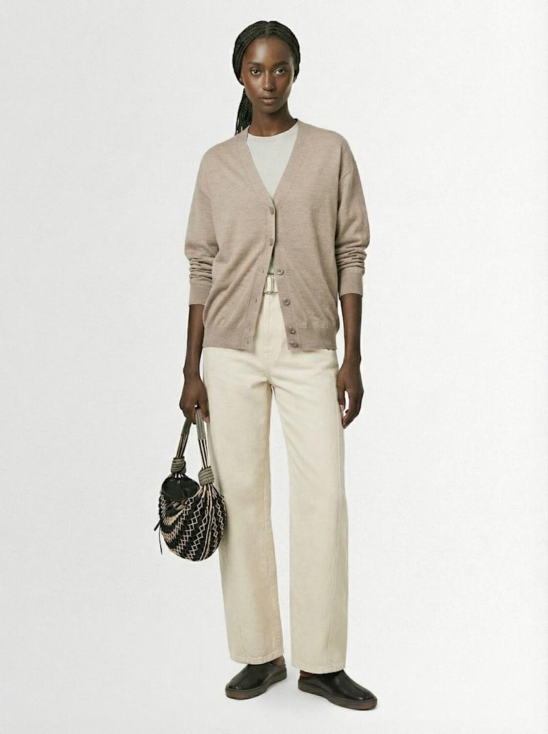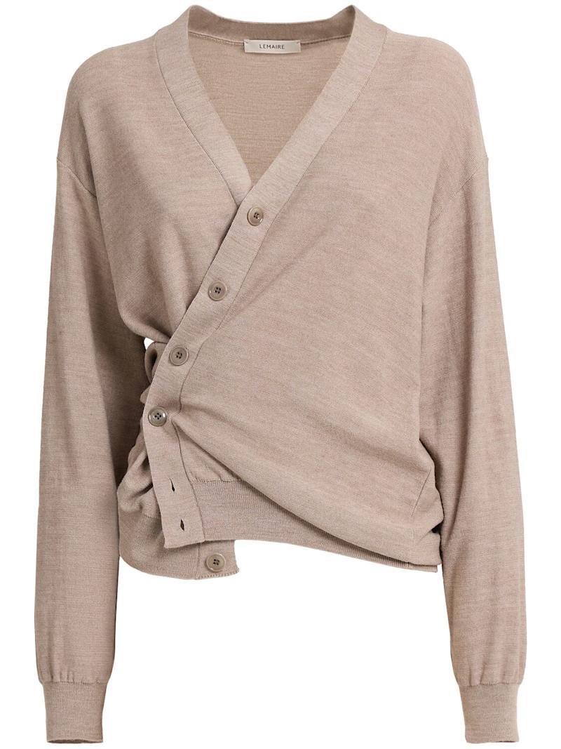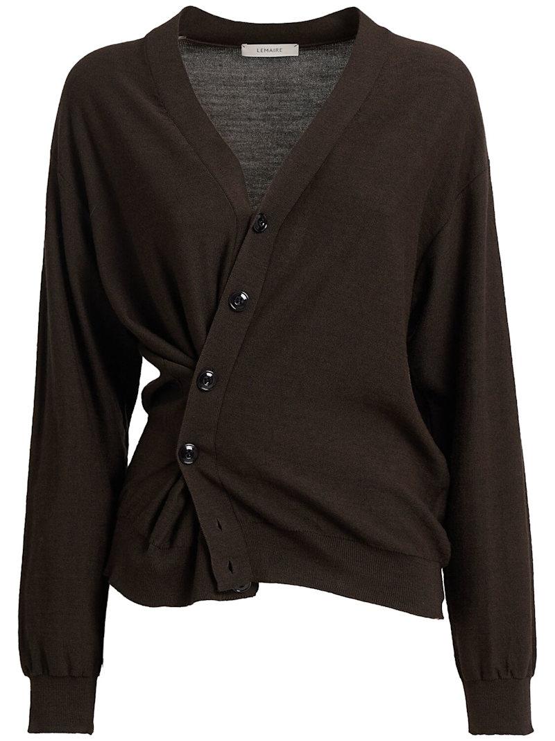 扭曲设计羊毛混纺休闲开衫 - 棕色 - 女士 - Lemaire - 正面纽扣开合.