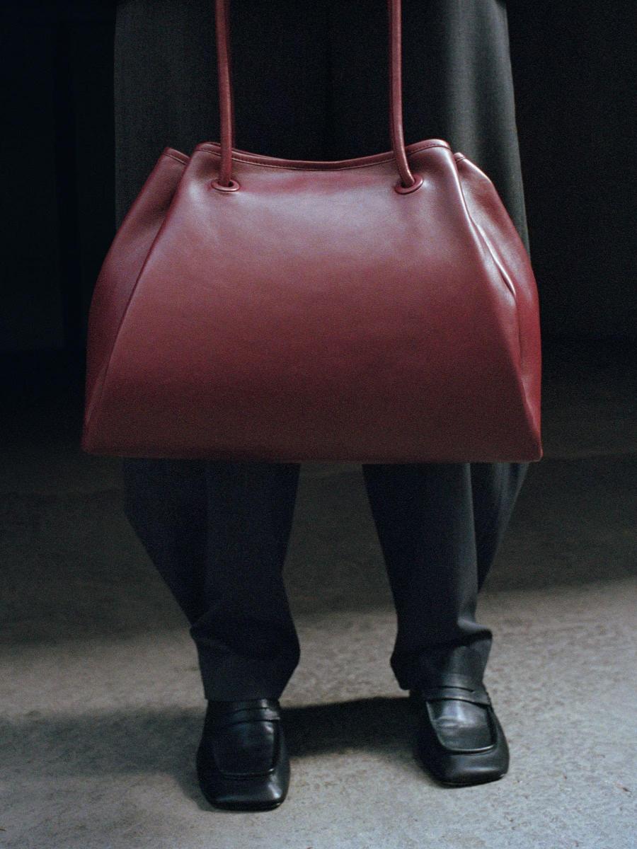 Tote bag with tubular shoulder straps, crafted from leather that has undergone a chrome-free tanning process. The adjustable straps slide through eyelets. Features an internal zip pocket. Width 40 cm, height 29 cm, depth 17 cm. Strap drop 21 cm.ARKET/
