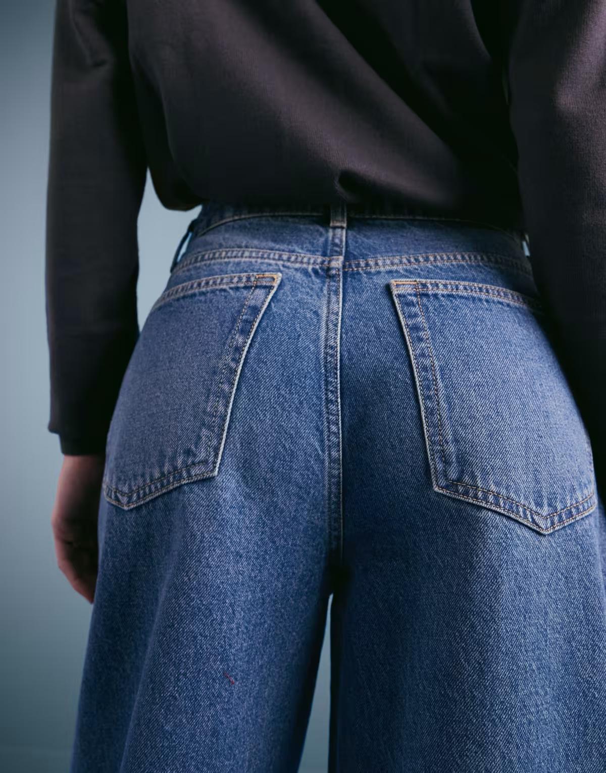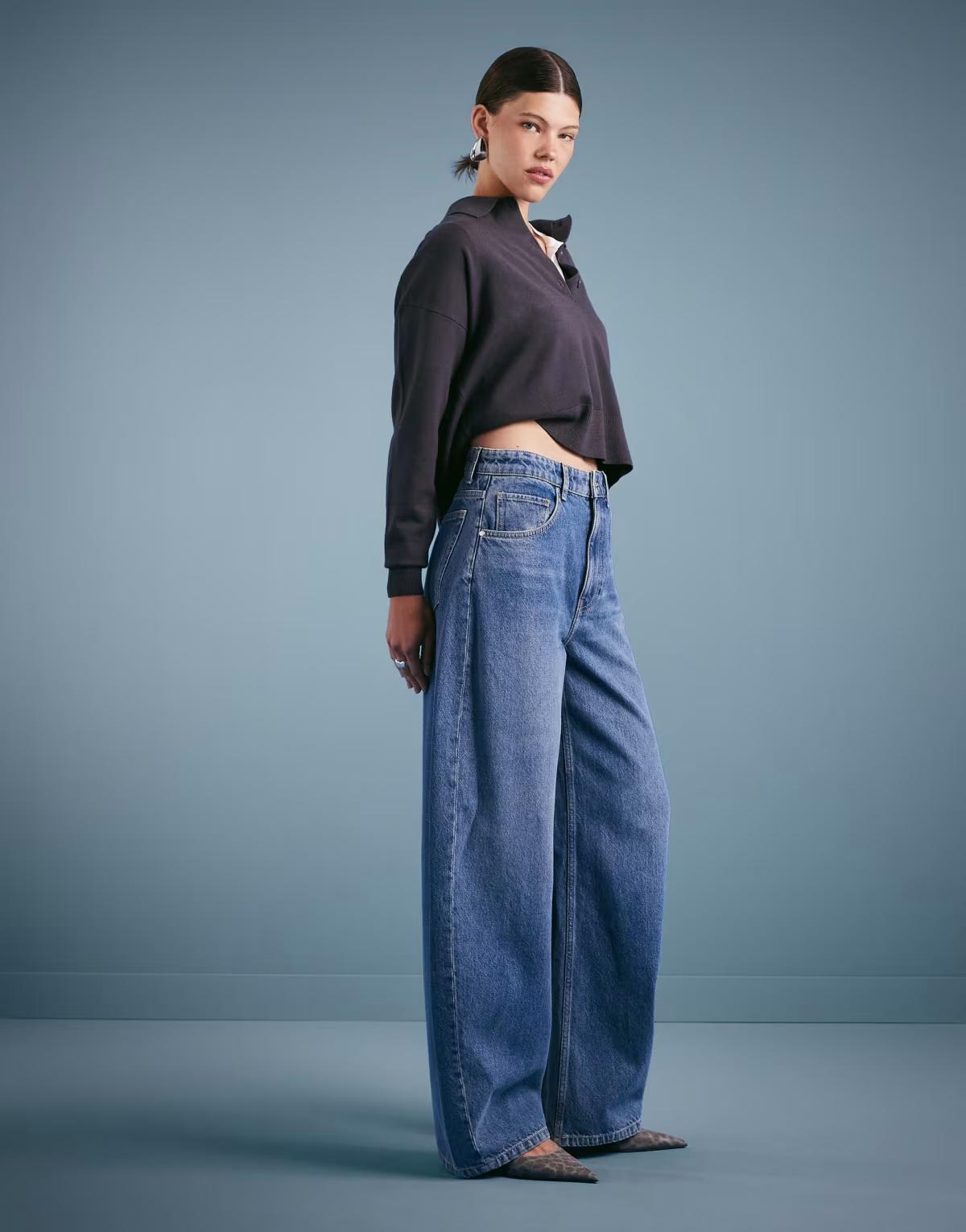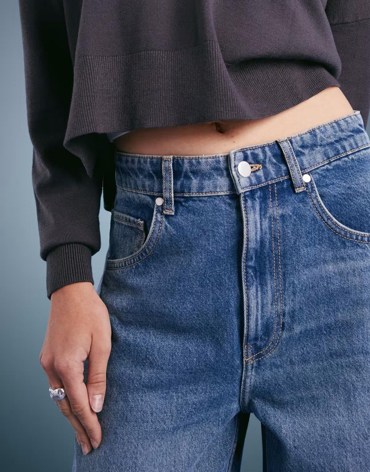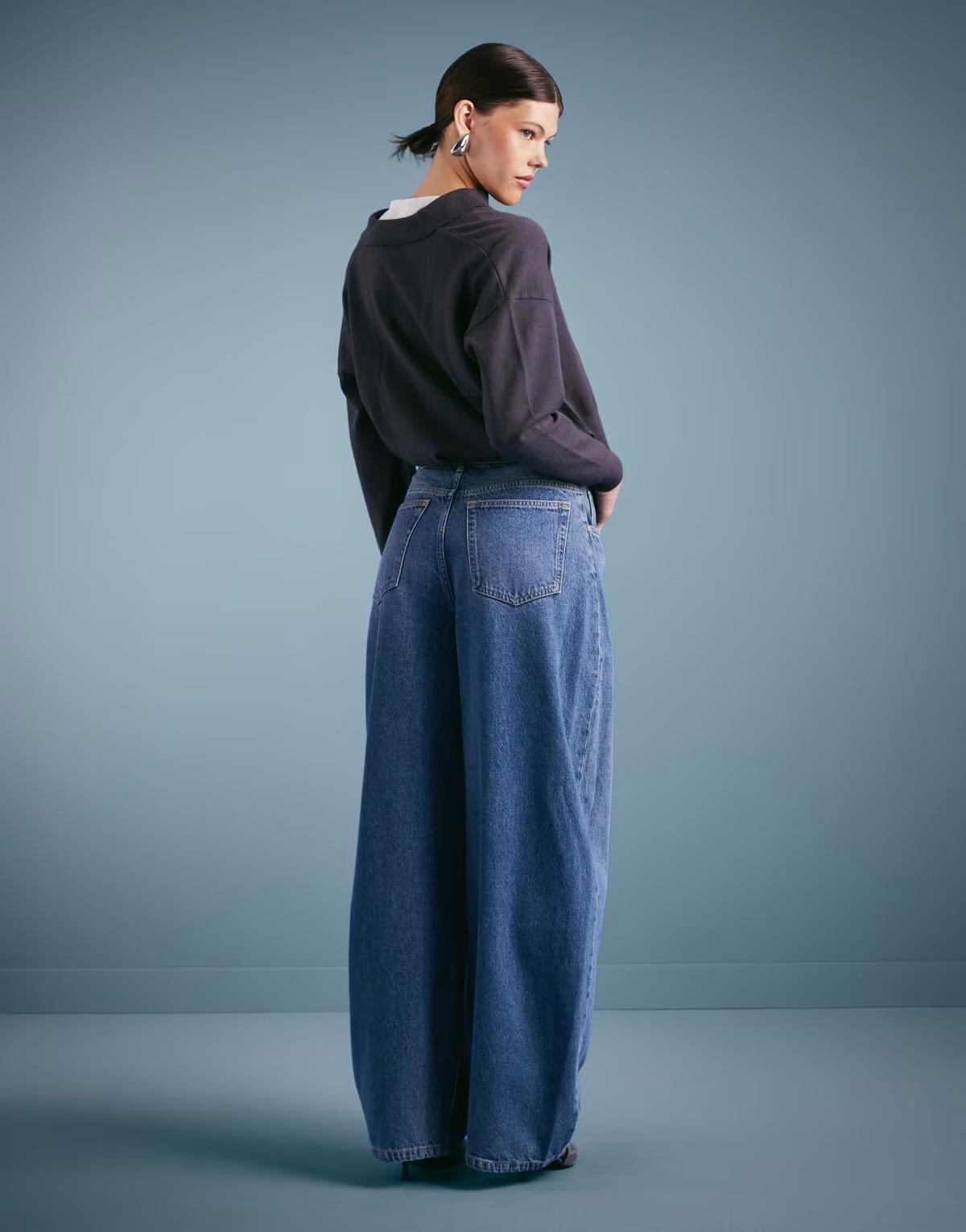 Mango cotton oversized barrel leg jean in medium blue