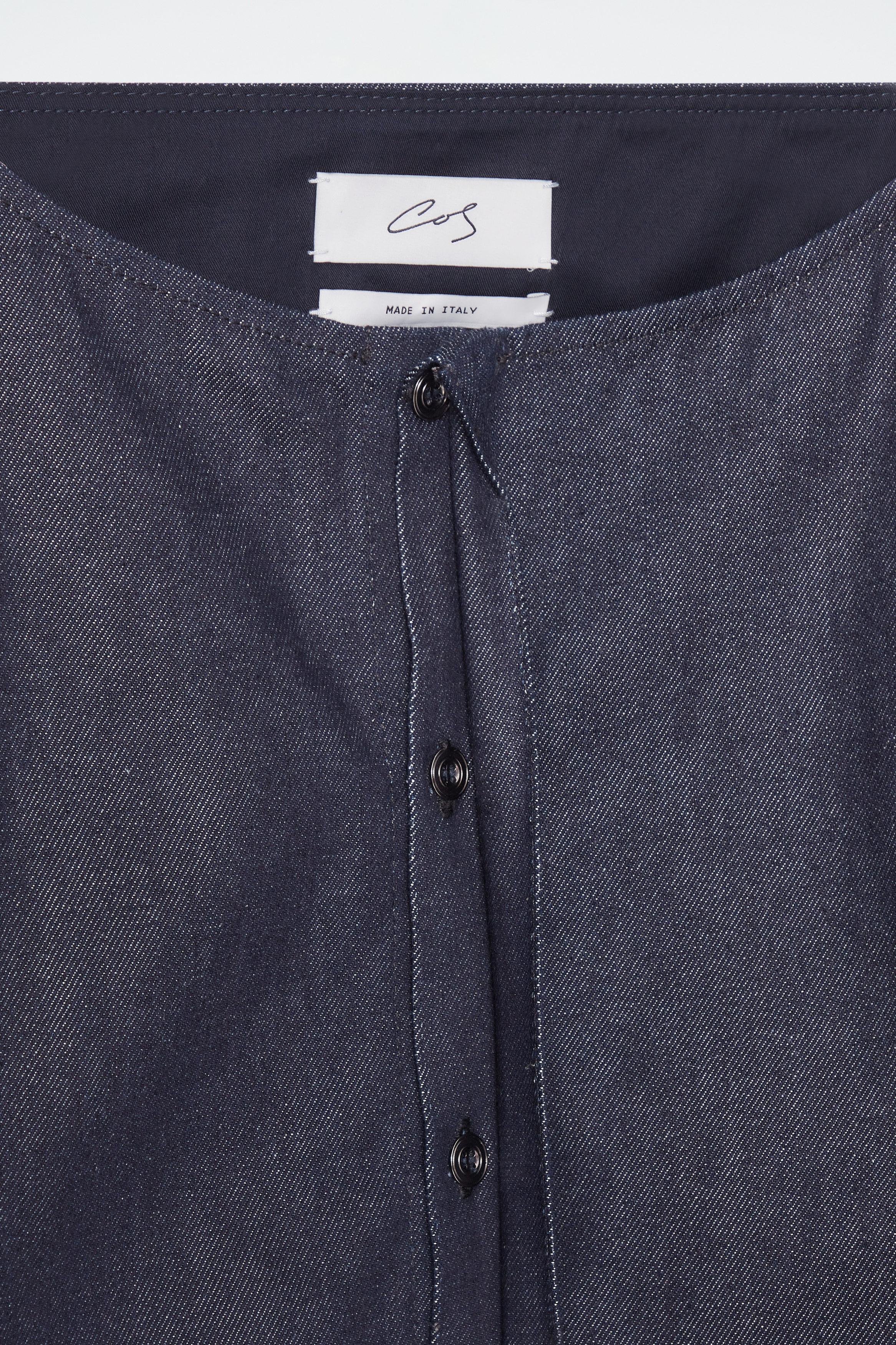 This piece is part of the ATELIER capsule; an exploration of the modern wardrobe, founded on the principles of luxury and exceptional design.\u0026nbsp;CUTFor Autumn Winter 2024, the denim in the capsule borrows elements from tailoring. Relaxed in shape, this modern shirt is cut with a straight neckline, concealed placket and rounded sleeves for subtle volume.\u0026nbsp;CLOTHCrafted at a revered Italian mill, the premium 13oz organic-cotton denim is left raw to retain its structure and natural indigo tone, which is echoed on the\u0026nbsp;matching jeans.\u0026nbsp;CRAFTThis piece is bordered with tonal topstitching for longevity and a clean finish.\u0026nbsp;Shell: 100% Organic cotton. Excluding trims / Machine wash\u0026nbsp;Back length of size EU 36 is 66cm / Model wears a size EU 36. This piece is also available in limited petite sizes.