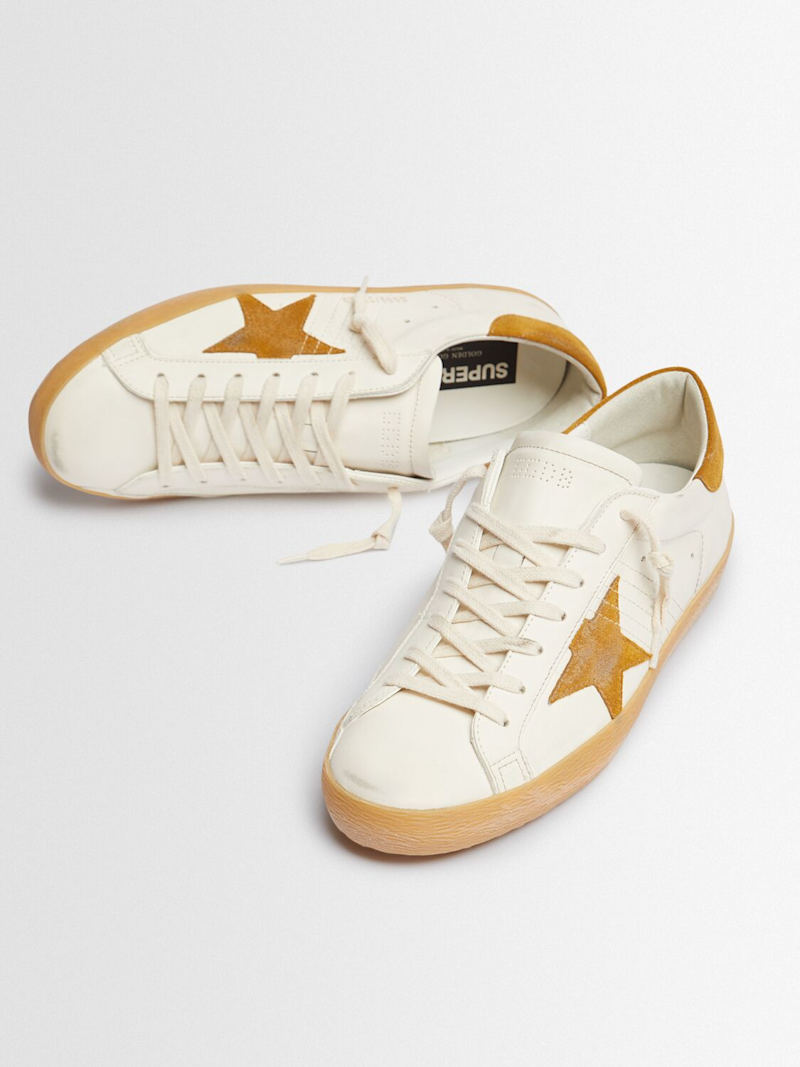 Super Star麂皮&皮革运动鞋 - White/Ocra - 男士 - Golden Goose - 皮革鞋面.