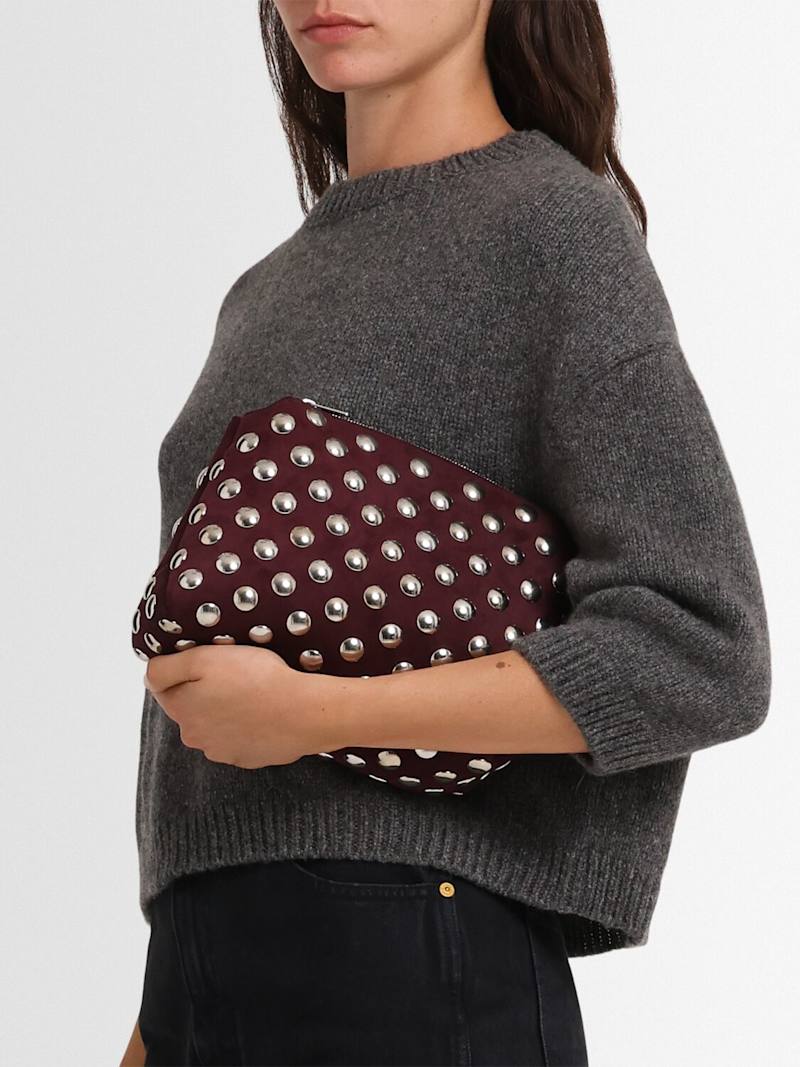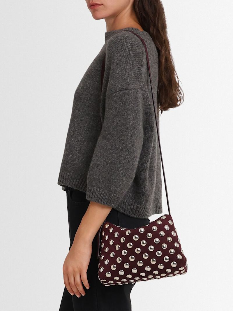 Lina中号铆钉皮革斜挎包 - Rouge Noir - 女士 - Khaite - 可调节束带.