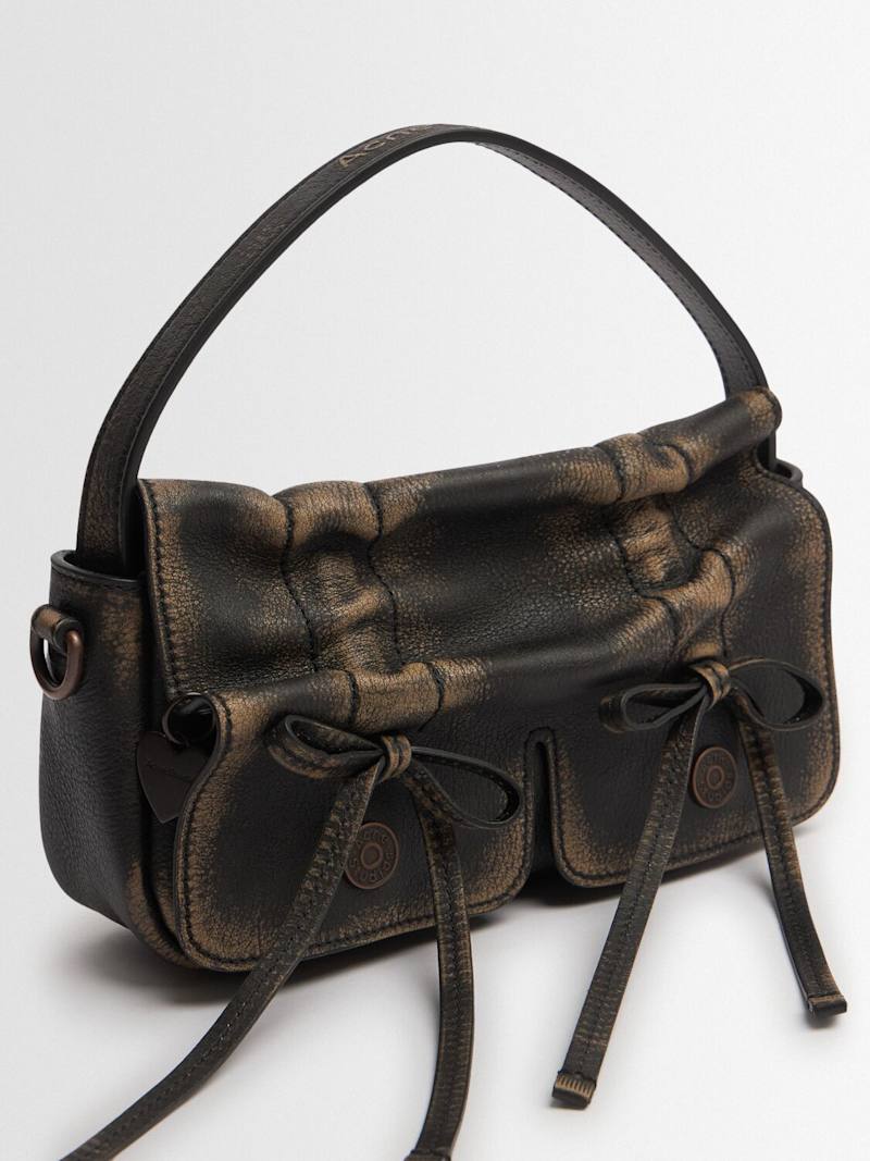 Micro Multipocket复古皮革手提包 - Dark Brown/Beig - 女士 - Acne Studios - 肩带垂直高度:47厘米.